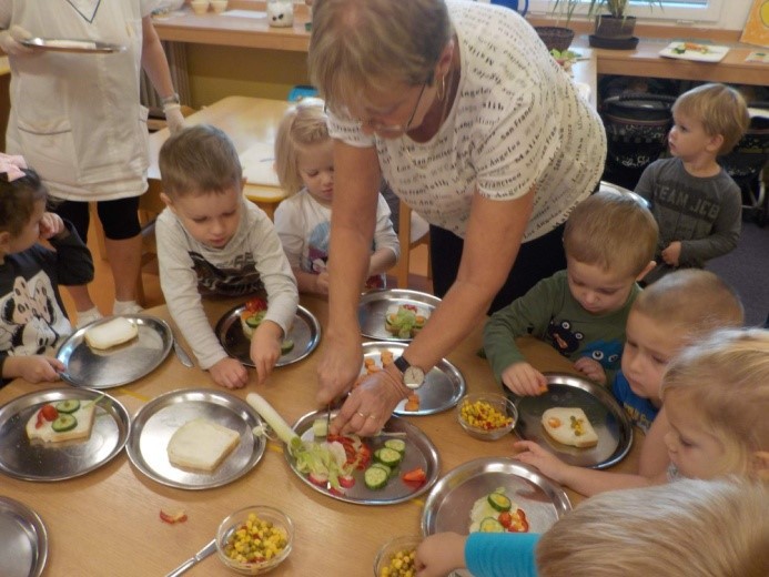 Protože už víme, že je hodně zdravá a plná vitamínů, tak jsme si s dětmi zeleninu nakrájeli a každý si z ní ozdobil svůj chlebík ke svačince. Vznikla nám tak veselá svačinka.