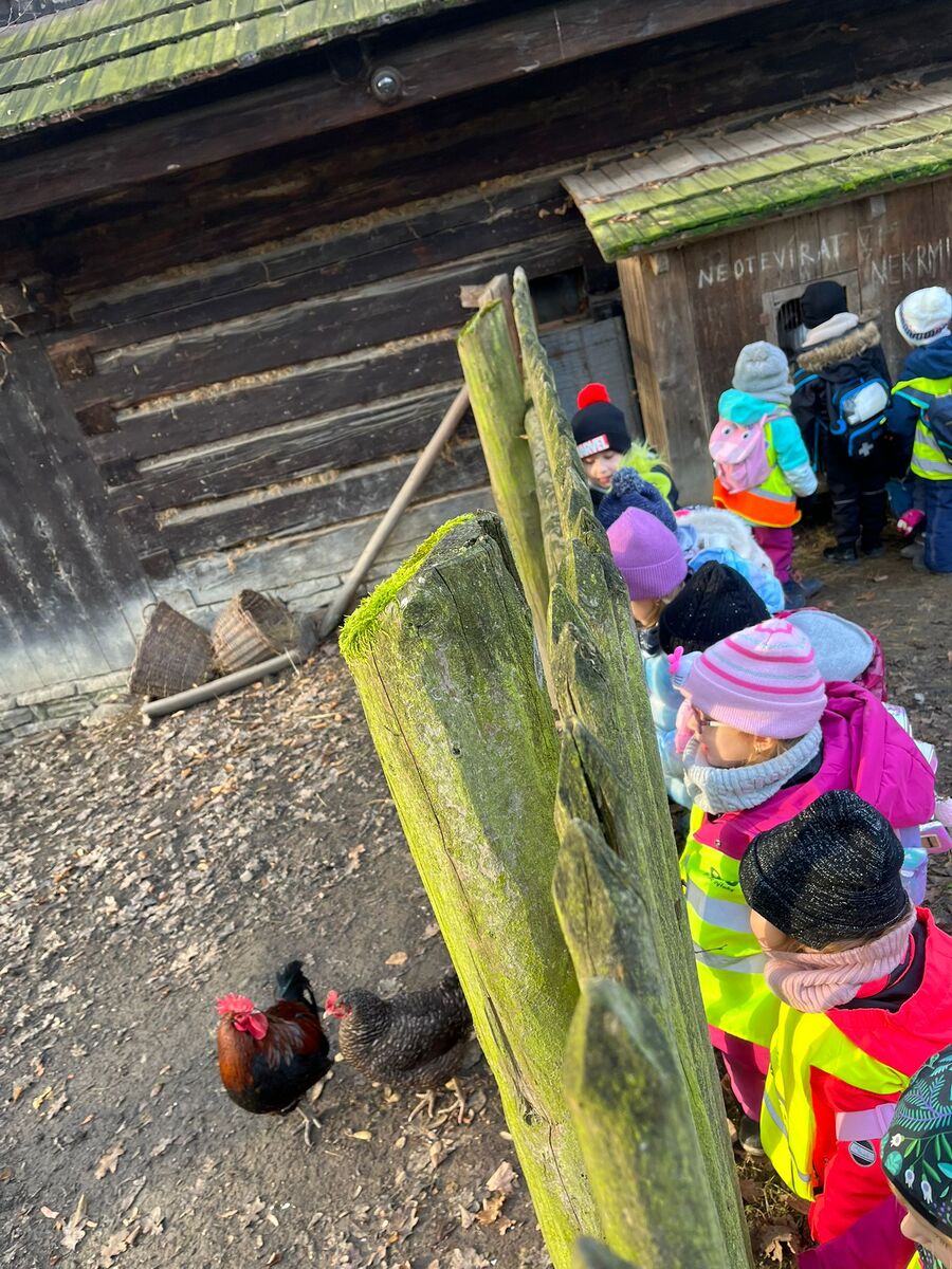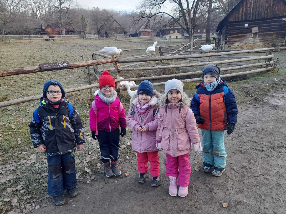 Těsně před Vánoci jsme měli možnost návštívit Valašské muzeum v přírodě a svátečně se naladit v rámci programu Vánoce na dědině. Děti se seznámily s obvyklými zimními pracemi na vesnici a s přípravami v průběhu adventní doby, poznaly zvyky, tradice a především kouzlo Vánoc z dob minulých. V průběhu našeho "putování" po Valašské dědině jsme také měli možnost pozorovat řadu hospodářských a domácích zvířat a také ochutnat např. čaj z devíti druhů bylin či vánočku ochucenou kořením dle starých receptů. Děti se vracely spokojené a obohacené o nové zážitky.