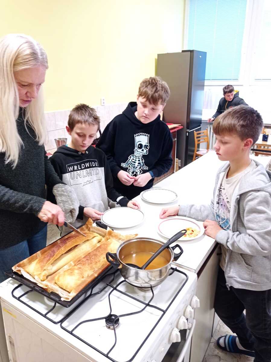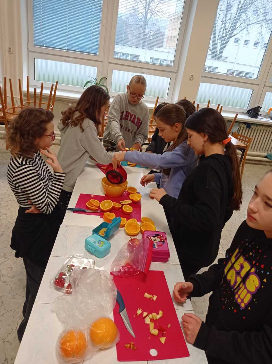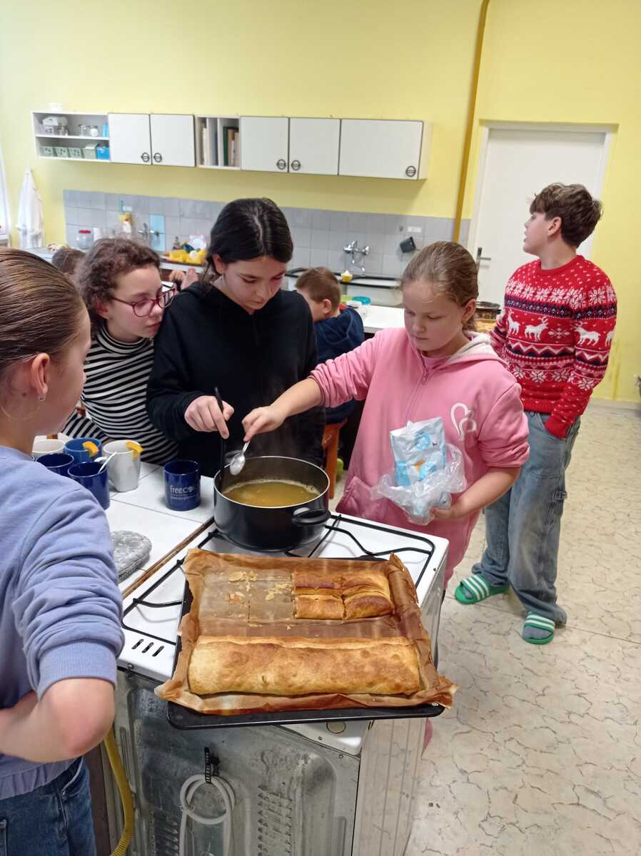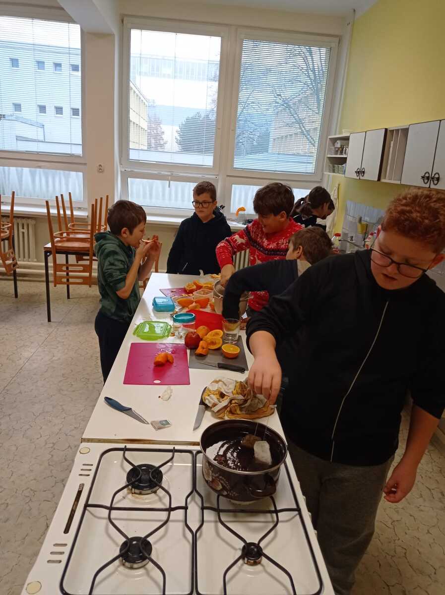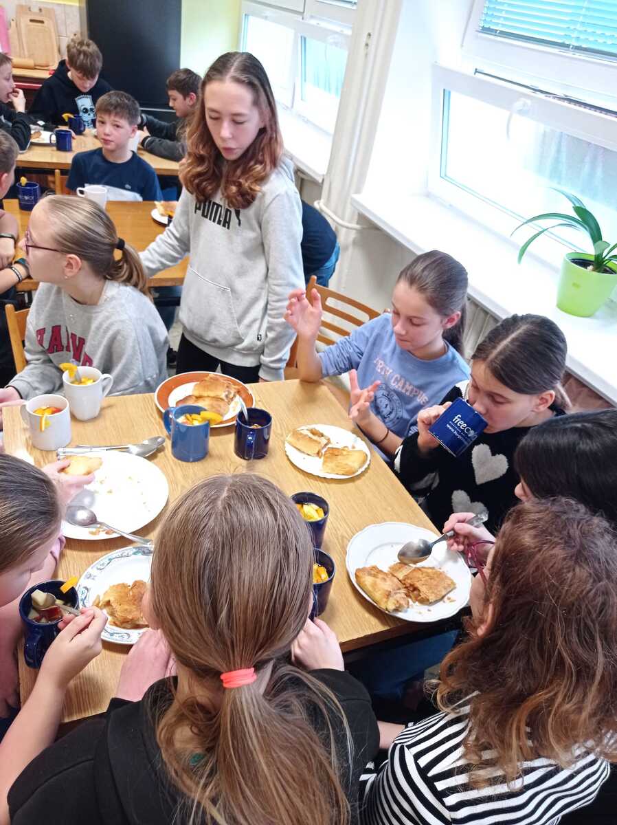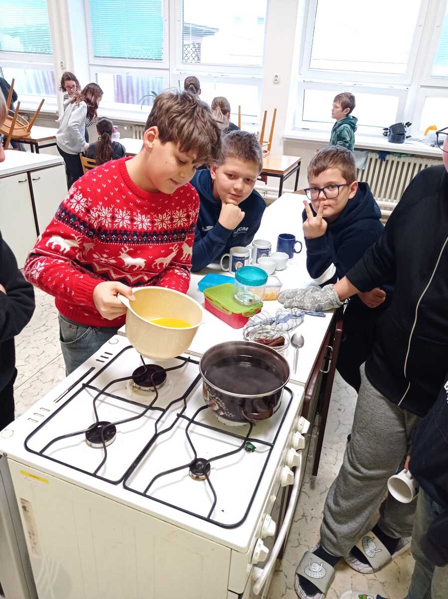 Rádi bychom se s vámi podělili o krásný zážitek z naší školní kuchyňky. Žáci páté třídy si vyzkoušeli, jaké to je stát se na chvíli malými kuchaři, a s velkým nadšením se pustili do vaření.Výsledkem byly nejen chutné pokrmy, ale také spousta úsměvů a dobrá nálada.