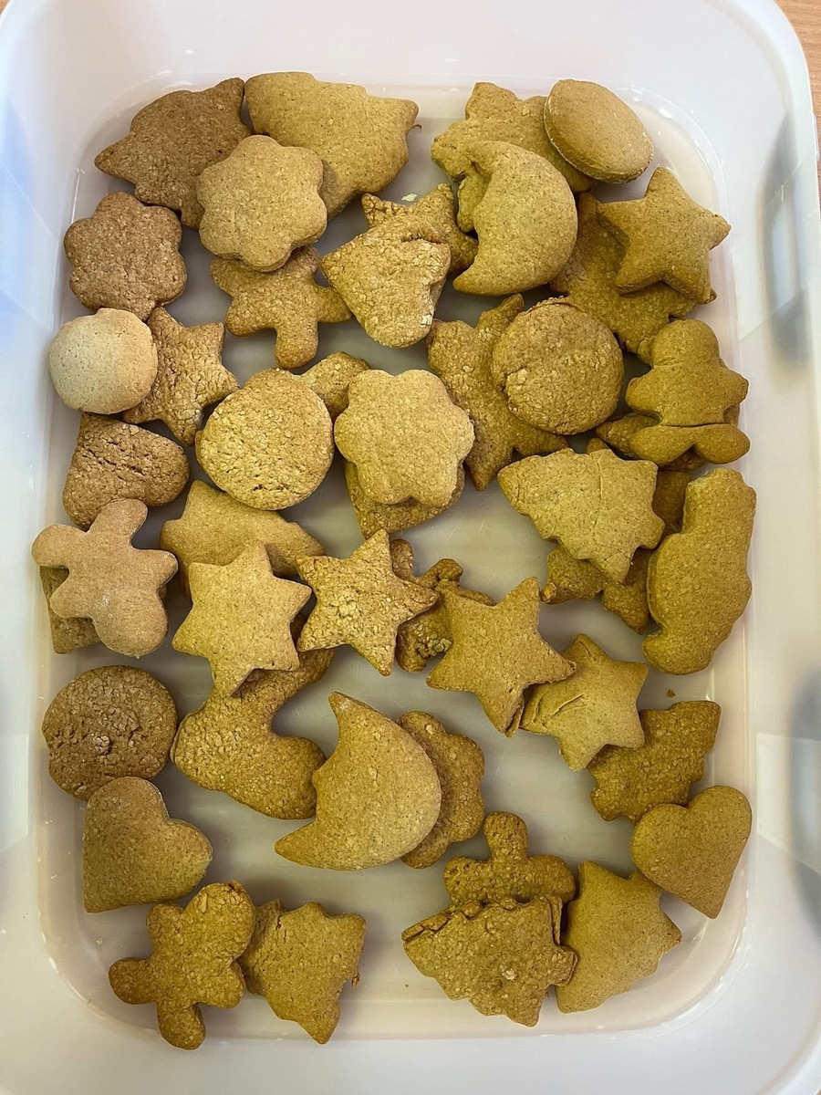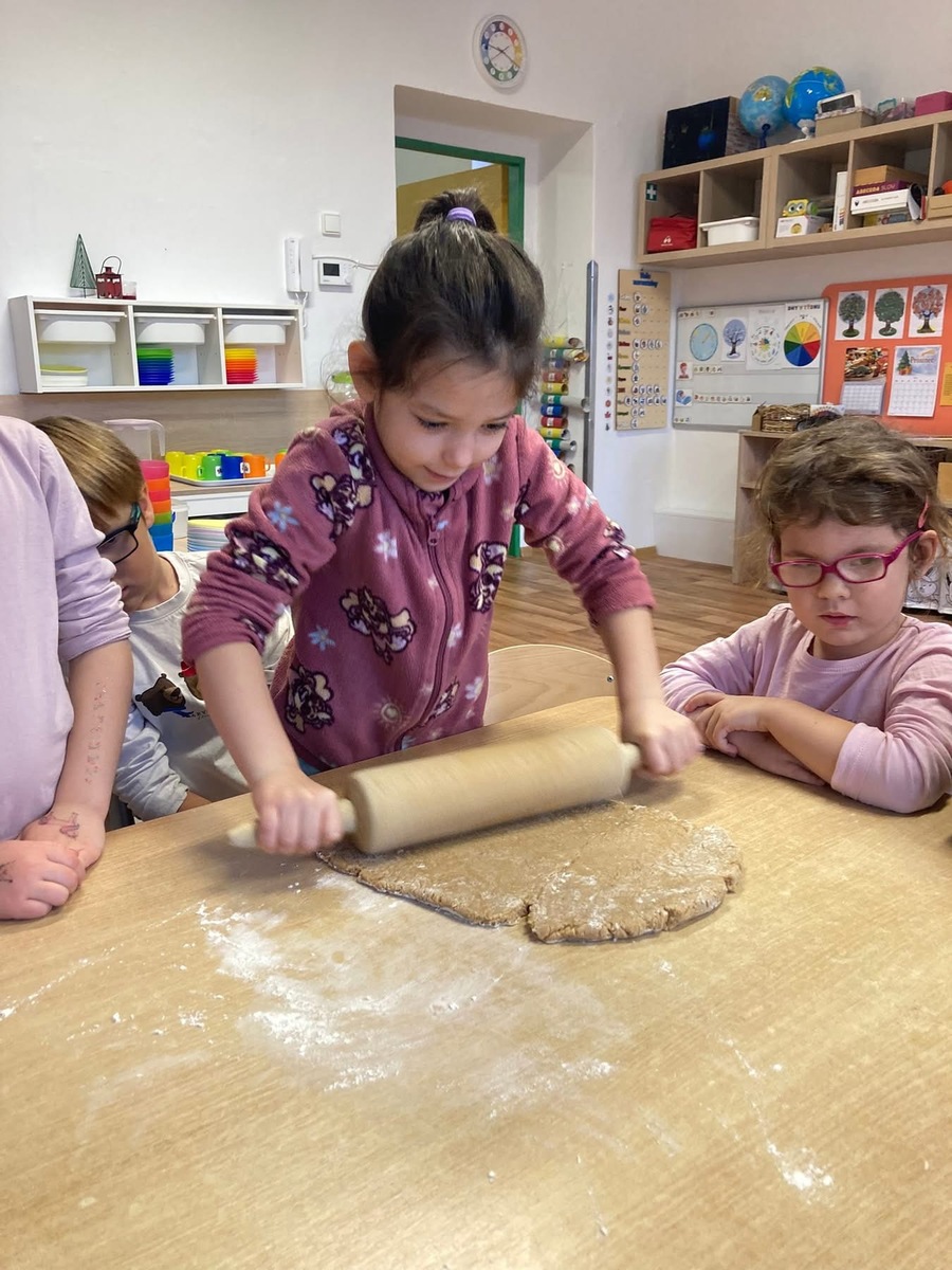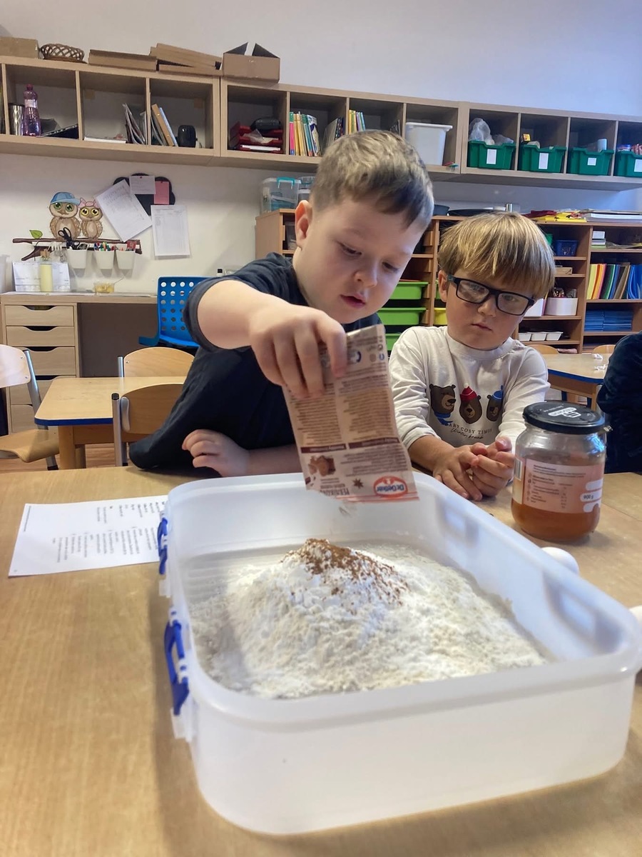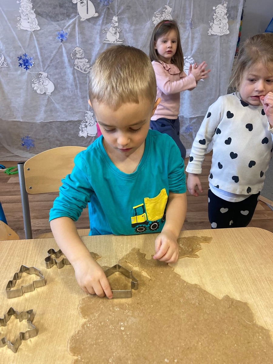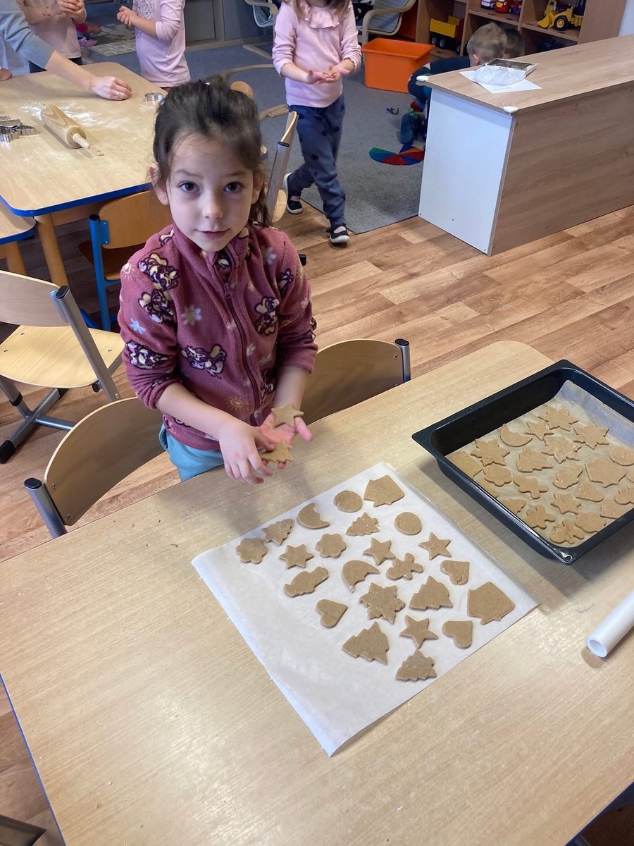 Pomalu se blíží Vánoce a děti se daly do pečení zdravých vánočních perníčků. Nejprve jsme společně udělali těsto, poté si ho děti vyválely a vykrájely do něho vánoční tvary. Zanesly paní kuchařce do kuchyně a po obědě si perníčky snědly.