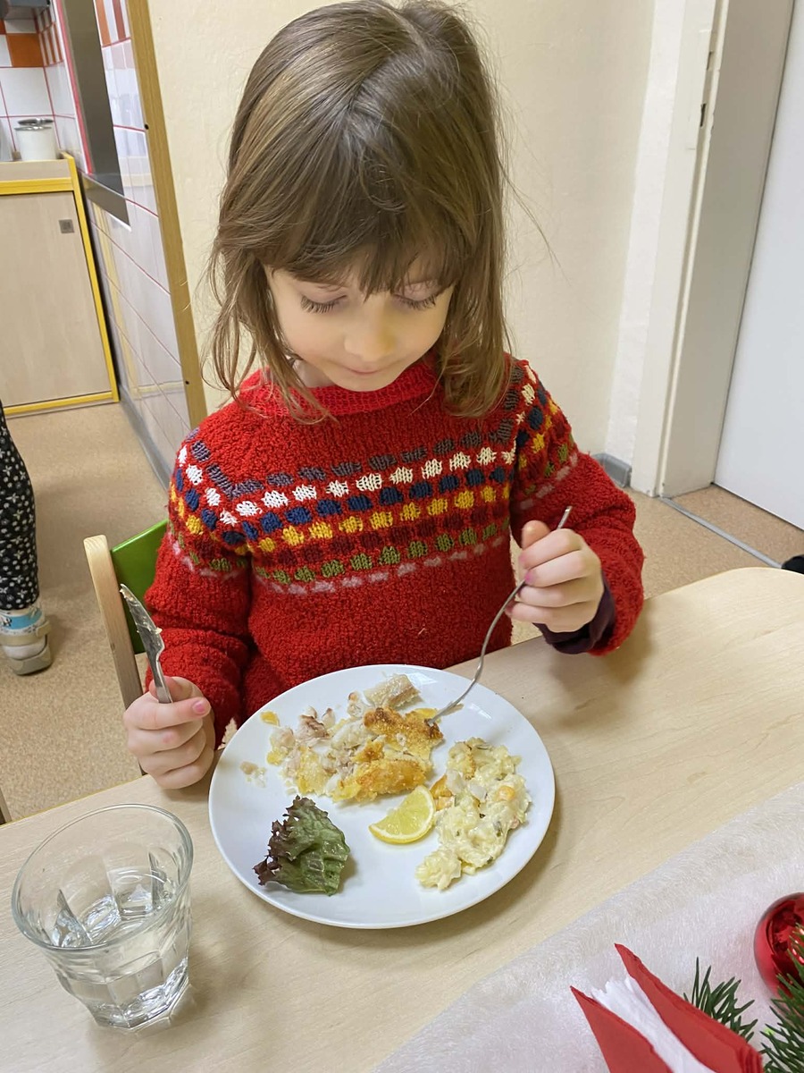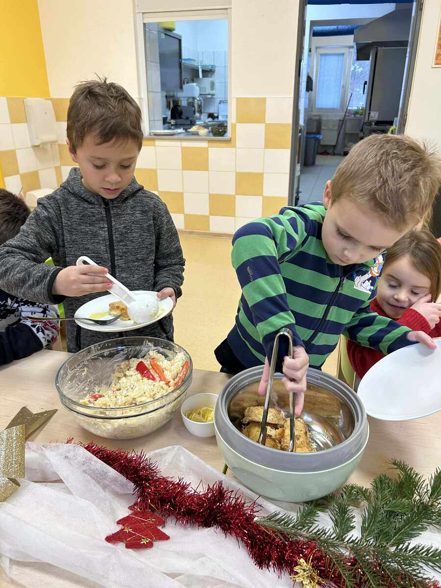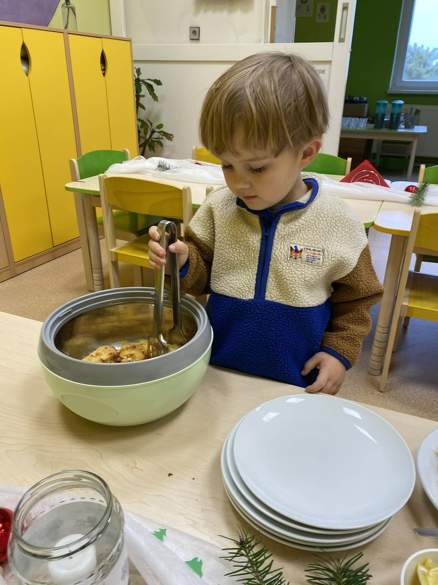 Zatímco venku se prosincové dopoledne halilo do šedivé mlhy, uvnitř naší školky se zastavil čas. Vzduchem vonělo jehličí, skořice a dětské očekávání, které by se dalo krájet. Všichni se těšili, až spolu usednou ke slavnostnímu štědrovečernímu obědu, při kterém si společně vychutnají sváteční obalovanou rybku i bramborový salát a připomenou si vánoční tradice. U stolu plného úsměvů a za poslechu koled jsme si uvědomili, že to nejvzácnější na Vánocích není schované v krabicích pod stromkem, ale v tom, že tuhle sváteční chvíli sdílíme jeden s druhým.