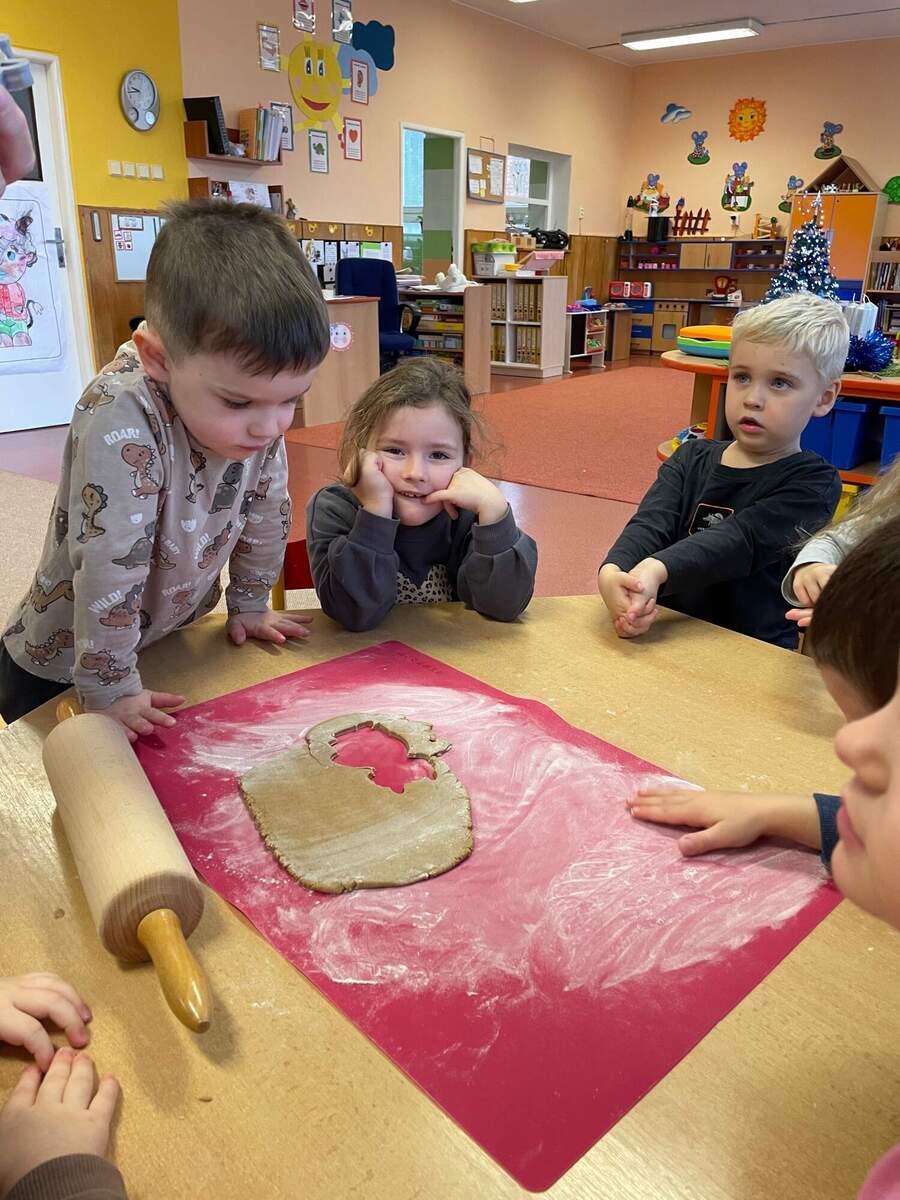 V naší školce zavládla vánoční atmosféra a všude se linula vůně cukroví. Společně s dětmi jsme připravovali vánoční cukroví. Děti za pomocí paní učtielky rozválaly těsto, do kterého pak vykrajovaly různé tvary. Nakonec vložily cukroví na plech, odnesly paní kuchařkám do kuchyně a čekaly na výsledek. Po upečení si všichni si na jejich sladké a voňavé chuti s radostí pochutnali.