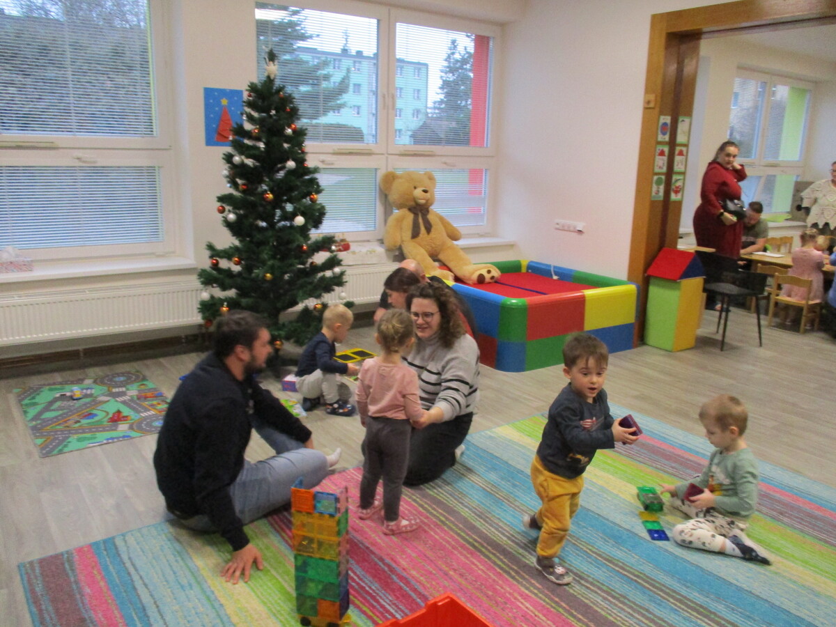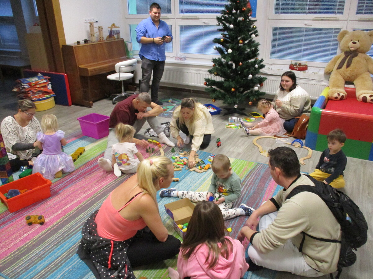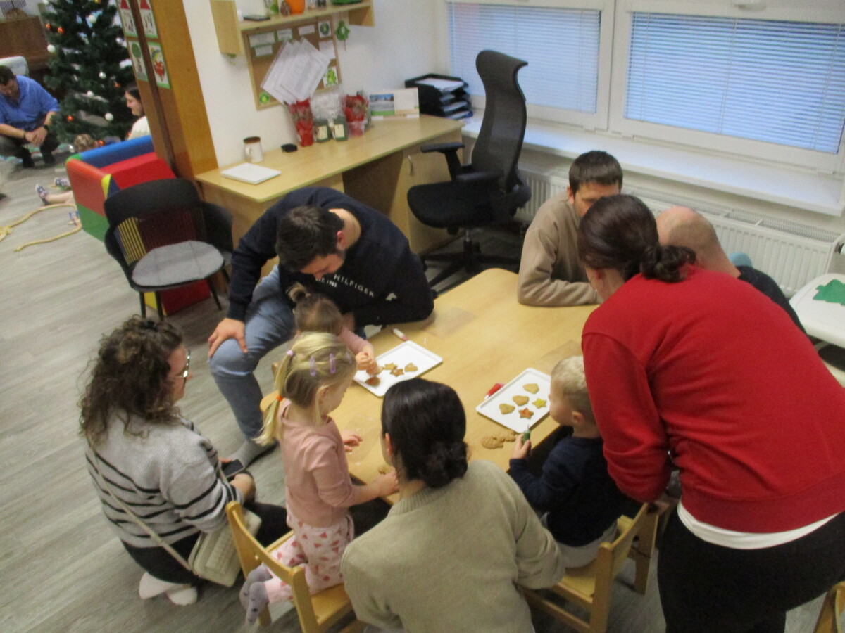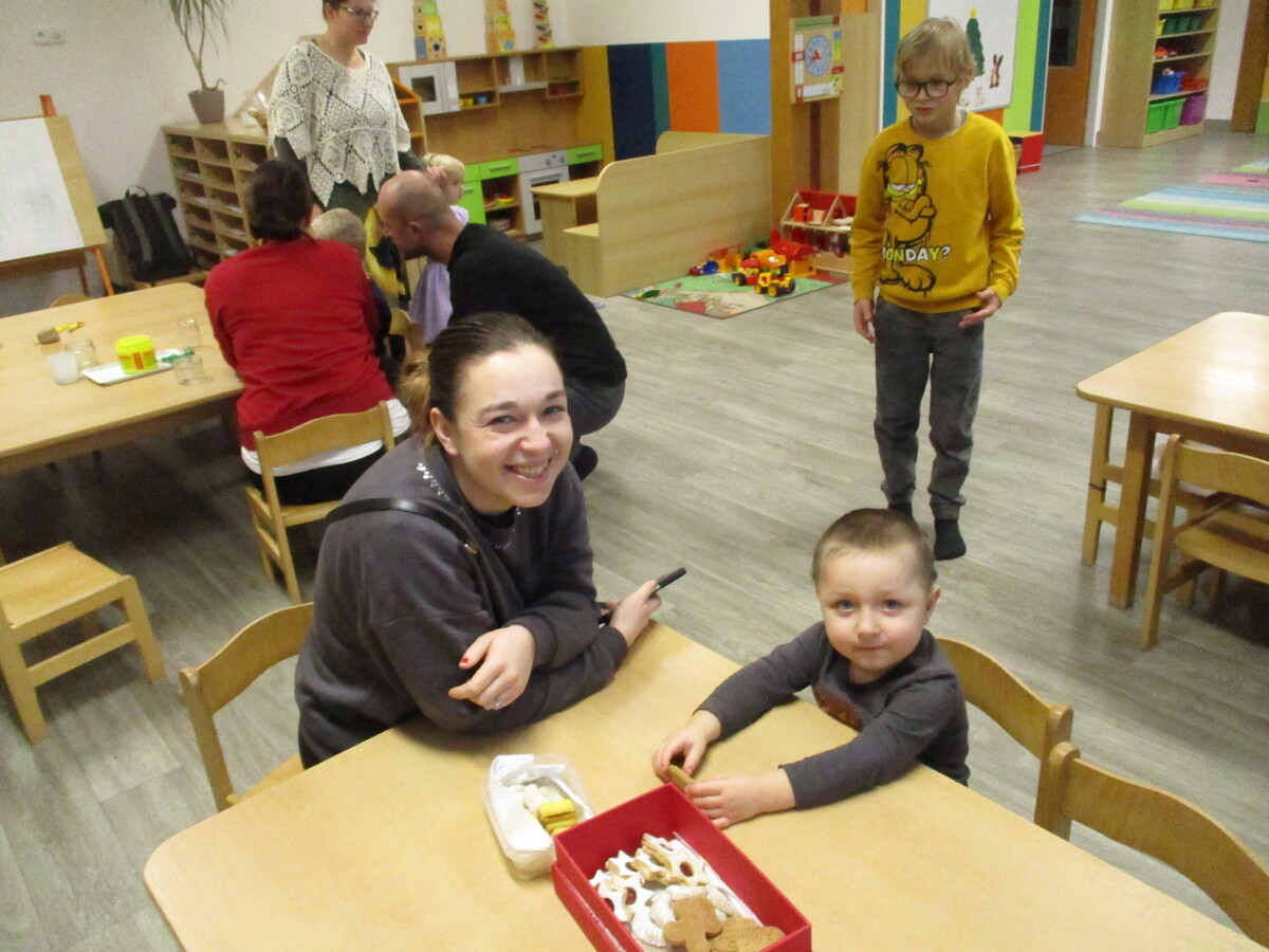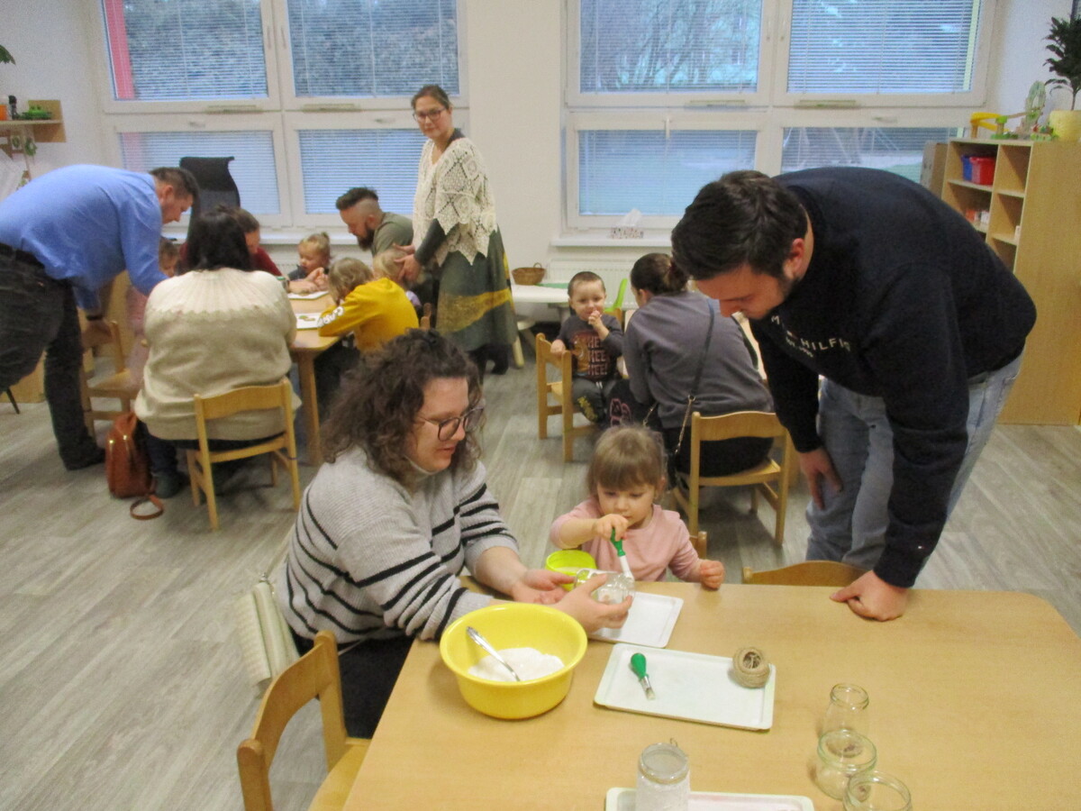 Odpolední předvánoční setkání dětí a rodičů v naší mateřské škole. Společné tvoření drobných dárečků, zdobení perníčků a užívání si kouzelné atmosféry při zpěvu koled.