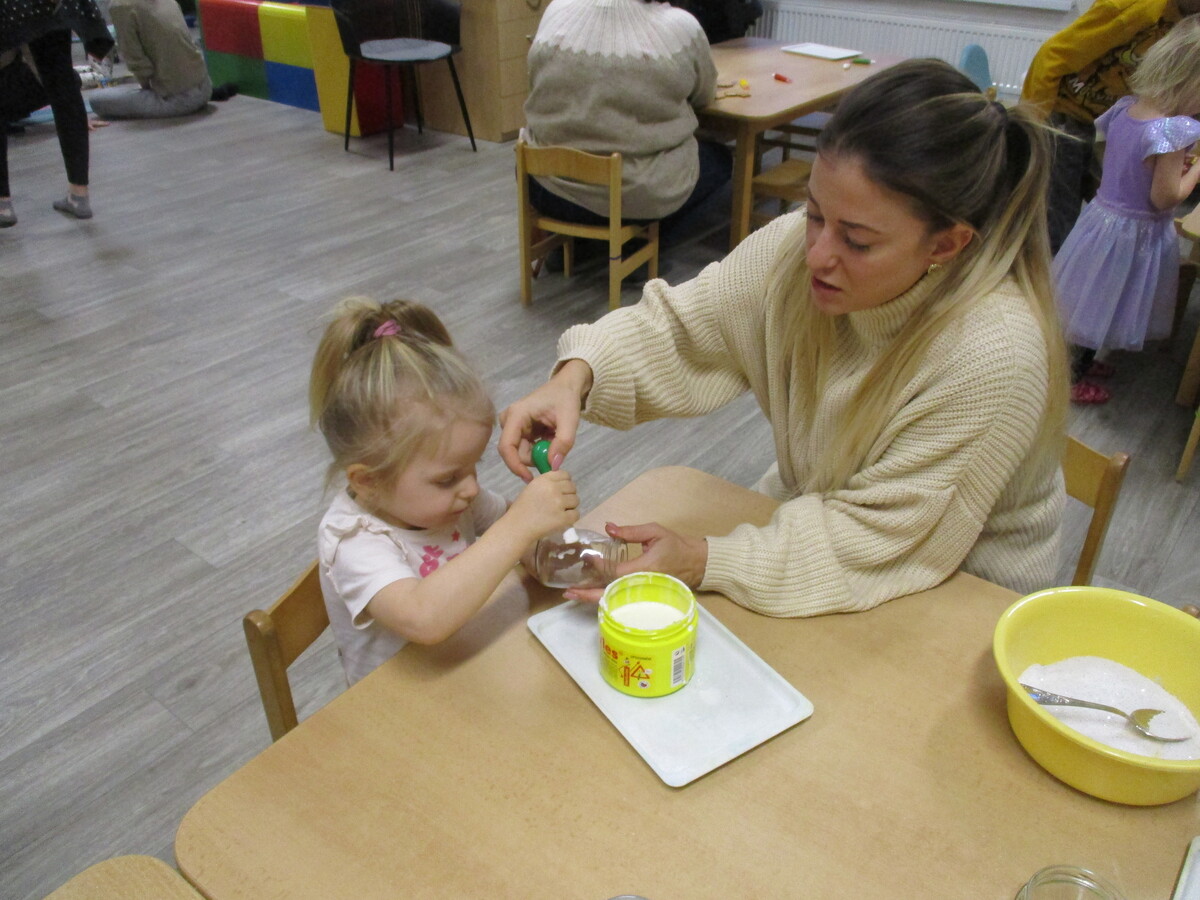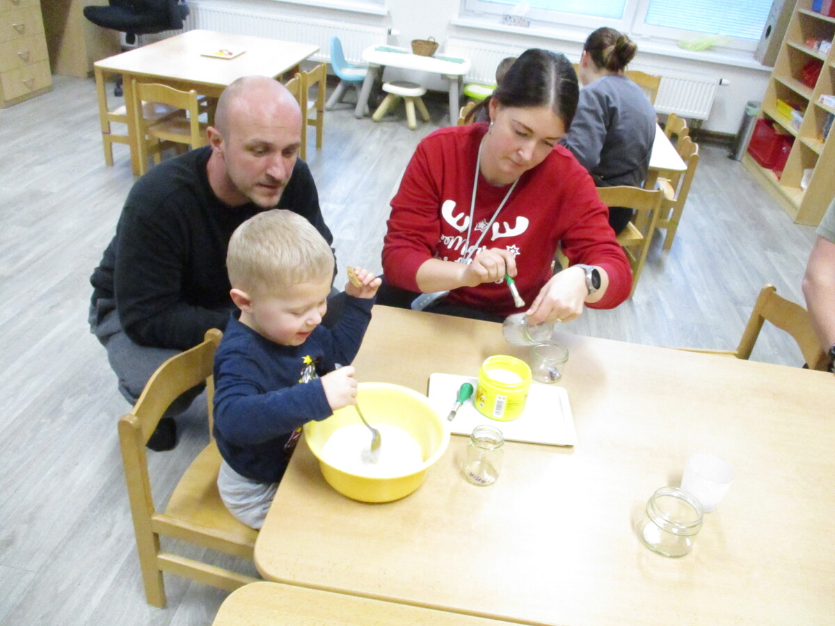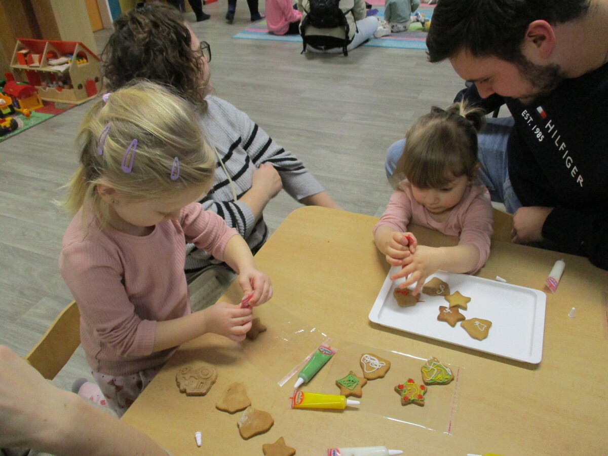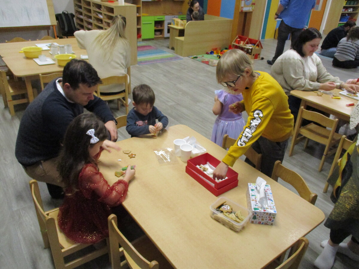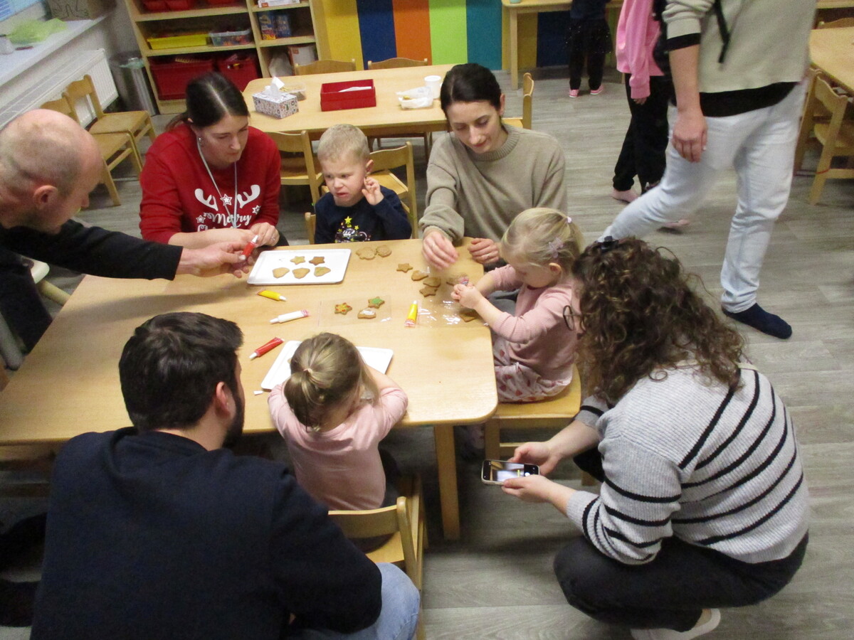 Odpolední předvánoční setkání dětí a rodičů v naší mateřské škole. Společné tvoření drobných dárečků, zdobení perníčků a užívání si kouzelné atmosféry při zpěvu koled.