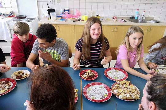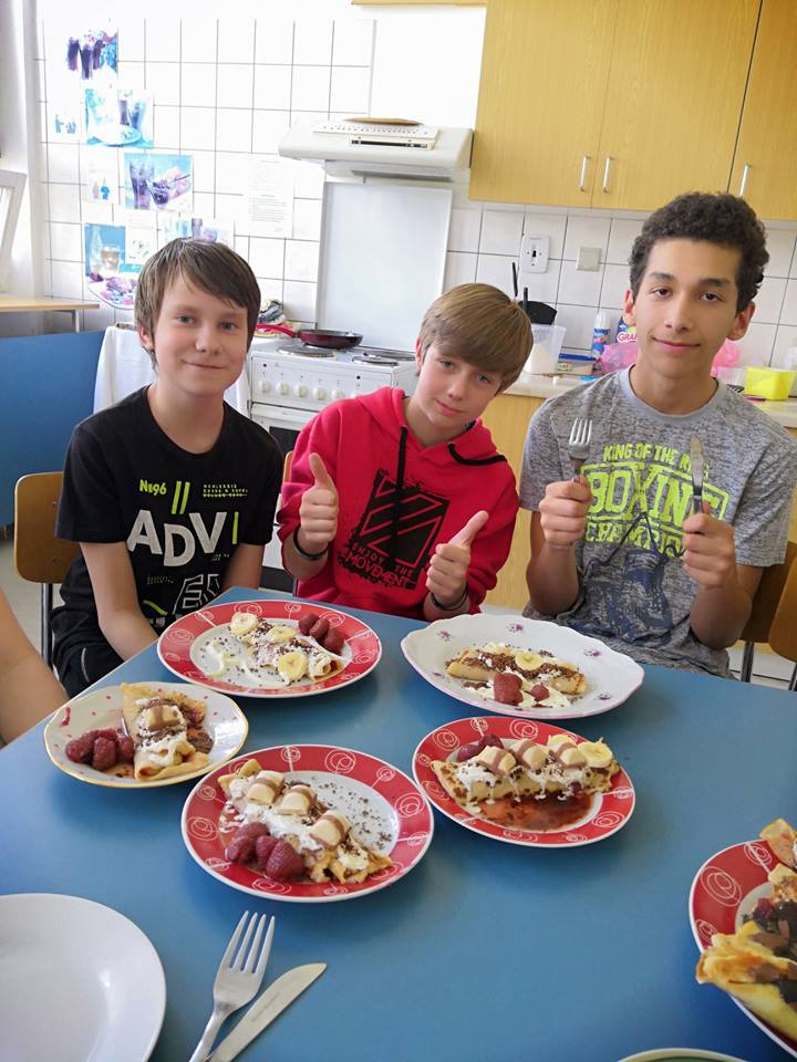 Součástí výuky pracovních činností v 6. ročníku je vaření – příprava pro život. Žáci měli největší zájem o palačinky. Zjistili si postup přípravy pokrmu, nakoupili potřebné suroviny a s radostí se pustili do práce. Během chviličky provoněli celou kuchyňku a naplnili talíře sladkou dobrotou.