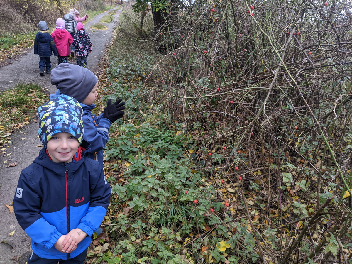 Ve středu jsme se s dětmi vydali na procházku do Kostelce u Křížku a po cestě jsme natrhali šípky, o kterých jsme si povídali, že mají spoustu vitamínu C a že nás v tom nevlídném počasí určitě dodají potřebné vitamíny pro naše tělíčka. Děti na zahrádce šípky nakrájeli na polovinu nožem za přísných bezpečnostních pravidel a dali do hrnce. Zalili jsme je vodou a vařili jsme je na plotýnce 20 minut, pak jsme nechali louhovat půl hodinky a přes plátýnko jsme čaj slili. Poté jsme si čaj přisladili medem, kdo chtěl, tak si dal do čaje citrón a pochutnali jsme si na něm při chladném počasí.