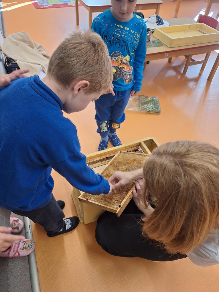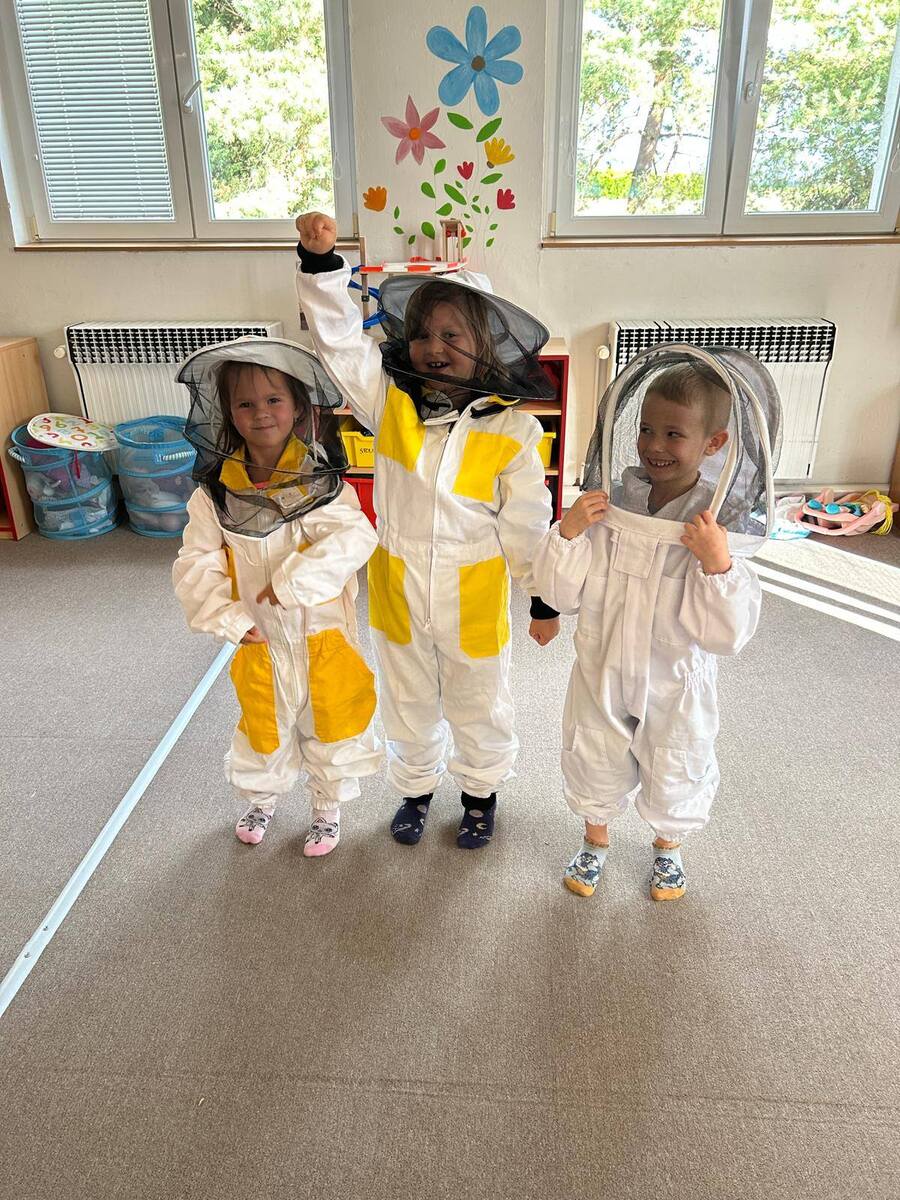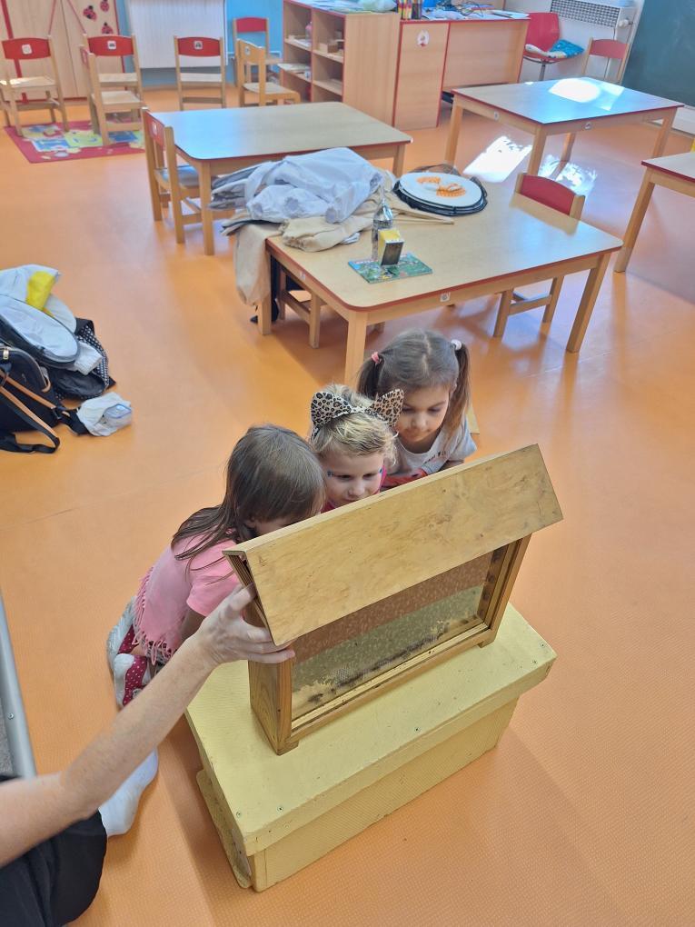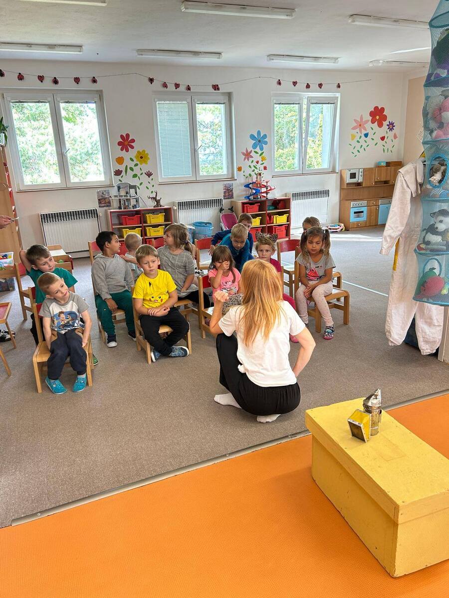V naší mateřské škole proběhla zajímavá beseda na téma „Včely“, která děti opravdu zaujala. Dozvěděly se zajímavé informace o životě včel, jak včelky žijí, jak se starají o úl, jak vzniká med a proč jsou včely pro přírodu i lidi tak důležité. Děti si mohly prohlédnout také pomůcky včelaře, například rámky z úlu, ochranný klobouk a dýmák, na vlastní oči viděly, jak vypadá plástev a mohly ochutnat med. Děkujeme lektorovi za krásné a poučné dopoledne a těšíme se na další podobné setkání.