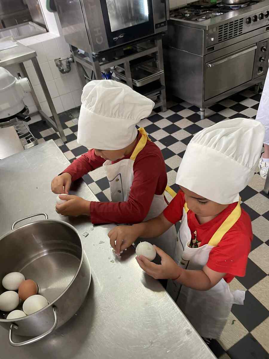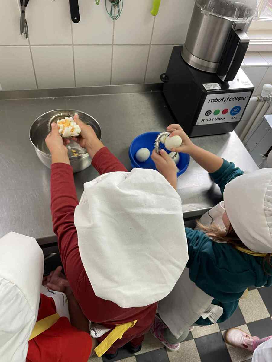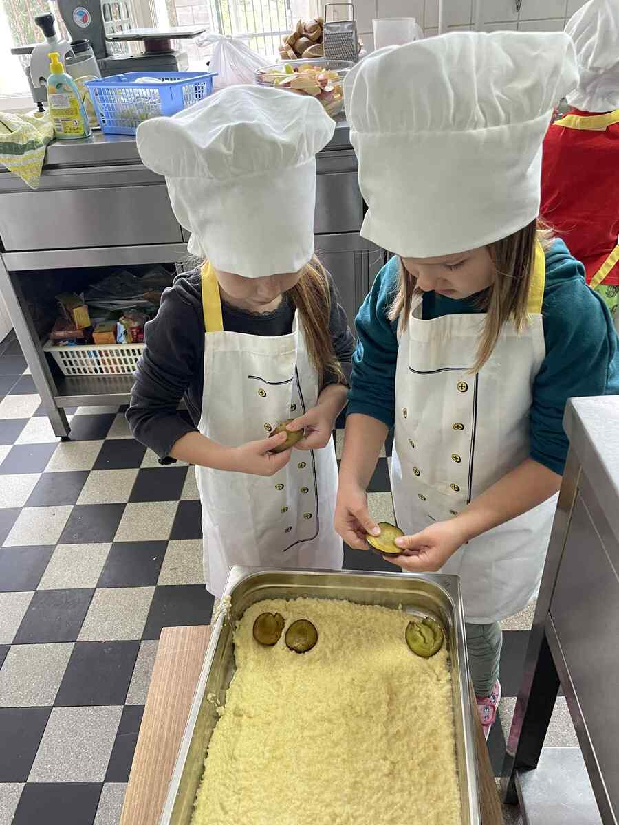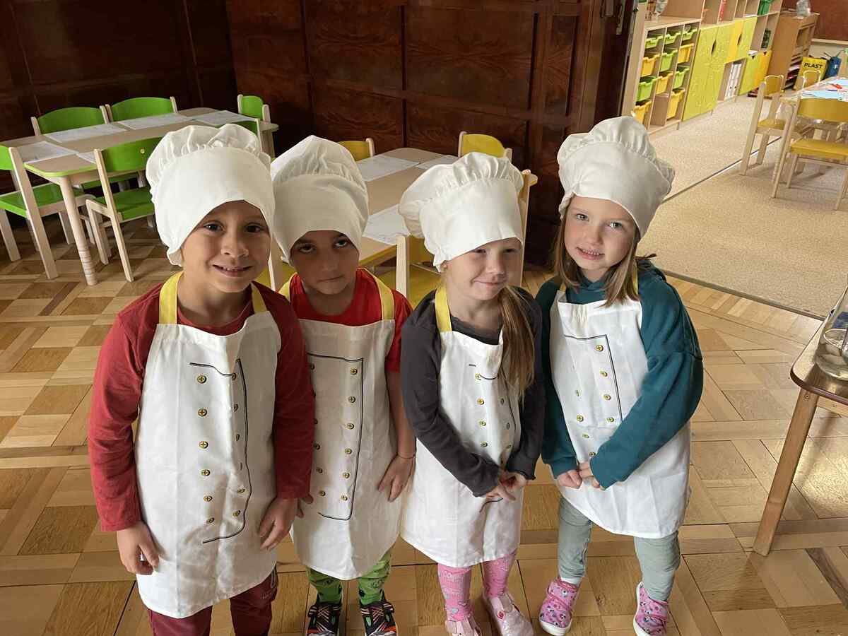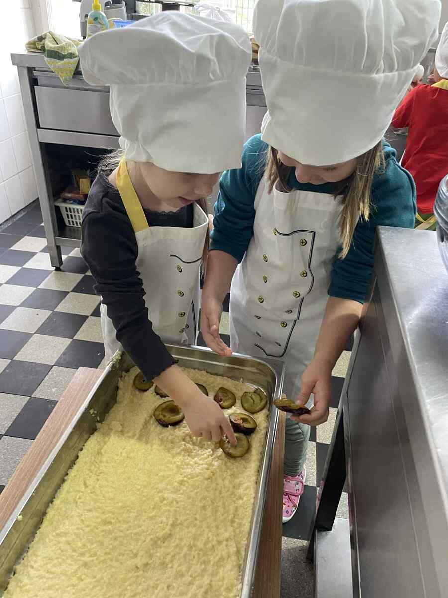 Dnes se naše šikovné Včeličky proměnily v malé kuchaře. S úsměvem na tváři a s velikou chutí se vydaly do školní kuchyně, aby pomohly paní kuchařce připravit oběd. Nejdříve se pustily do vajíček – loupaly, loupaly, až byla krásně bílá a připravená do voňavé kulajdy. Potom přišla na řadu sladká práce: švestky. Děti je půlily, opatrně vybíraly pecky a hezky je skládaly do jáhelníku, který voněl už při přípravě