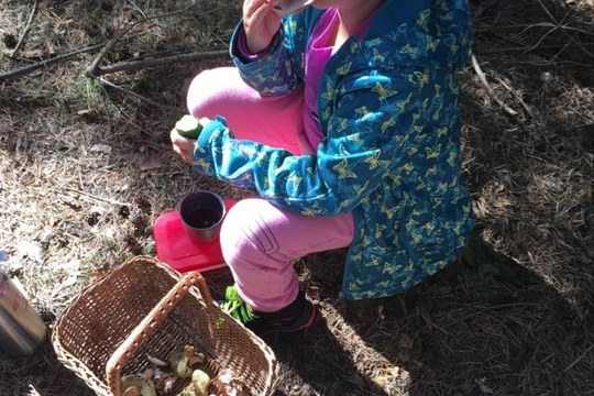 Příběh druhý - Majda byla v neděli na houbách. Sváča v lese je to nejlepší na světě. Doma jsme pak sušili houby a vařili bramboračku. No prostě jeden super den.
