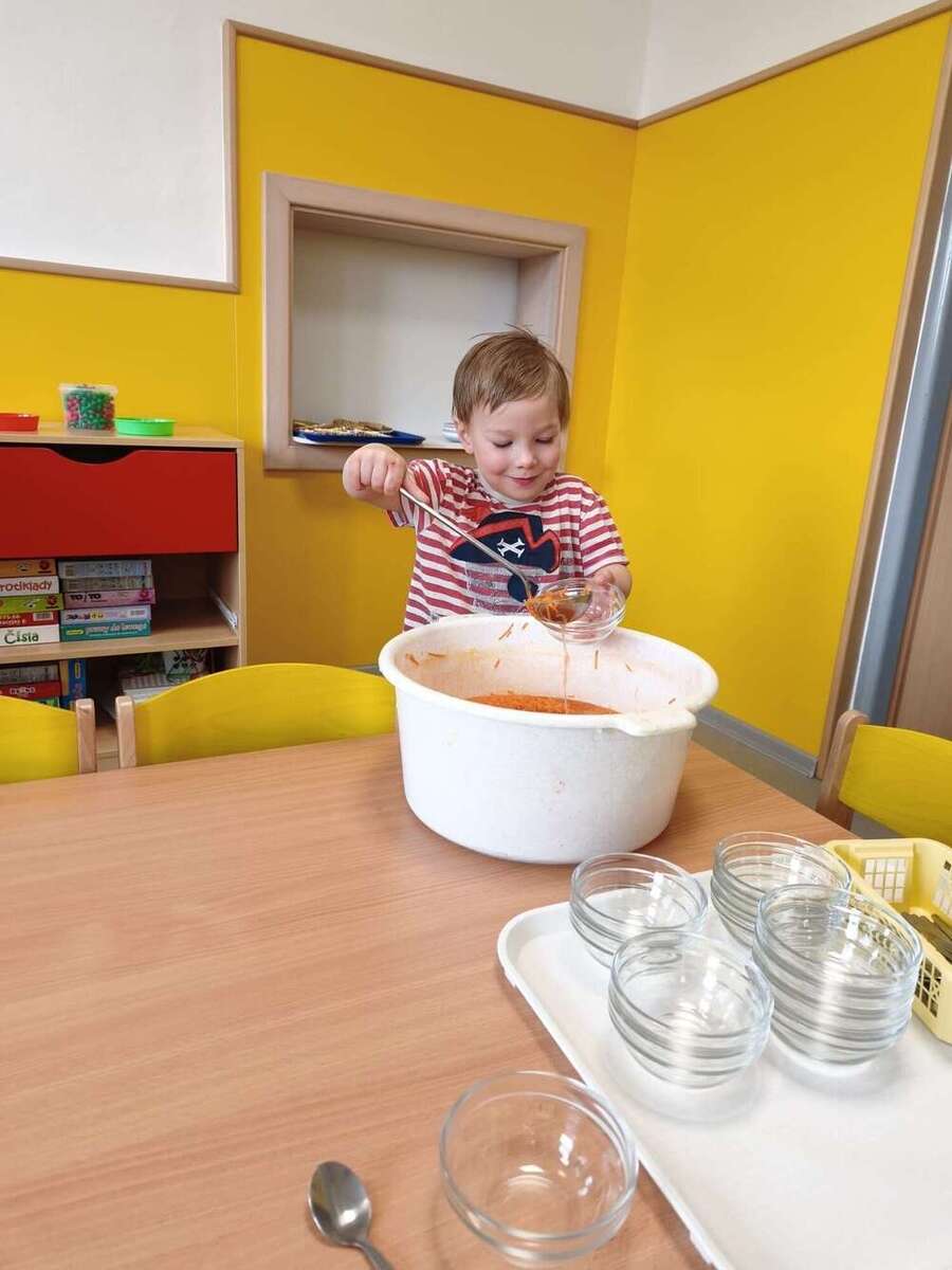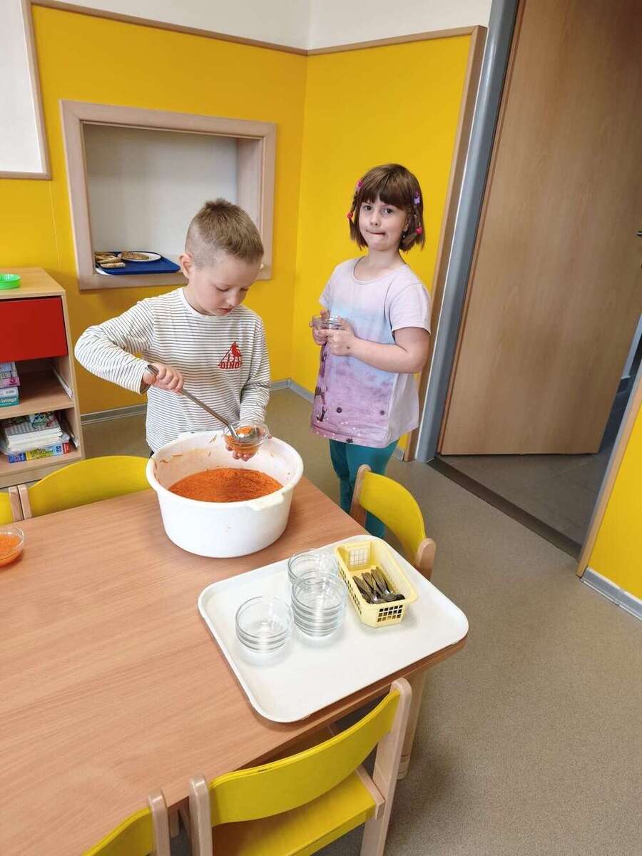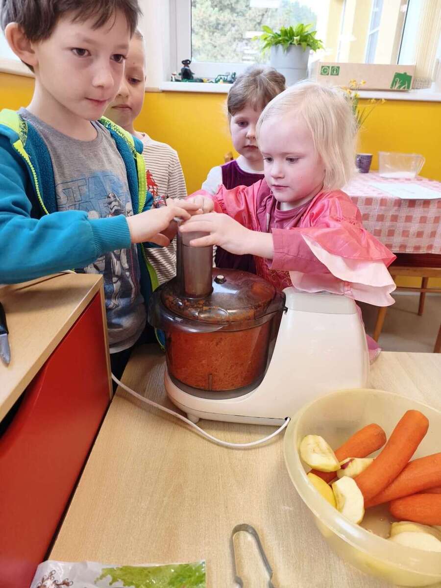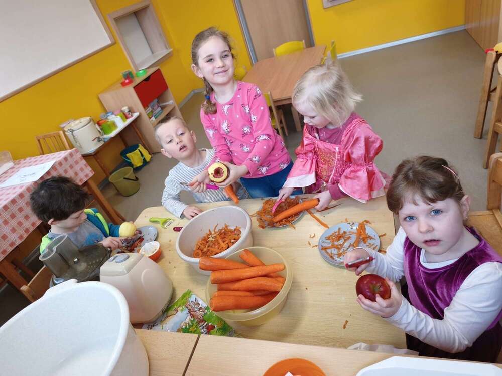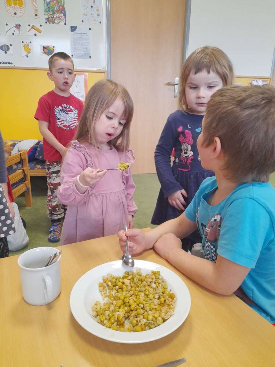 Co jsme dělali před Velikonocemi? Ochutnali jsme tradiční pokrm - pučálku, kterou jsme si sami připravili ze zeleného hrachu a čekali až nám vyklíčí. Paní kuchařka nám ho pak v kuchyni opražila na sladko (s medem) i na slano. Nabídli jsme i rodičům. Třída Žabiček nám zase připravila "zajíčkový" mrkvový salát. Nechybělo malování vajíček, vyrábění papírových košíčků, hnízdeček z březového proutí, pečení jidášů s překvapením. Velké překvapení čekalo na děti u jedné hodné paní, která všem dětem napletla pomlázky různých tvarů i barev. Moc děkujeme a přejeme veselé Velikonoce plné tradičních zvyků.