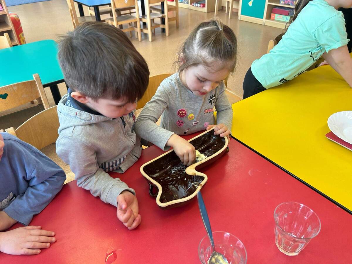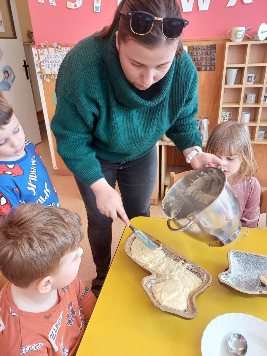 Na Velikonoce jsme se pustili do pečení velikonočního beránka. Děti si nejprve připravily všechny suroviny, které dle instrukcí a s pomocí paní učitelek společně promíchaly a vytvořily těsto. To pak nalily do vymazané formy a předaly paní kuchařkám, které beránka upekly. Nakonec děti beránka s radostí ochutnávaly.