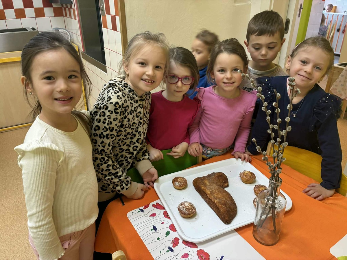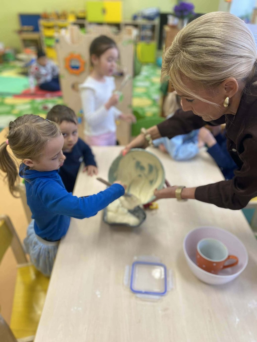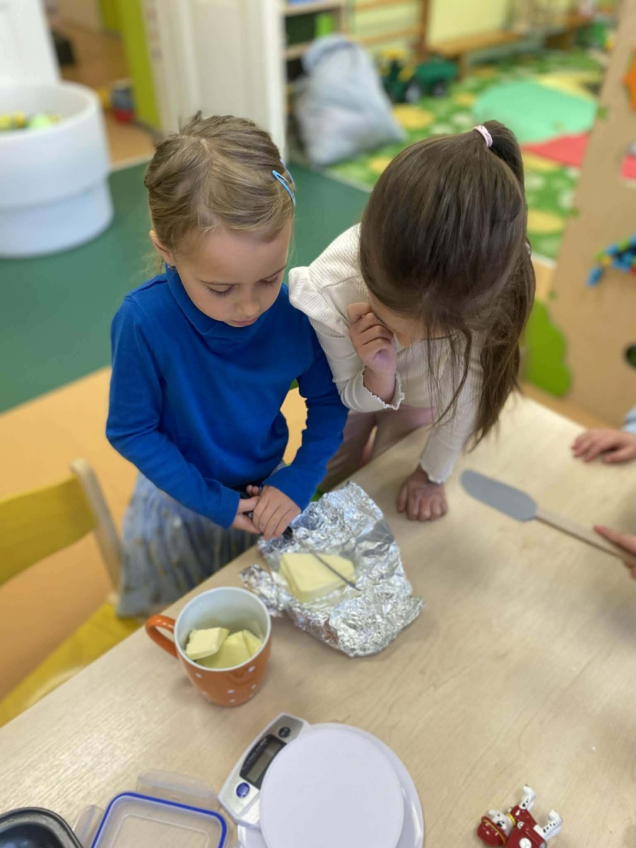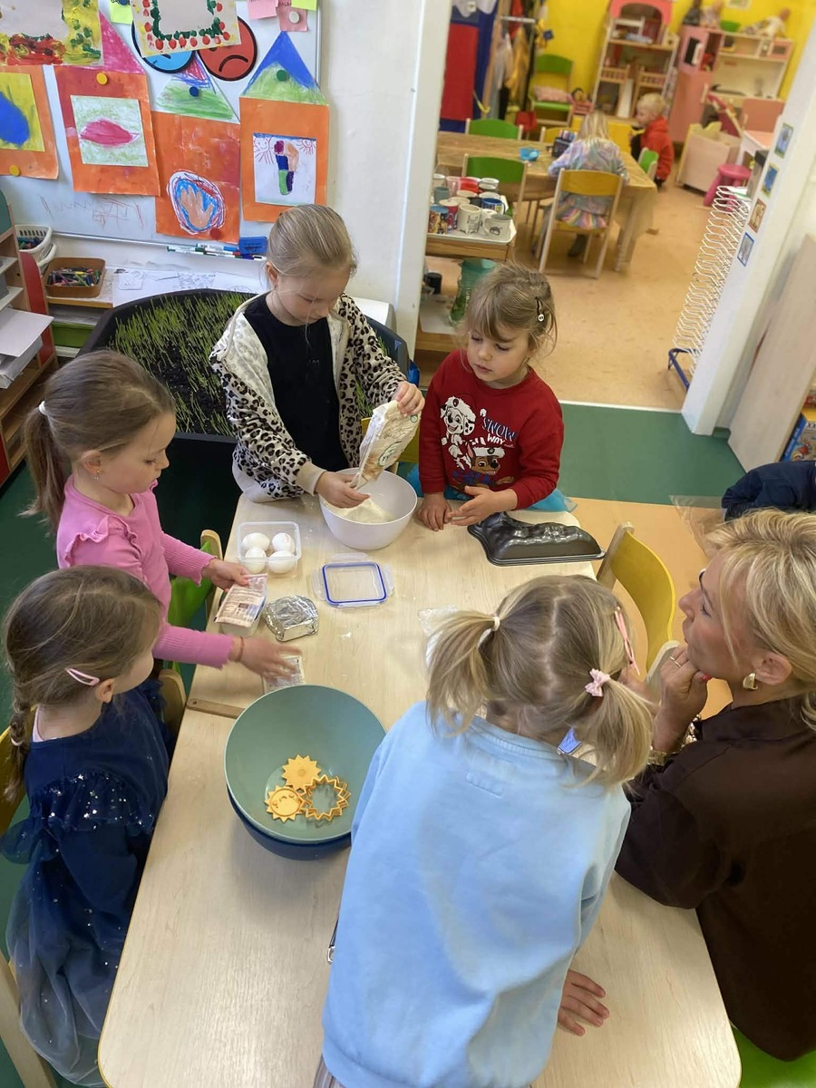 S blížícími se Velikonocemi si děti samy naplánovaly, že by si chtěly upéct tradičního beránka. Společně jsme si povídali o tom, co všechno bude potřeba připravit, a děti se s chutí pustily do práce.