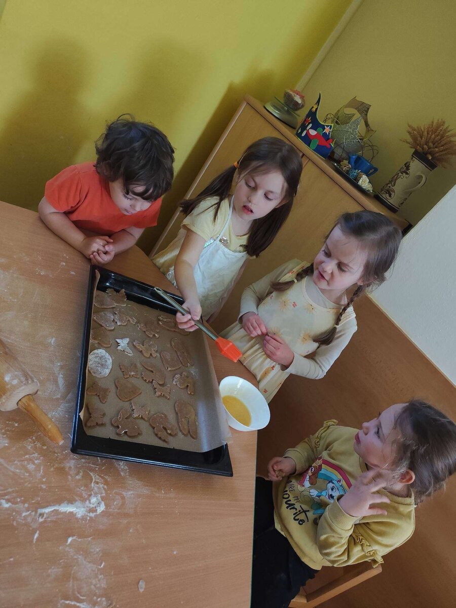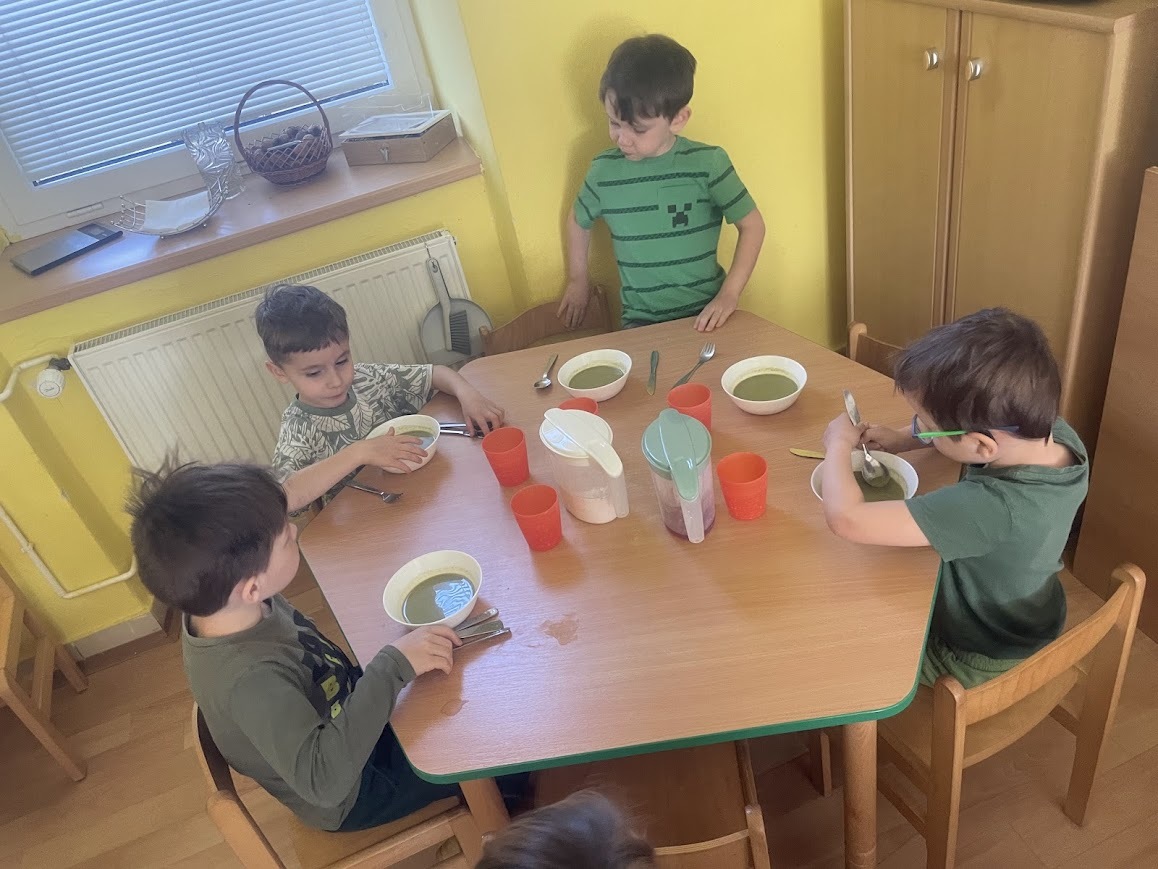 Po cestě tradicemi jsme si společně užili krásné a barevné velikonoční dny. Začali jsme modrým pondělím, které je podle tradice dnem klidu a odpočinku, a tak jsme si užívali pohodovou atmosféru v modrém ???? Pokračovali jsme šedým úterým, kdy se dříve uklízelo a vymetaly se pavučiny, a i my jsme si povídali o tom, jak je důležité mít kolem sebe pořádek a společně i uklízeli (ostatně jako každý jiný den)????. Na škaredou středu se přece nikdo nesmí škaredit, a tak jsme celý den rozzářili ve sluníčkové žluté???? ☀️ Zelený čtvrtek jsme obohatili hledáním vajíček v naší už rozkvétající zelené zahradě????, radost a nadšení přinesly "nálezy" mlsání v podobě zdravých dobrot ???????? Všechny naše barevné dny s námi držely i holky ze školní jídelny a kouzlily nám tematický barevný jídelníček, který lahodí oku i chuti. ????
