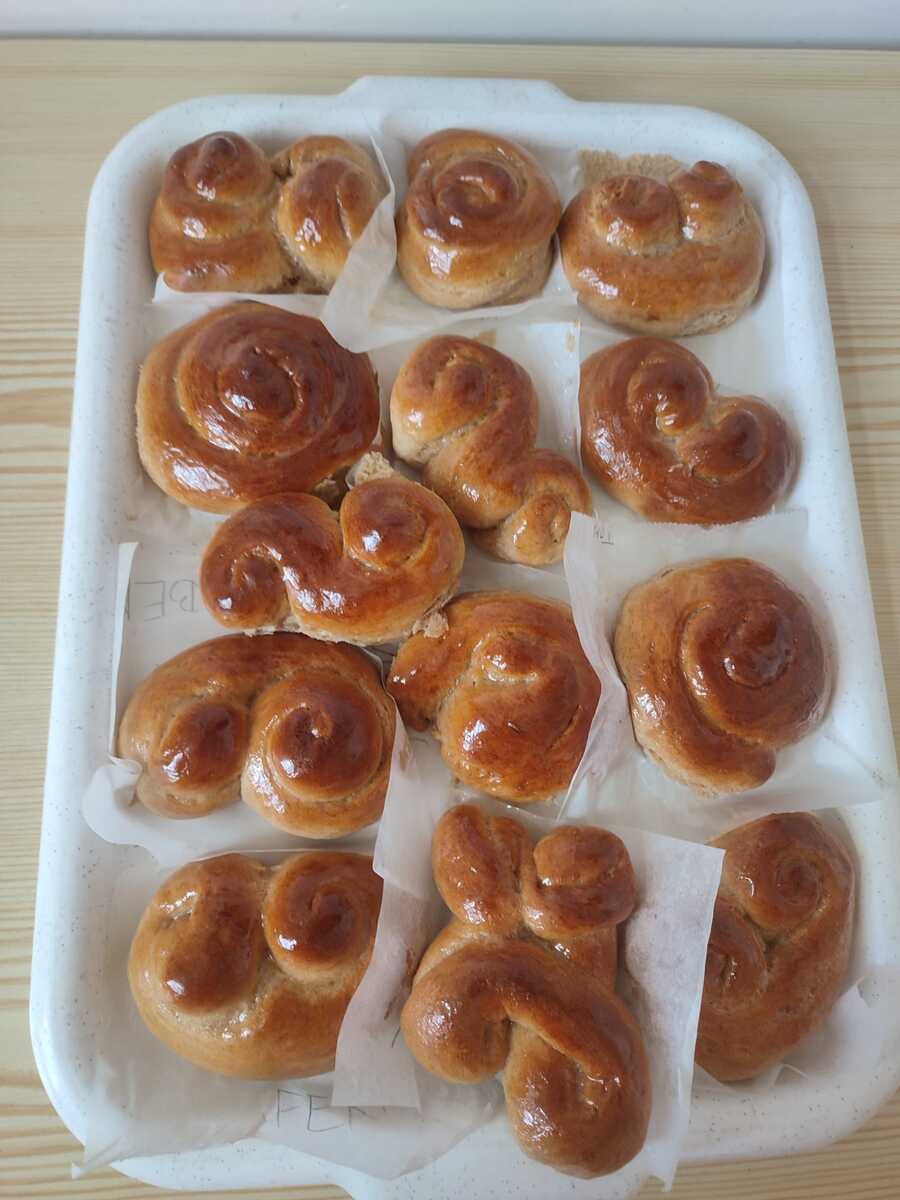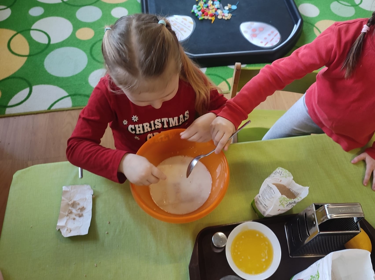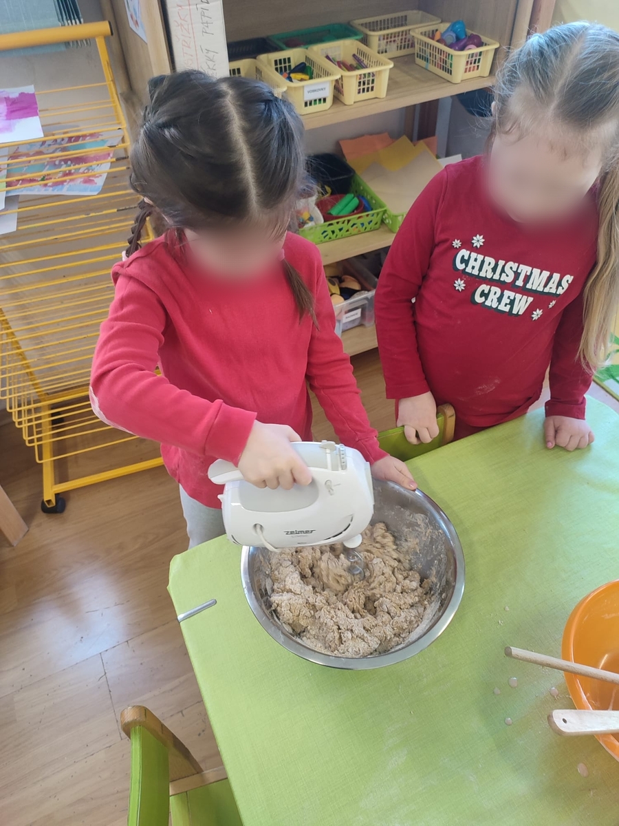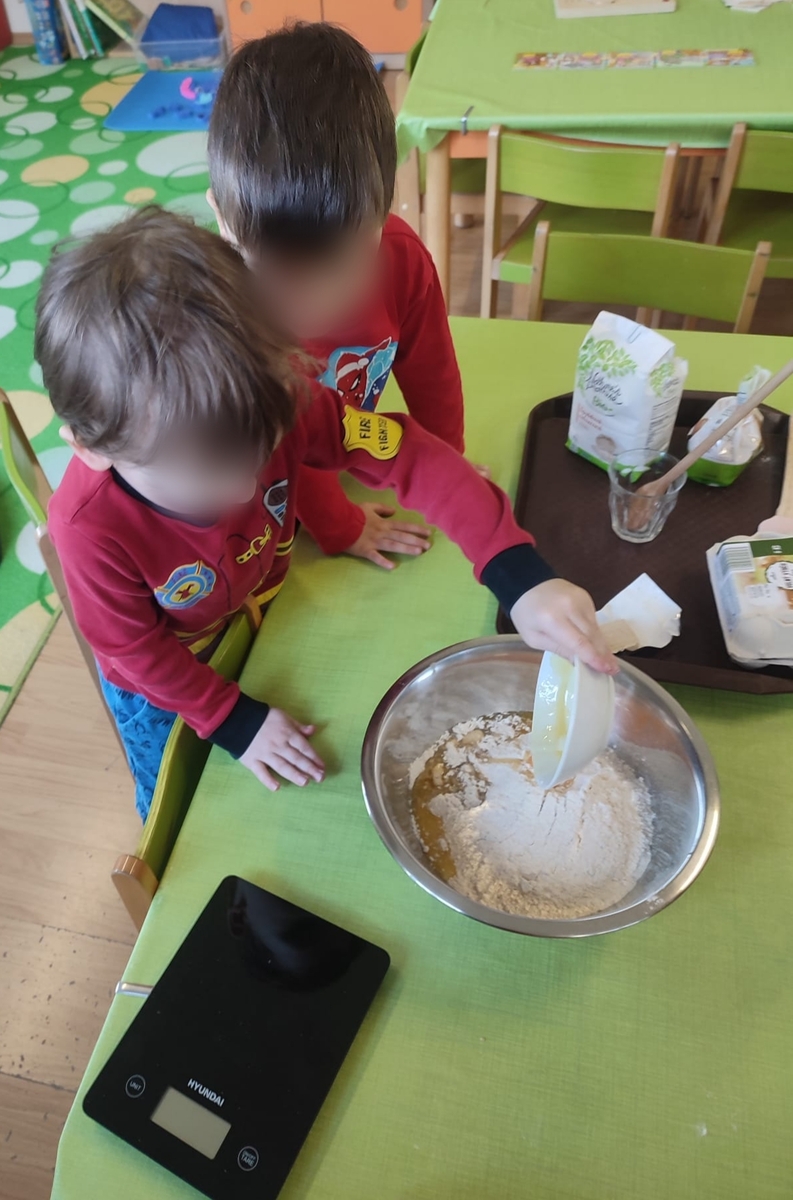 Ve třídě Zajíčků jsme se před Velikonocemi seznamovali se zvyky a tradicemi, navštívili jsme velikonoční trhy, vyráběli různé dekorace a užívali si barevný týden. V minulosti lidé pekli na Škaredou středu jidáše, aby si připomněli Ježíšova zrádce. I my jsme se tohoto tématu dotkli a během naší "červené" středy jsme zadělali těsto na toto velikonoční pečivo. Podle receptu jsme zadělali z mléka, trošku cukru, mouky a droždí kvásek, smíchali špaldovou mouku, třtinový cukr, žloutky, sůl, rozpuštěné máslo a přidali jsme nastrouhanou kůru z bio citrónu. S napětím jsme čekali, jestli nám těsto vykyne - a povedlo se! Po svačině jsme se dali do šoulání těsta, každý si z kousku vyválel dlouhého hada a zamotal do šneka či jiného tvaru. Před pečením jsme své jidáše potřeli vajíčkem a po upečení ještě rozpuštěným máslem s medem. Aby zajistily dobré zdraví, jedly je lidé na Zelený čtvrtek před východem slunce, ale my jsme to tak dlouho nevydrželi, protože krásně vypadaly a ještě víc voněly.