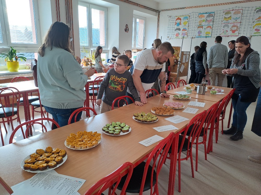 Děti se aktivně zapojily do příprav občerstvení – připravily chutné pomazánky i těstovinový salát. Každá třída navíc upekla vlastní buchtu, která byla zařazena do soutěže s názvem „Nejlepší buchta školy“. Porota i návštěvníci tak měli možnost ochutnat mnoho různých sladkých dobrot a rozhodování nebylo vůbec jednoduché.