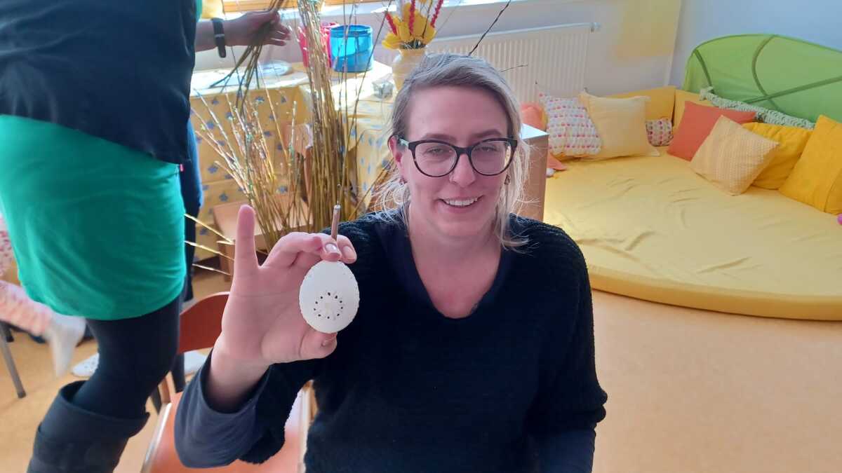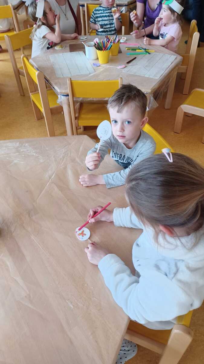 Pak už na ně a jejich rodiče čekalo tvoření v podobě pletení pomlázek a zdobení vyfouknutých vajíček voskovou metodou.Děti nejvíce bavilo zdobení vajíček ze samotvrdné hmoty. A nesmělo chybět občerstvení v podobě mafinek ze špaldové mouky zdobené ovocem, jednohubky s pomazánkou z mrkve, celeru a tvarohu a samozřejmě tradiční velikonoční hlavička. Všichni si moc pochutnali a práce šla líp od ruky.