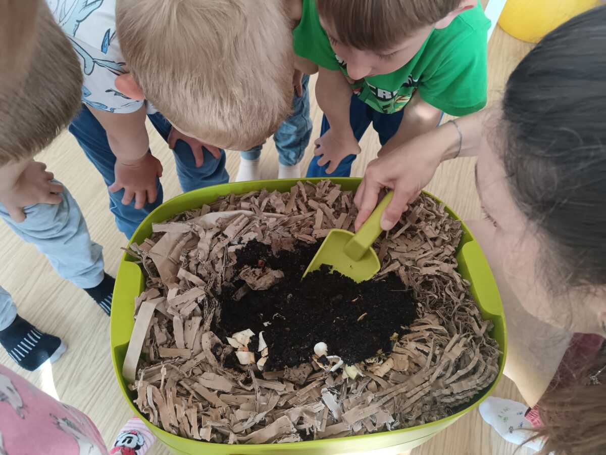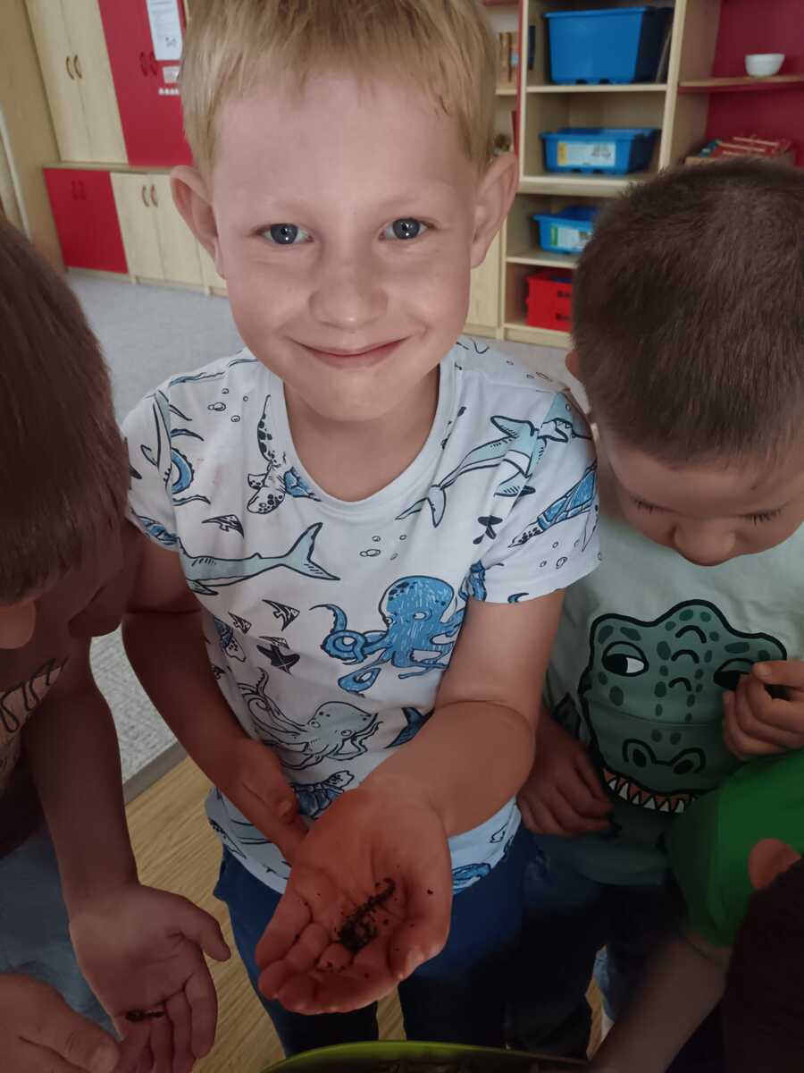 Společnou prací jsme si s malými Věkošánky vermikompostér poskládali, dozvěděli jsme se tak více o tom, jaké prostředí je pro žížalky třeba udržovat, z čeho se kompostér skládá a jak něj pečovat. Navíc jsme si žížalí kamarádky prohlédli hezky zblízka a pak je s láskou uložili do nového domečku, kde se rovnou mohly dát do práce.