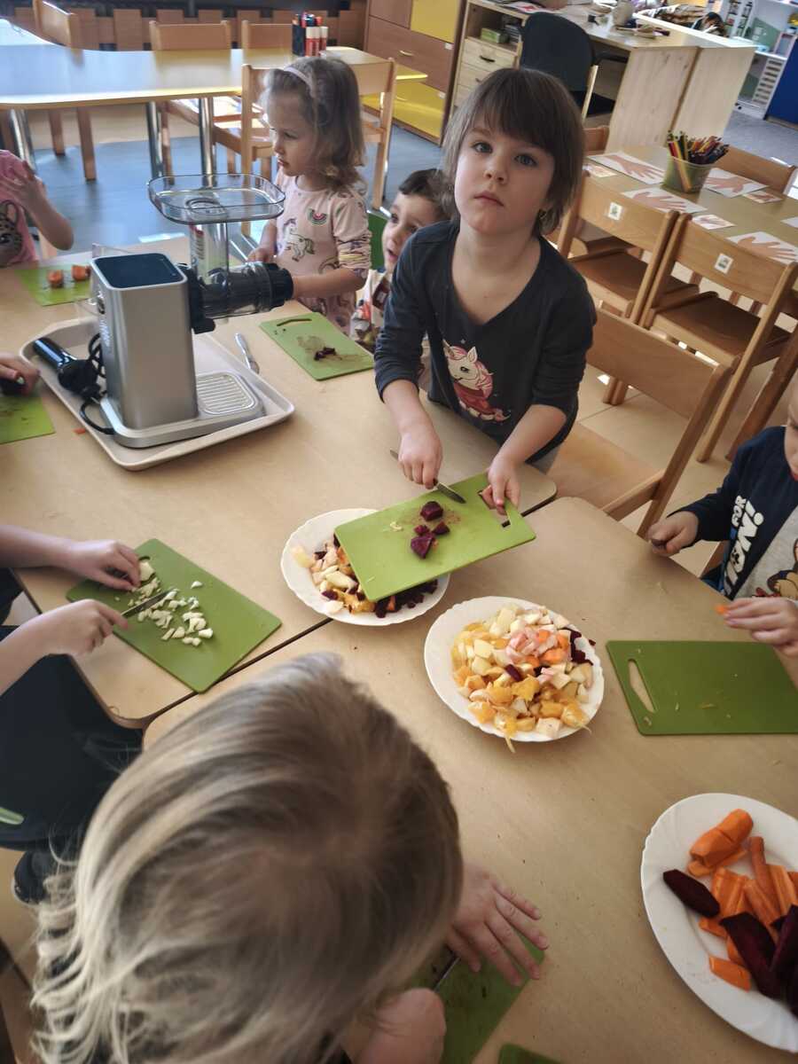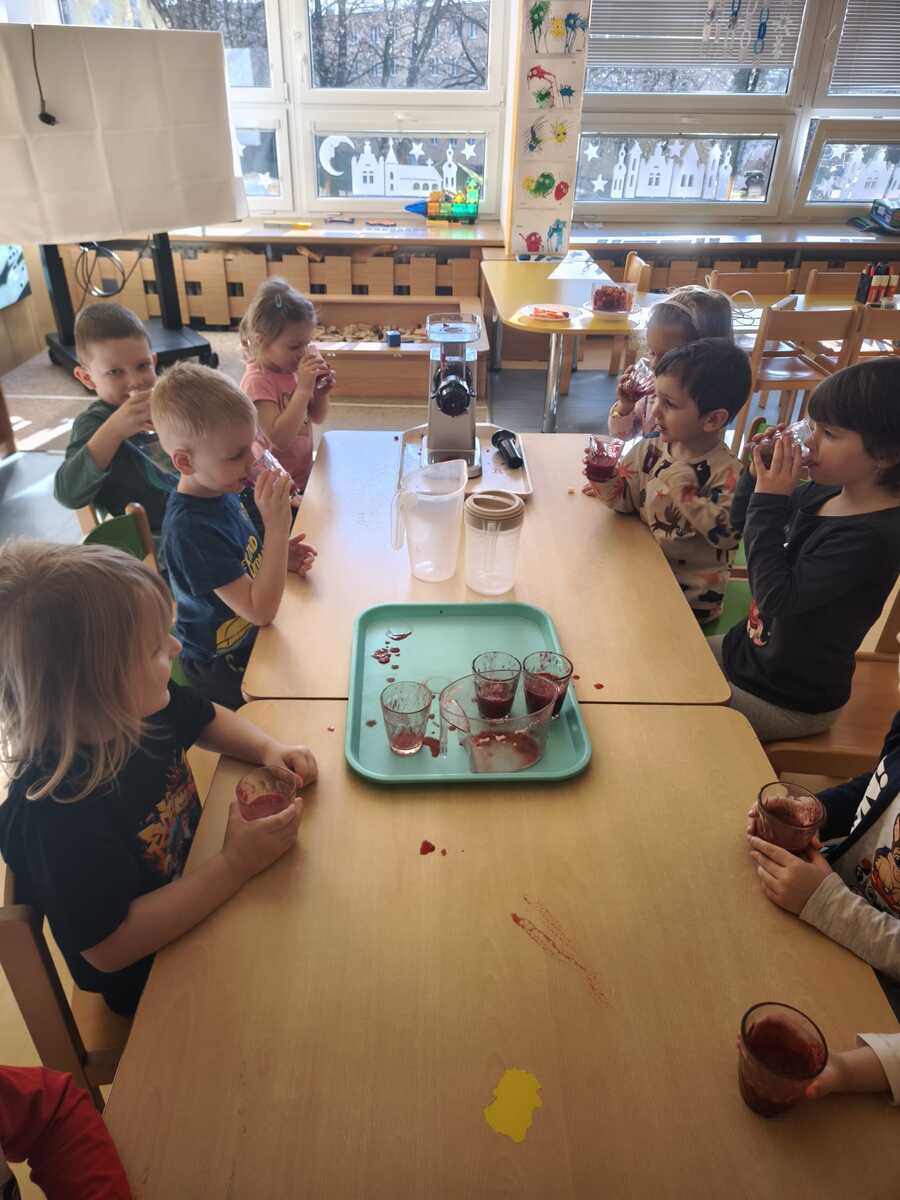 Během měsíce září se děti, ze třídy Broučci, pojistily proti nemocem šťávou plnou ovococe a zeleniny, tudíž je žádná chřipka ani nemoc nezaskočí.