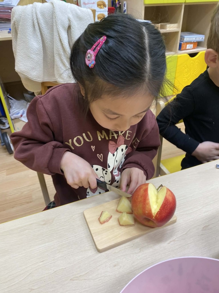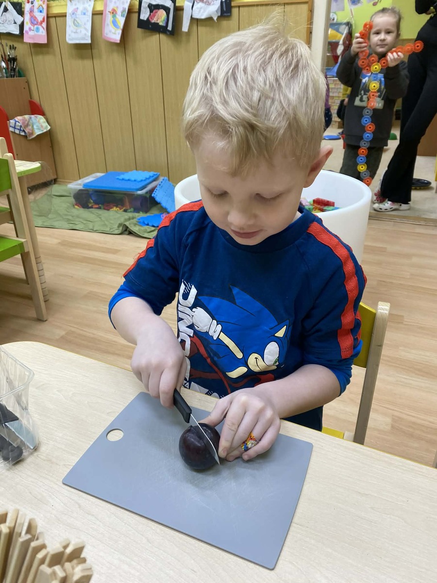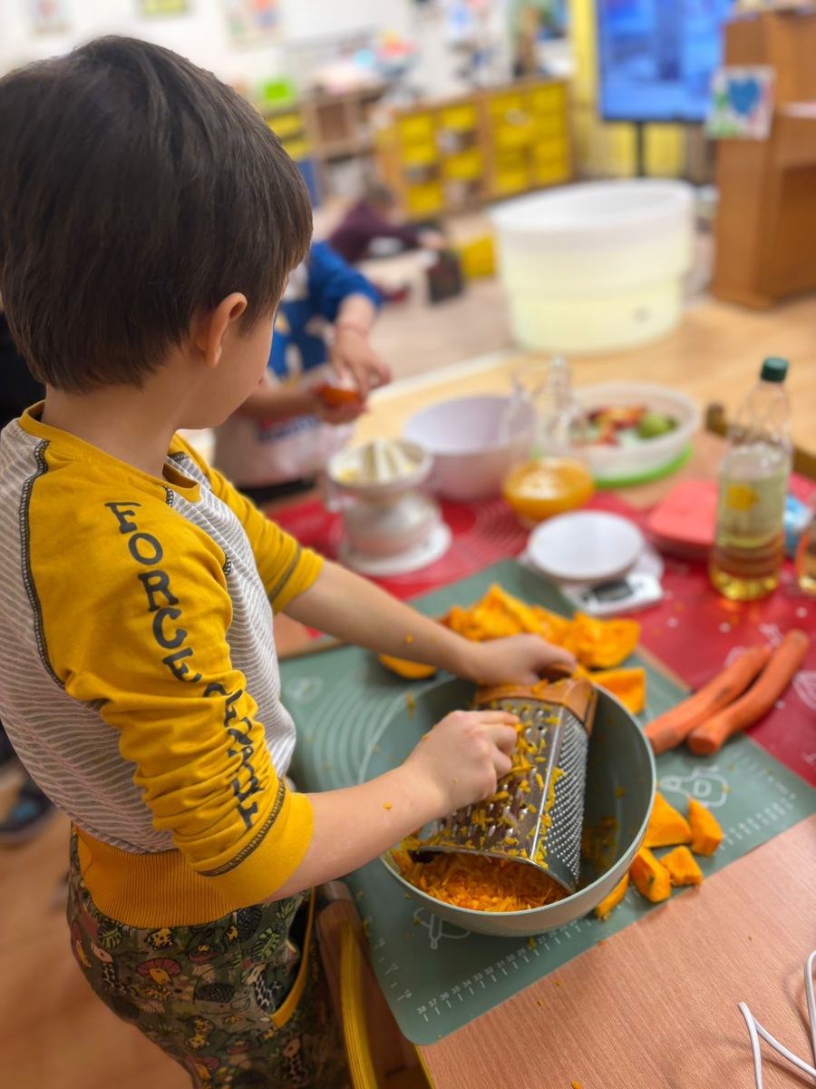 Vitamínový týden nebyl jen o jídle, ale i o tvořivosti a objevování. Děti malovaly řepou, vyráběly tiskátka z citronu a s nadšením se pustily i do netradiční činnosti – rozbíjení kokosového ořechu, které pro ně bylo velkým dobrodružstvím. Společně jsme si také upekli dýňovo-mrkvovou bábovku, která se setkala s velkým ohlasem.