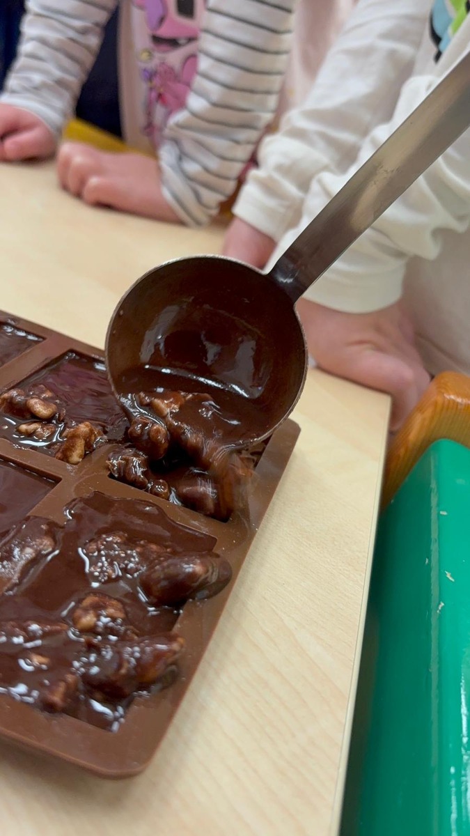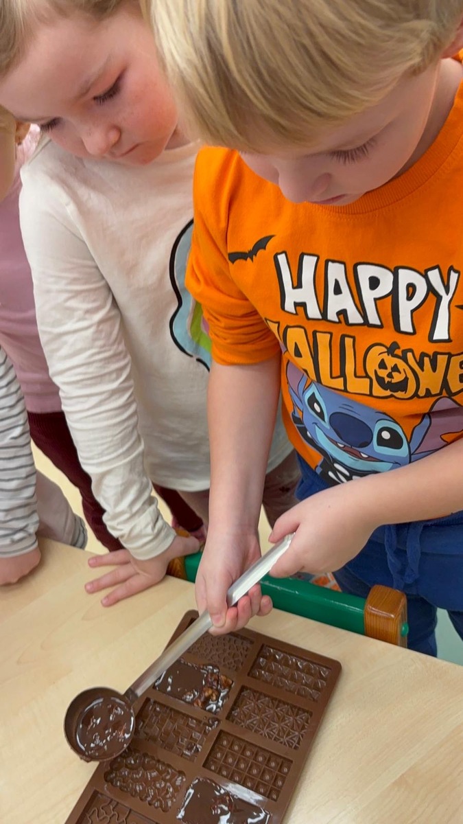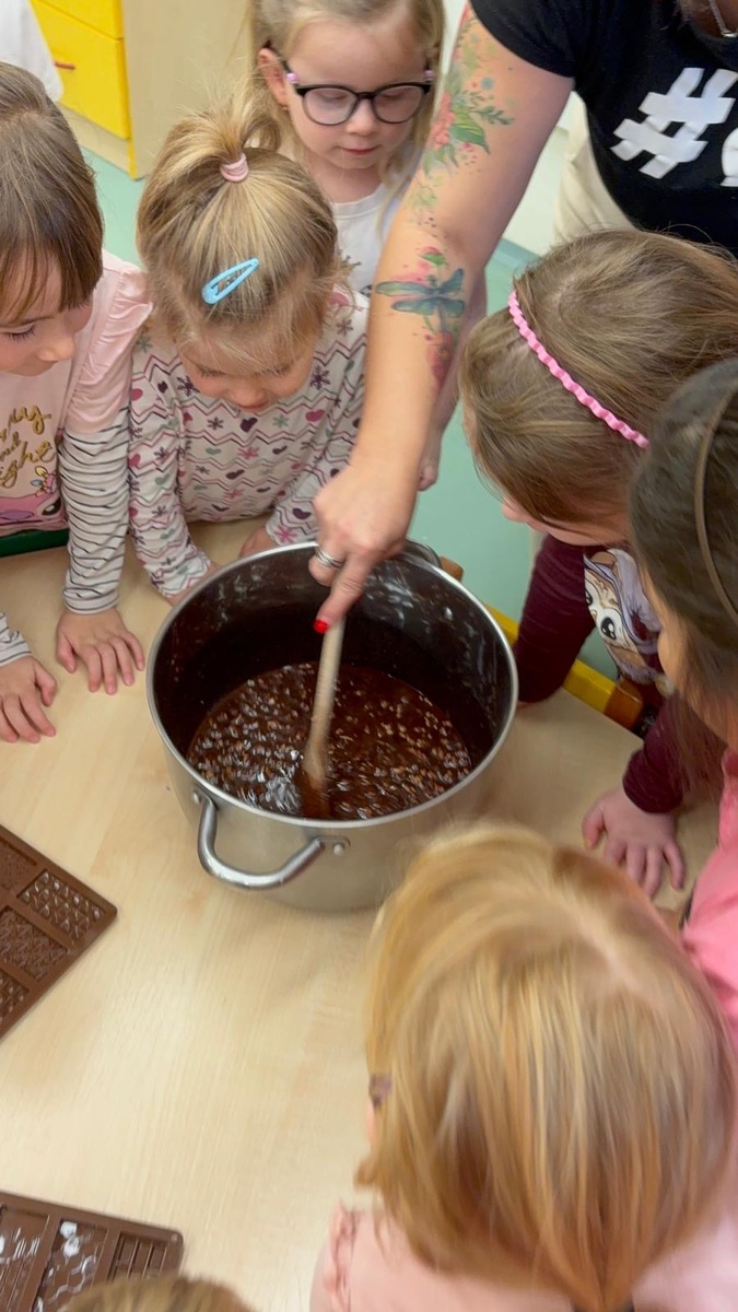 S blížícím příchodem šmiknulas i my ve školce připravujeme sladké, ale vlastní mlsání. Tentokrát si děti připravily domácí čokoládu bez palmového oleje a s minimem cukru. Jako doplněk si děti čokoládu obohatily o vlastní vlašské ořechy.