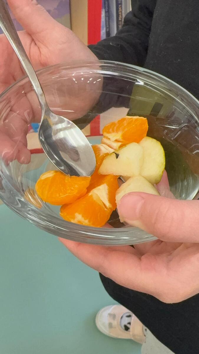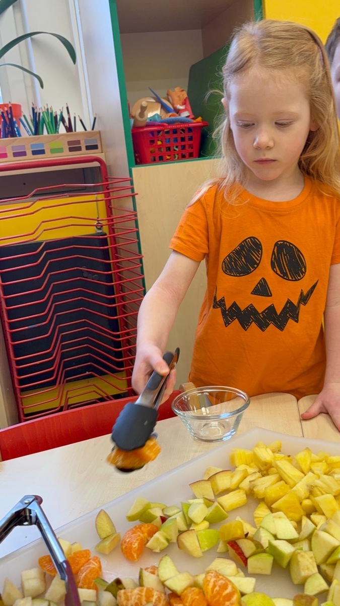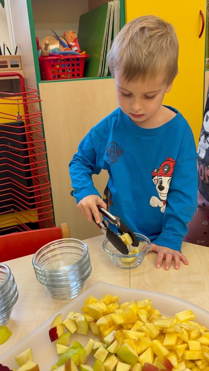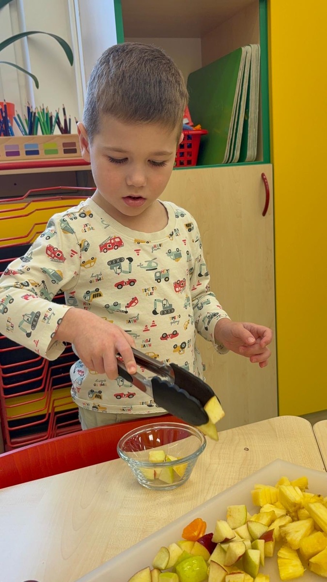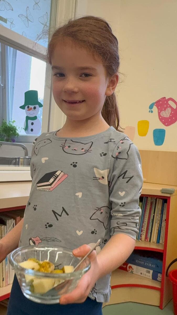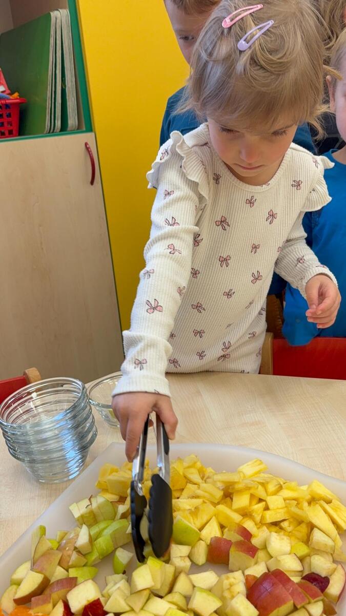 Vedeme děti k samostatnosti i odpovědnosti k jídlu. Děti si samy určují nejen velikost, ale i složení své porce v podobě ovocného salátu se smetanou. Věříte, že takhle to dětem chutná o mnoho více?