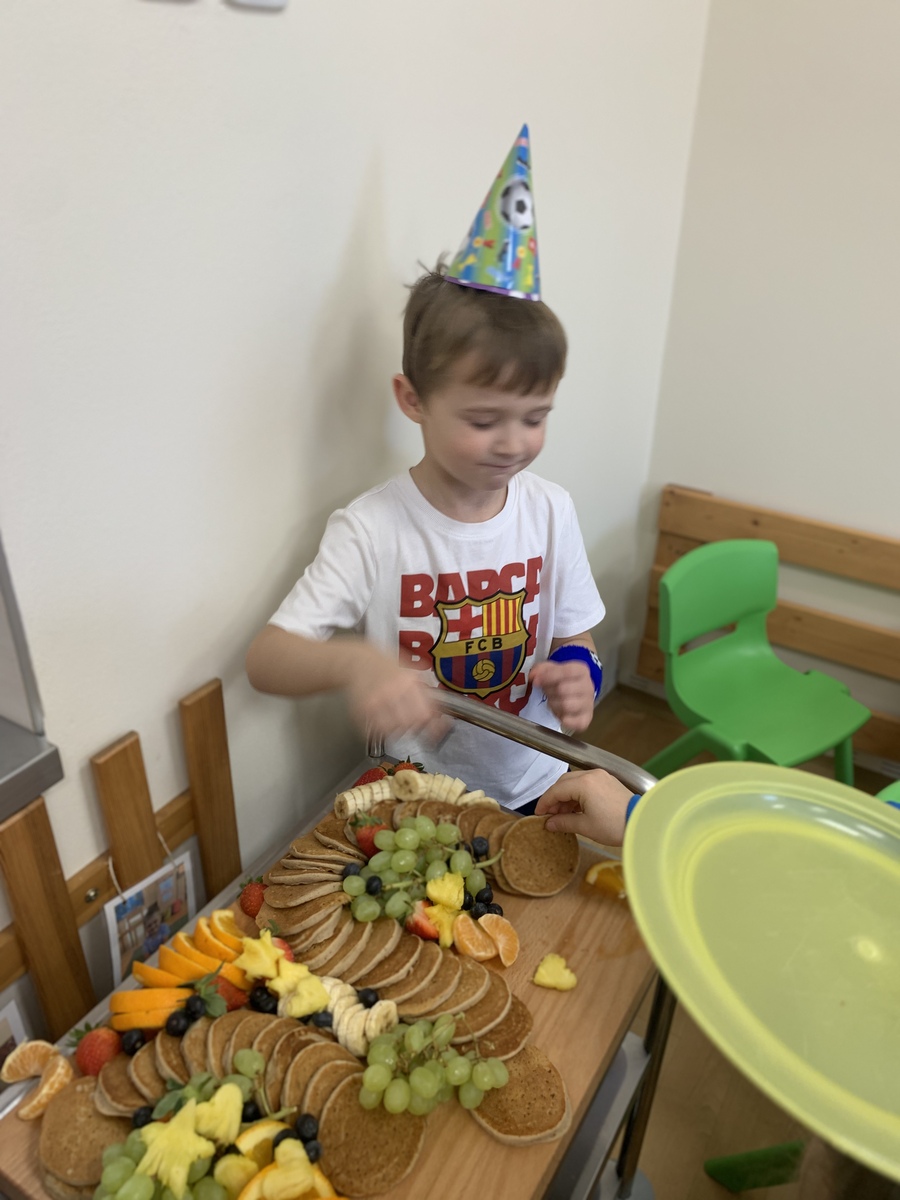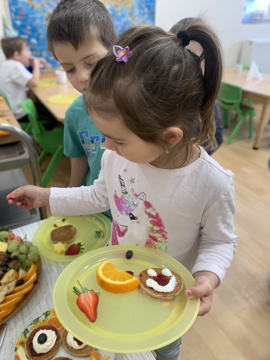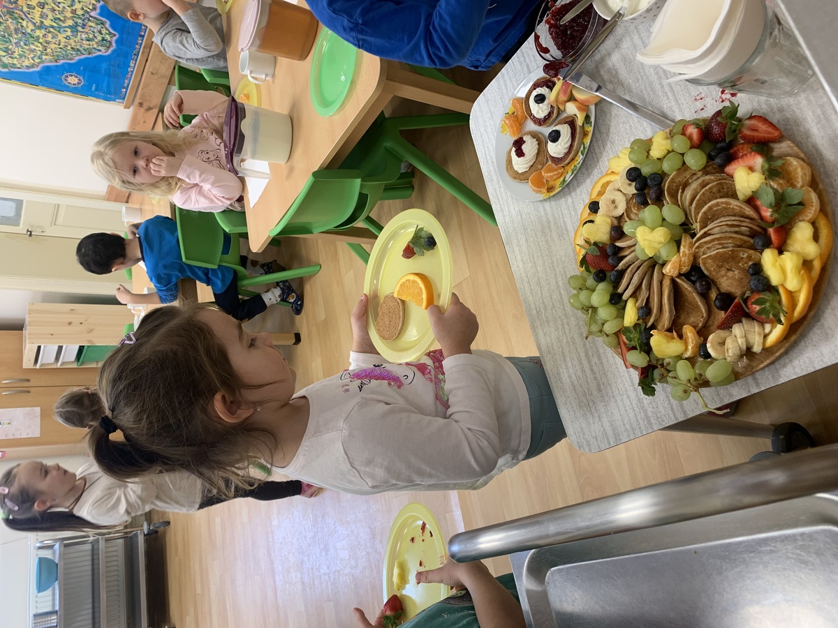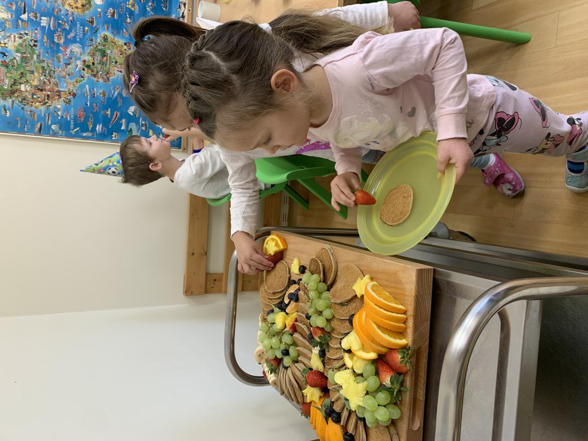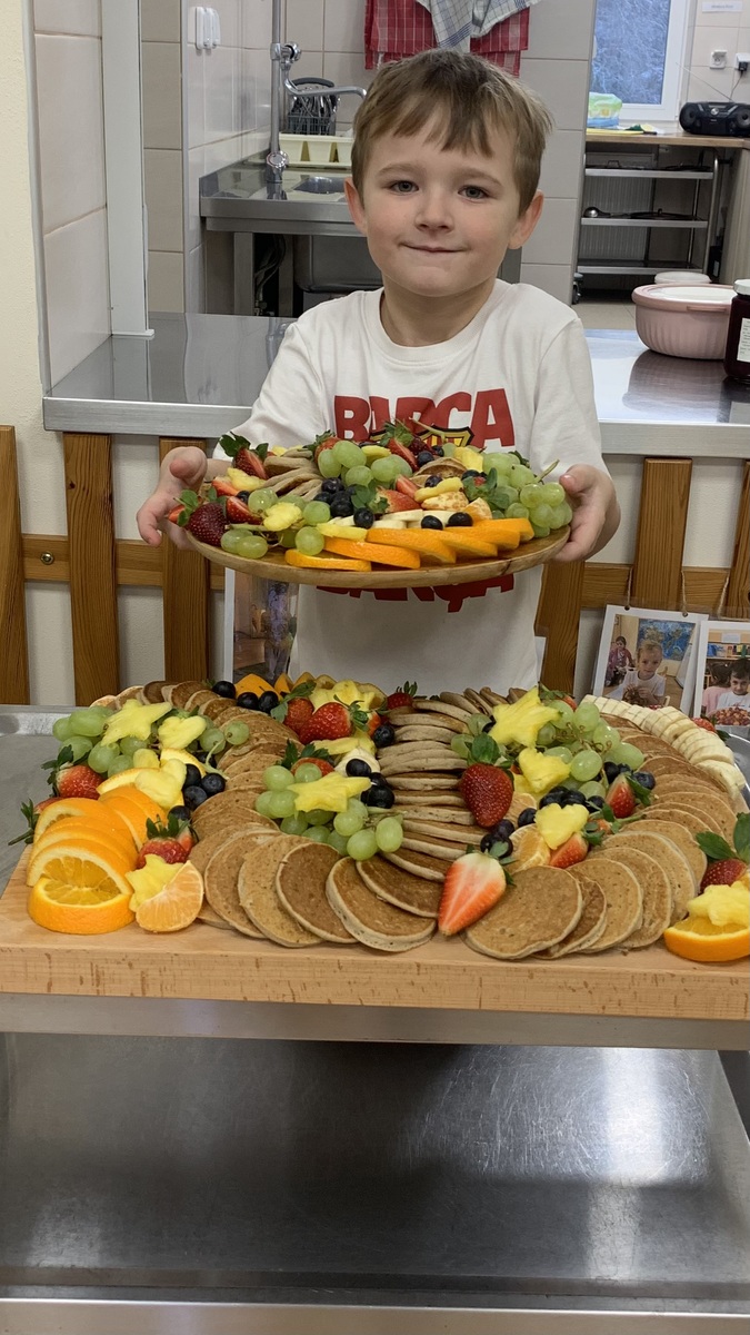 Tato narozeninová hostina měla krásný přesah - děti poznávaly různé druhy ovoce, samy si vybíraly, čím si lívaneček namažou a jakým ovocem ho dozdobí. A také se učí Vojtík s Honzíkem slavnostně prostřeli v jídelně pro své kamarády, paní kuchařka vše s láskou naaranžovala a poté pomohla s úklidem. Celá slavnostní tabule byla připravena s obrovskou péčí, láskou a smyslem pro detail. Byl to opravdový zážitek pro oči i pro chuťové pohárky.
