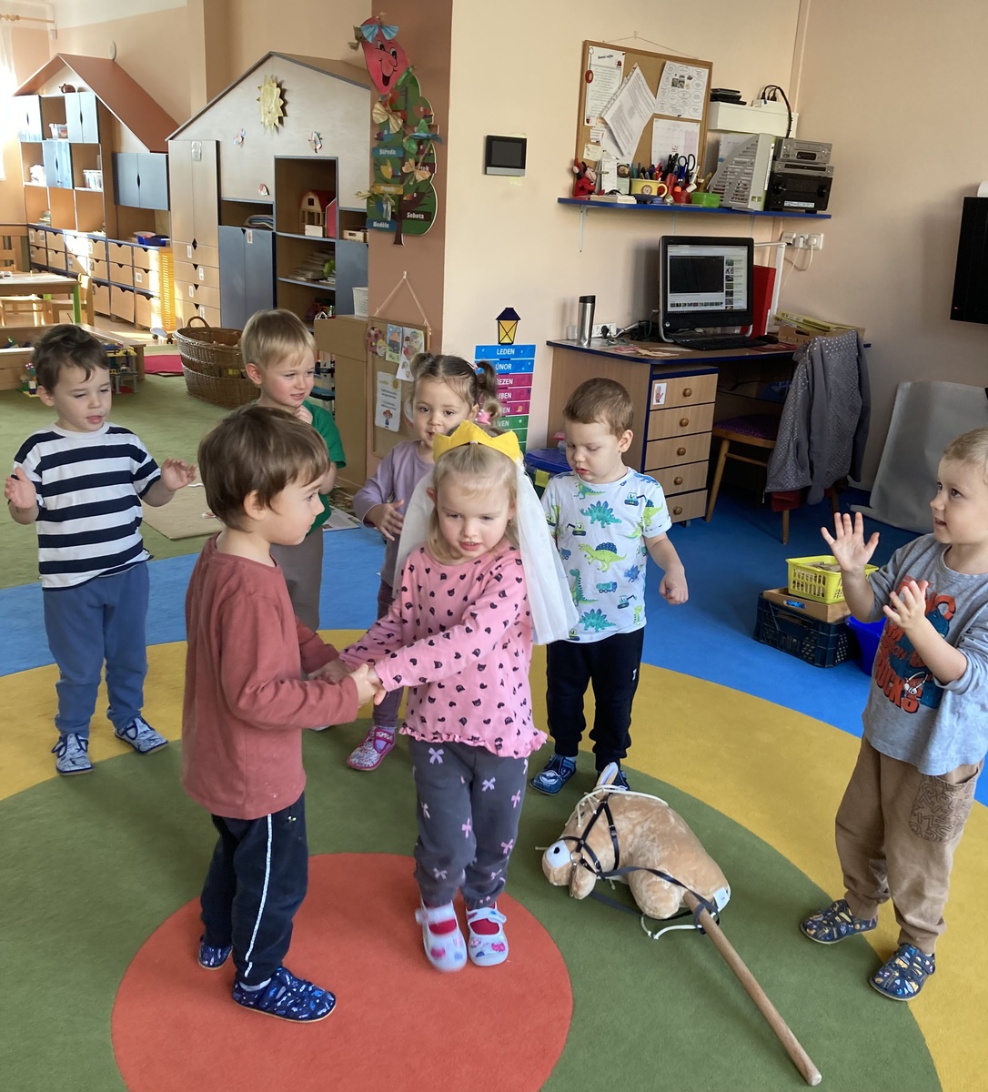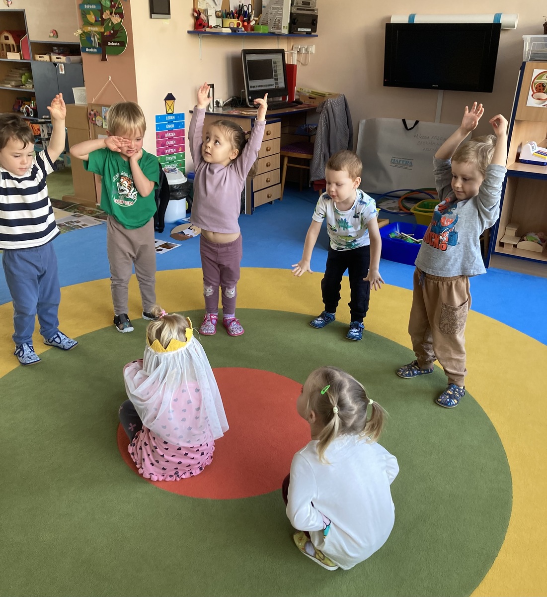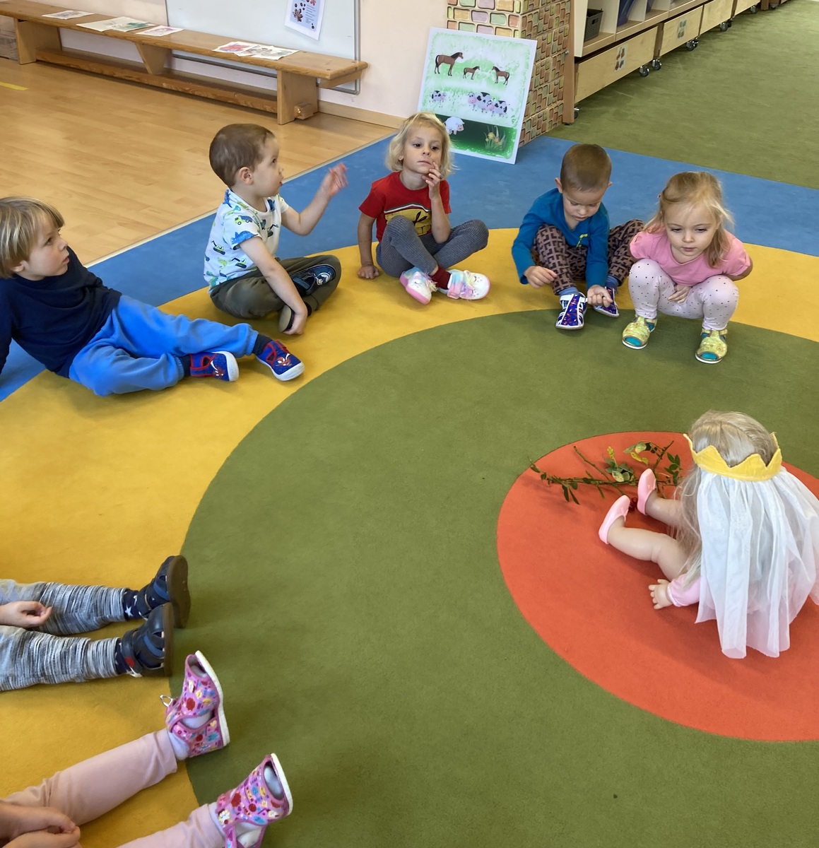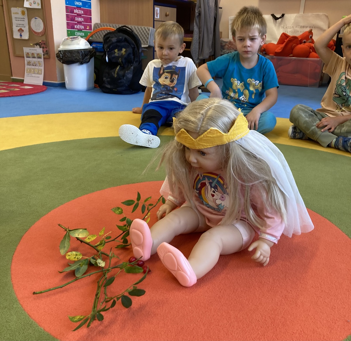 Poslechli jsme si pohádku „O šípkové Růžence“, seznámili jsme se s písničkou a pohádkovým tanečkem „Šípková Růženka“.