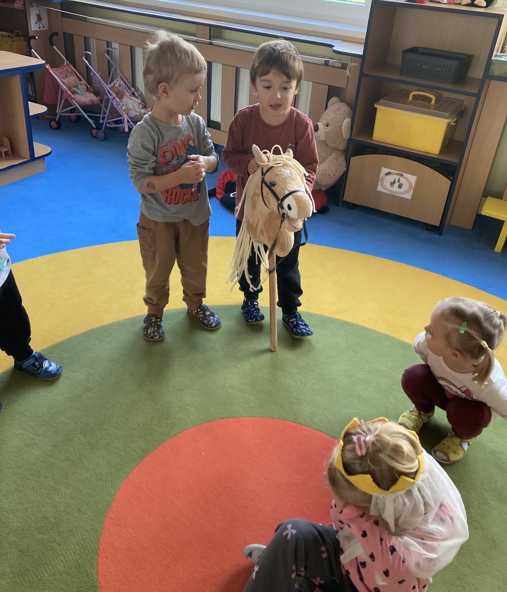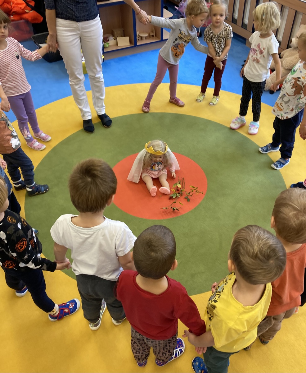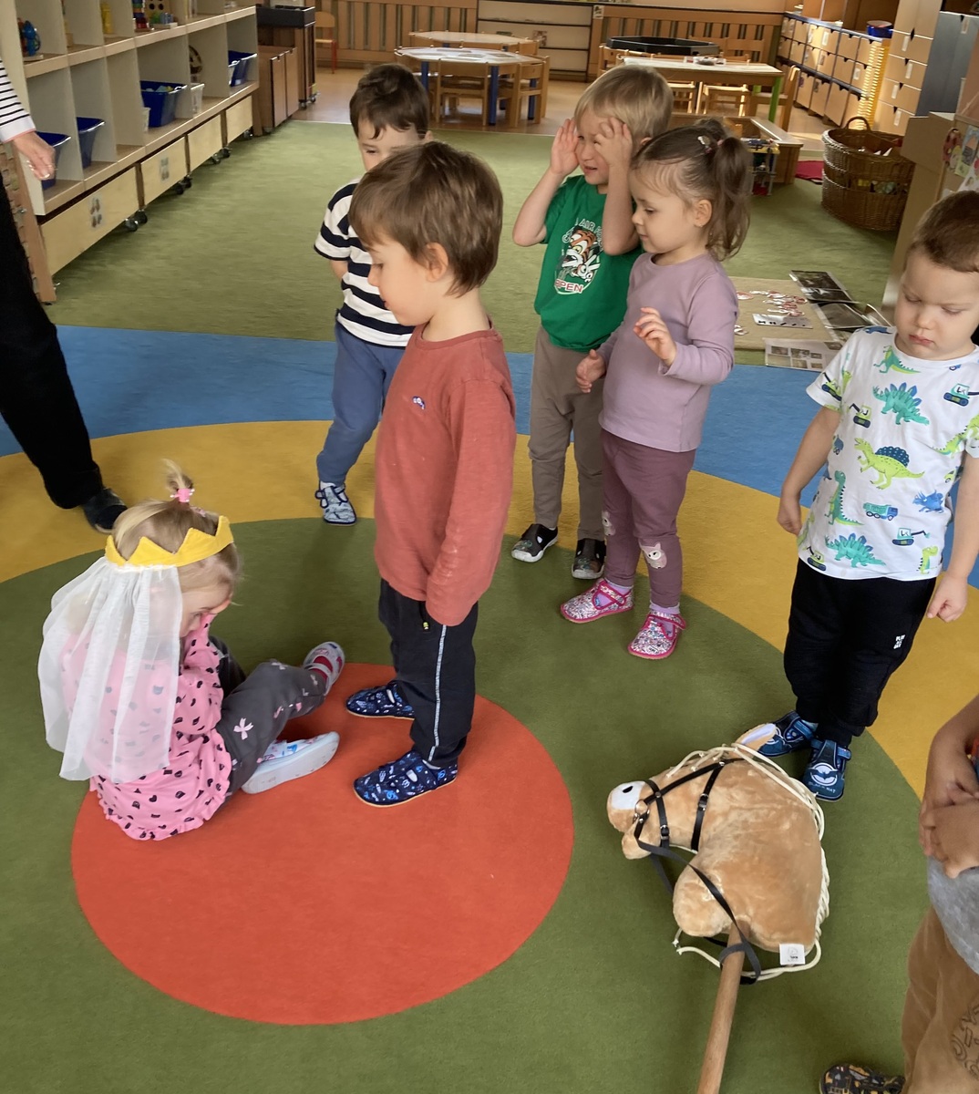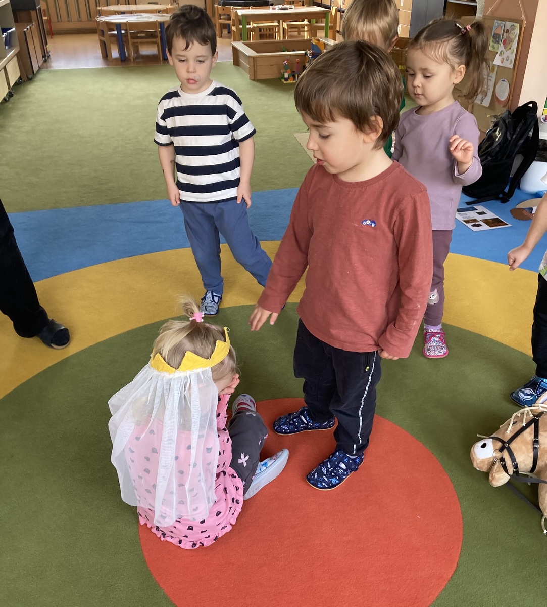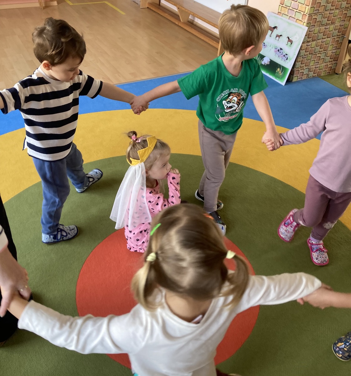 Poslechli jsme si pohádku „O šípkové Růžence“, seznámili jsme se s písničkou a pohádkovým tanečkem „Šípková Růženka“.