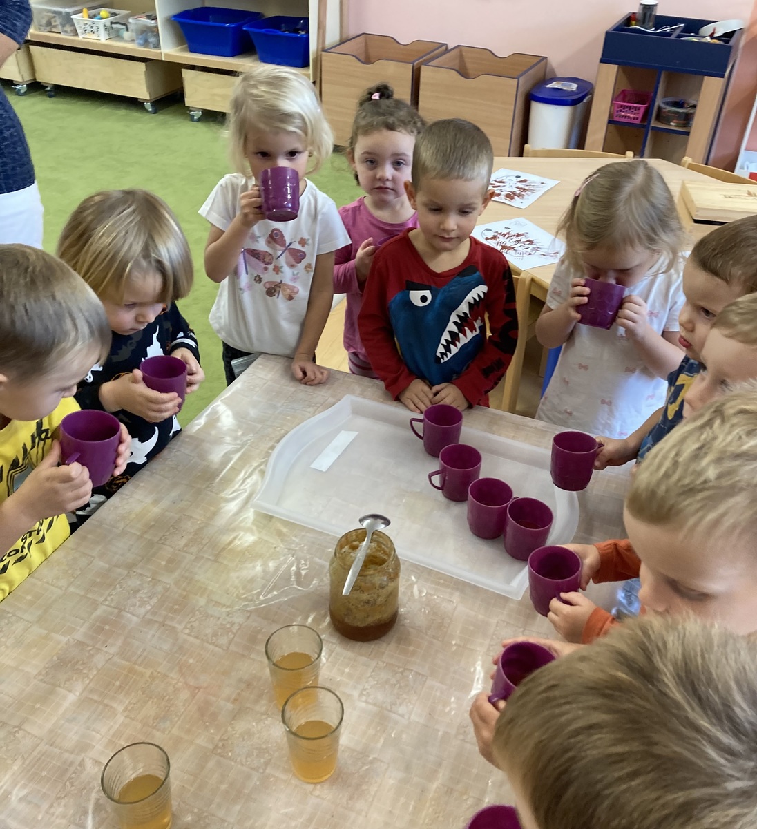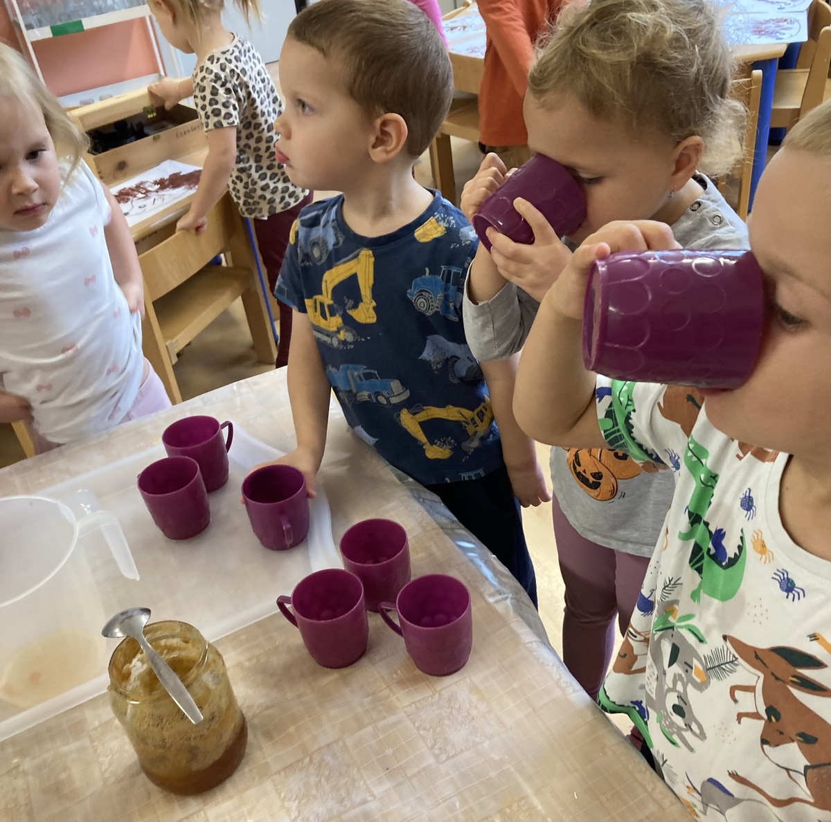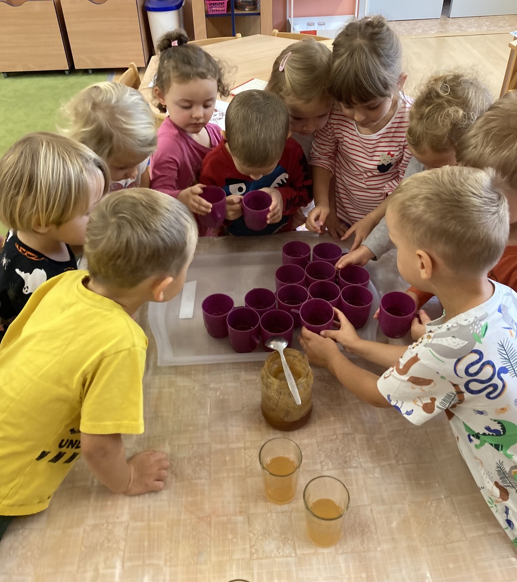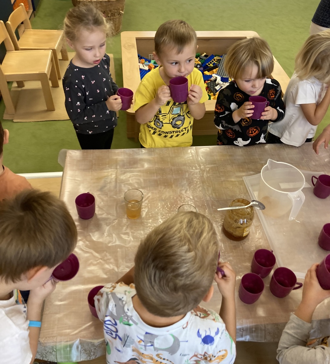 V měsíci říjnu jsme se vydali k šípkovému keři. Pověděli jsme si o rozdílu mezi stromem a keřem. Seznámili jsme se s plody, určili barvu a pověděli jsme si o užitečnosti plodů pro lidi a zvěř. Šípky jsme si natrhali a ve školce jsme ochutnali ze šípků čaj. Moc nám chutnal, přisladili jsme ho medem. Také jsme si povídali o vitamínech a prevenci proti nemocem.