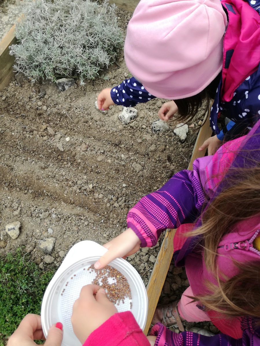 Na jaře se vše probouzí, příroda, zvířátka i to nejmenší semínko. S dětmi jsme si povídali, co vše je možné ze semínka vypěstovat a kolik to dá práce, než vyroste třeba takový hrášek nebo ředkvička. A aby takovou zeleninu mohly ochutnat, musely si ji nejprve zaset, hrášek na chomáček vaty v kelímku a ředkvičku do našeho záhonku před školkou. Všechny děti pilně pracovaly, jako včeličky. Teď se již můžou těšit a pozorovat, jak se všechna ta semínka budou pomalu probouzet k životu.