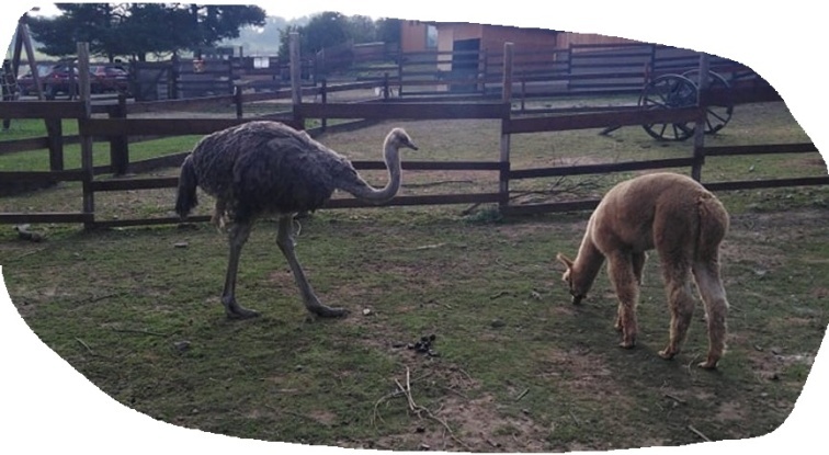Dalšími obyvateli stájí, které jsme si mohli pohladit, byli pštros Tonda (či Tonička) – to se ještě neví, protože trvá 3 roky, než se ukáže, zda jde o samičku či samce – pozná se to podle toho, zda budou vajíčka či nikoliv – a jeho spolubydlící lamy, které měly huňatou a nádherně zbarvenou vlnu, ze které se pak vyrábějí čepice, protože je velmi hřejivá.