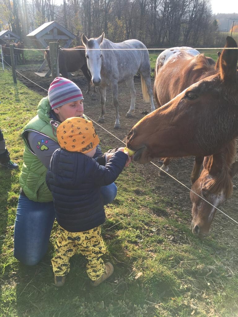 Na den svatého Martina se třída Stonožek vydala na výlet ke koním. Po příjezdu autobusem na Horní Paseky jsme krásnou procházkou došli až na statek, kde nás přivítali dva milí pejsci. Největším zážitkem pro nás všechny bylo setkání s devíti koníky, které nám paní majitelka dovolila pohladit, a dokonce i nakrmit. Abychom zvládli zpáteční cestu, posilnili jsme se dobrou svačinkou, kterou nám chtěl sníst mlsný kocour. Do školky jsme se vrátili spokojení a příjemně unavení pobytem v přírodě.