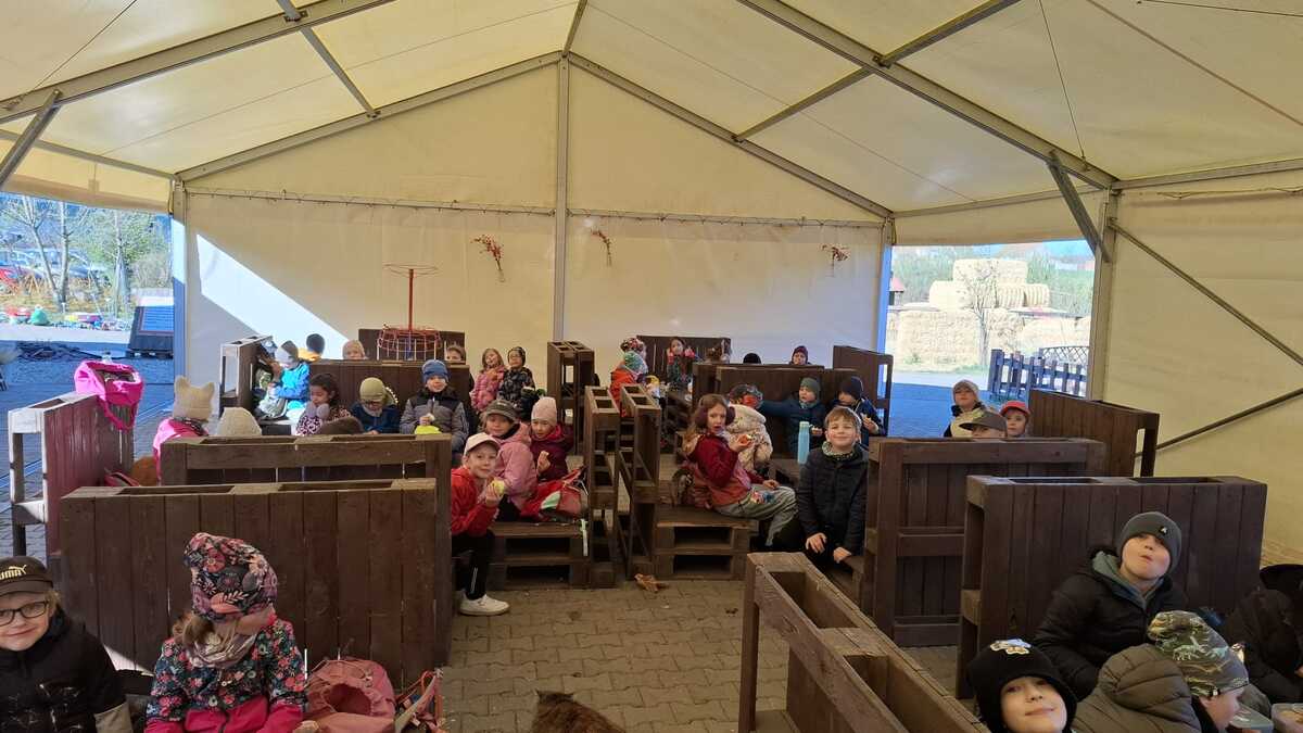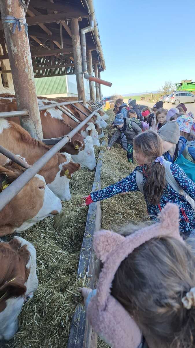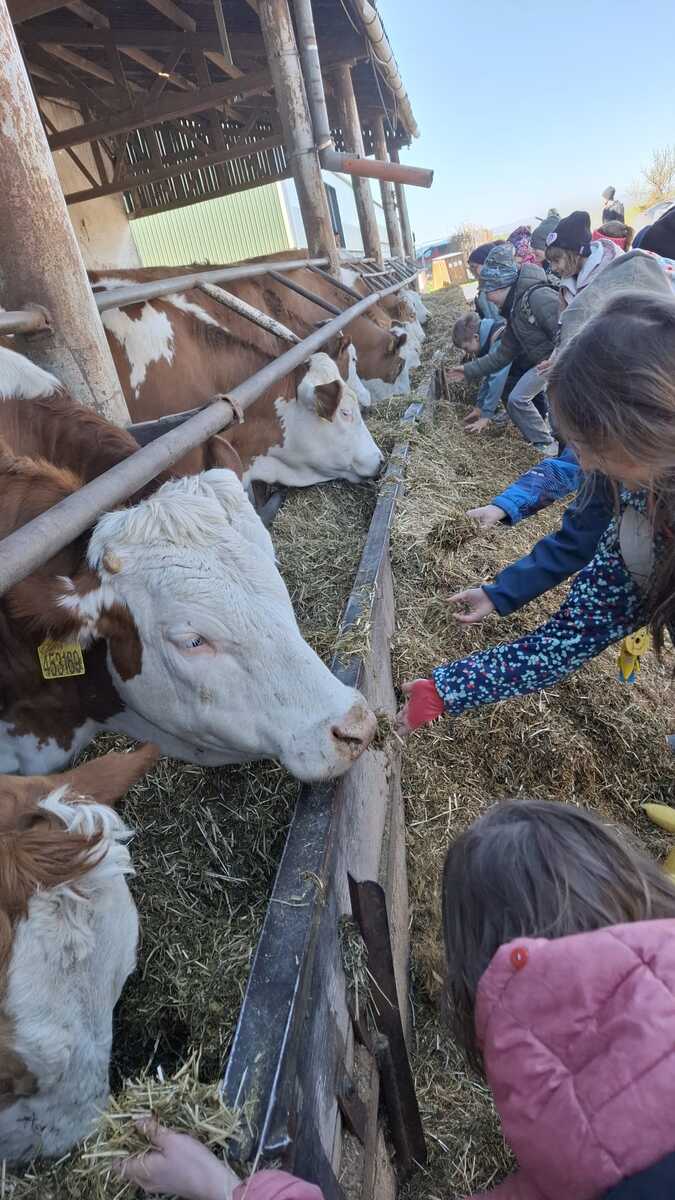 Včera se žáci tříd 2.A a 2.C vydali na společný vzdělávací program na Zlatou farmu ve Štětovicích. Už od rána panovala mezi dětmi skvělá nálada a očekávání, co všechno na ně na farmě čeká. Po příjezdu se děti seznámily s prostředím farmy a především se zvířátky, která zde žijí. Měly možnost vidět například krávy, ovce nebo další hospodářská zvířata zblízka, což pro mnohé z nich byl velký zážitek. Velkou radost jim udělala možnost zvířátka také nakrmit a dozvědět se o nich spoustu zajímavostí. Jedním z nejzajímavějších momentů celého programu byla ukázka dojení krávy. Děti si tak mohly na vlastní oči prohlédnout, jak vzniká mléko, které běžně znají z domova. Na farmu i zpět cestovali žáci vlakem, což bylo pro děti příjemné zpestření celého dne. Společná cesta přispěla k dobré náladě a posílila přátelské vztahy mezi spolužáky. Celý výlet se velmi vydařil a děti si ho moc užily. Odvážejí si nejen krásné zážitky, ale i nové poznatky o životě na farmě.