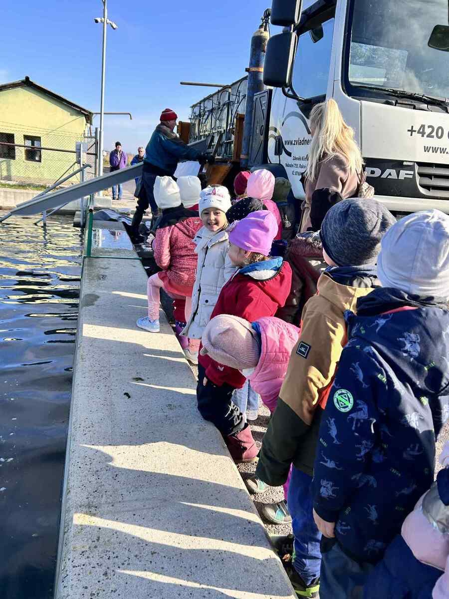 Na výlov rybníka v Jaroslavicích se dnes vydali naši předškoláci. Pan rybář dětem ukázal různé druhy ryb – viděli kapry, štiky, cejny i amúry ????. Děti si zblízka prohlédly sítě plné ryb a dozvěděly se, jak výlov probíhá a co všechno rybáři při práci potřebují. ????