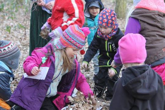 Ve středu 20. března, kdy nastalo astronomické jaro, jsme v Lesokruhu pořádali naši první letošní slavnost spojenou s vynášením Morany a vítáním jara. Na ohni vařenou polévku, podávanou už tradičně na každé naší slavnosti, jsme tentokrát připravovali zeleninovo-luštěninovou. Děti oloupaly, nebo se některé alespoň snažily, a nakrájely brambory, mrkev, celer, batát, pórek, petržel a kapustu. O tuto činnost jevili zájem i ti, kdož dosud vařili v pískové kuchyňce nebo stavěli hrad z polen a prken, takže v jednu chvíli se stála fronta na nože a prkénka. Kromě zeleniny se na ohni vařily kroupy, cizrna a mungo a ochucena byla (nejen) naší vlastní majoránkou, jež přežila zimu ve skleníku, a tymiánem. Po třetí hodině přicházeli rodiče, společně s nimiž si děti vyrobili z klacků, slámy a látek malé Moranky. Velká Morana čekala opřená o třešeň už od rána, a tak jsme se po dokončení Moranek vydali k potoku. Zde byli oficiálně přivítáni a s legendou o Jarovítovi seznámeni přišedší rodiče a příznivci, načež loutková sekce našeho klubu znázornila příběh pomocí loutek z kartónu. Za zpěvu písně Vítej, Vesno přitančily Vesny, které omladily přítomné lítečkem a vodou z Vantrok, náhonu, který protéká třebechovickými lesy už déle než 600 let. Malé Moranky jsme svlékli z jejich oděvů, aby neznečistily vodu, zapálili jsme je a hodili do potoka, aby odpluly zpátky do zimního království. Někteří odvážní jedinci smočili v potoce nohy, a nejodvážnější čtyřleťák se potokem prošel dvakrát po pas ponořen. Nakonec jsme odnesli Moranu do lesa, kde jsme ji pohřbili pod listí a vydali se zpátky do školky na polévku a jiné dobroty, které donesli rodiče a připravila babička kuchařka. Hodovali jsme a družili se ještě ve chvíli, kdy nad les vyšel obrovský měsíc v úplňku. Vítej, jaro, mezi námi :)