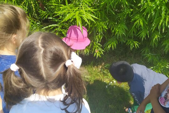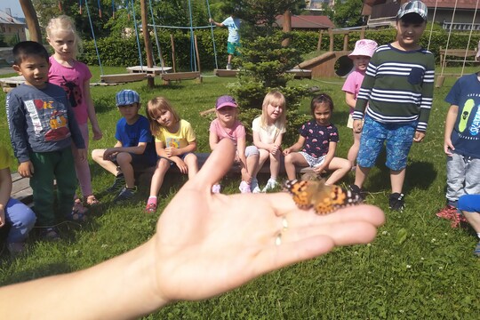Dostali jsme darem motýlí farmu. Ve třídě jsme pozorovali všechny fáze vývoje motýlů a nakonec přišel den, kdy jsme všech 5 motýlů mohli vypustit na svobodu. A kde jinde bychom se měli rozloučit, než nedaleko naší motýlí louky. Několik motýlků zde zůstalo nastálo.
