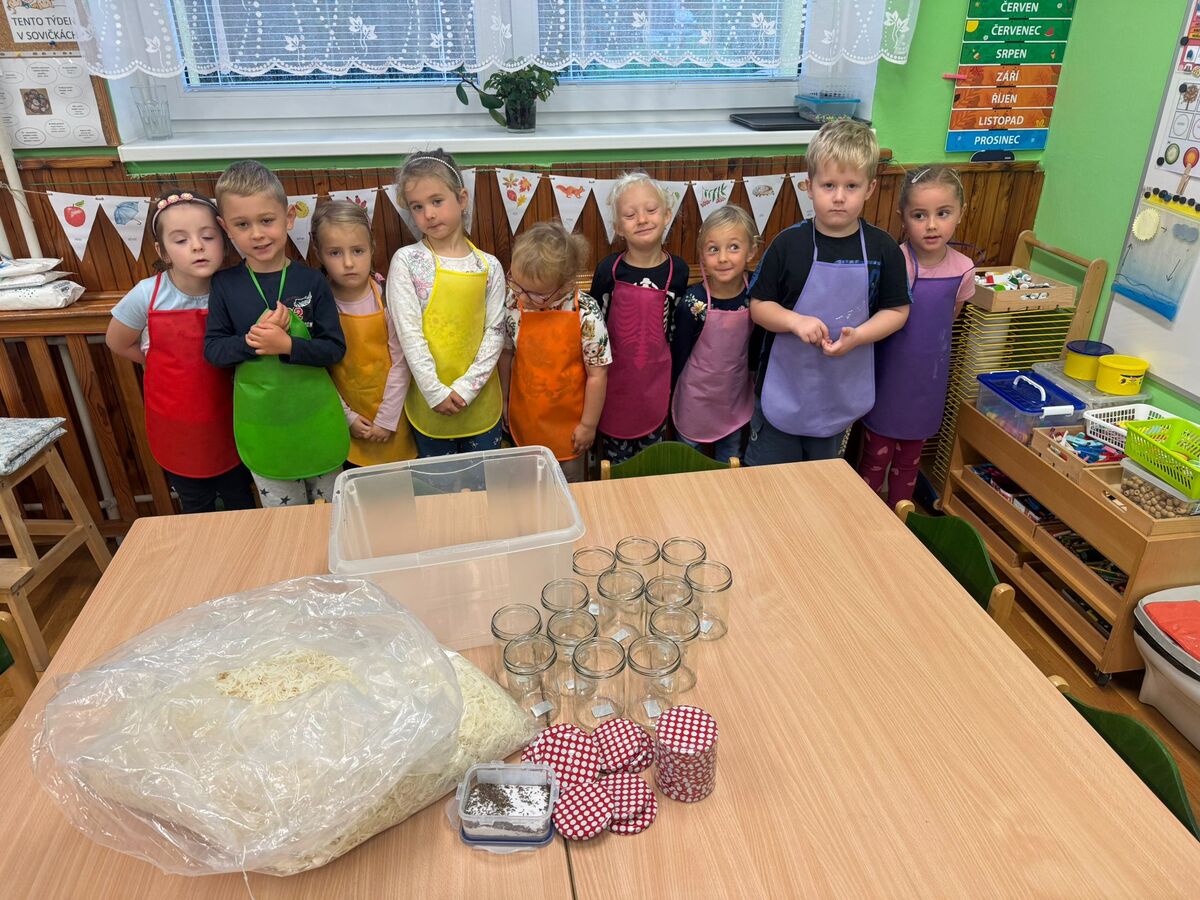 V rámci řízených činností jsme se s dětmi pustili do zajímavého projektu - výroby kysaného zelí. Nejprve jsme si povídali o tom, odkud zelí pochází, jak se pěstuje a proč je pro nás zdravé. Děti si zelí mohly osahat, očichat a ochutnat, takže do činností zapojily všechny své smysly.