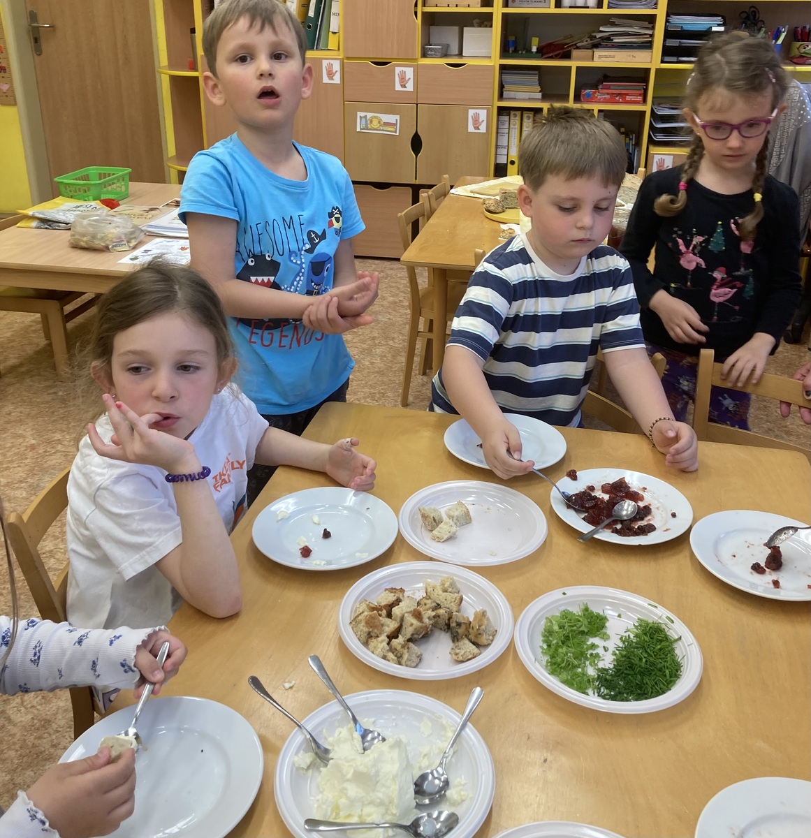 K ochutnávce domácího chleba jsme si ve školce vyrobili také máslo.