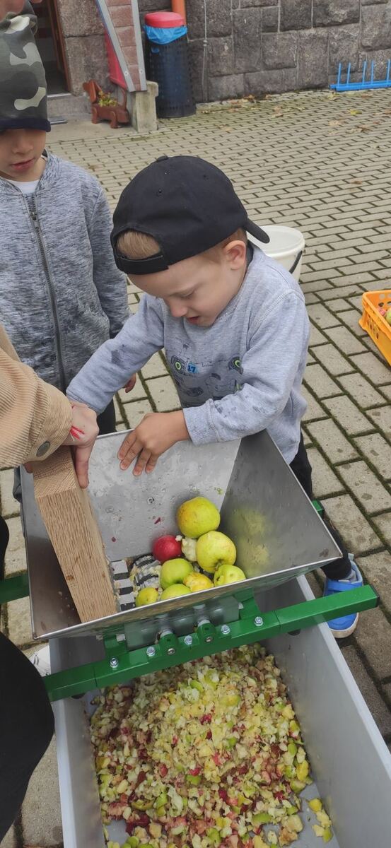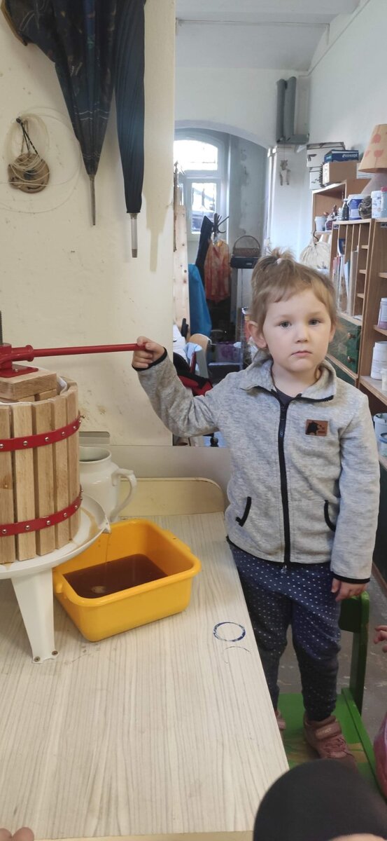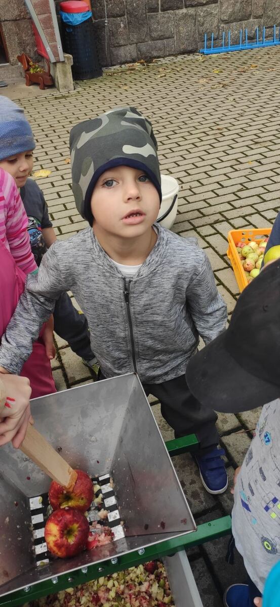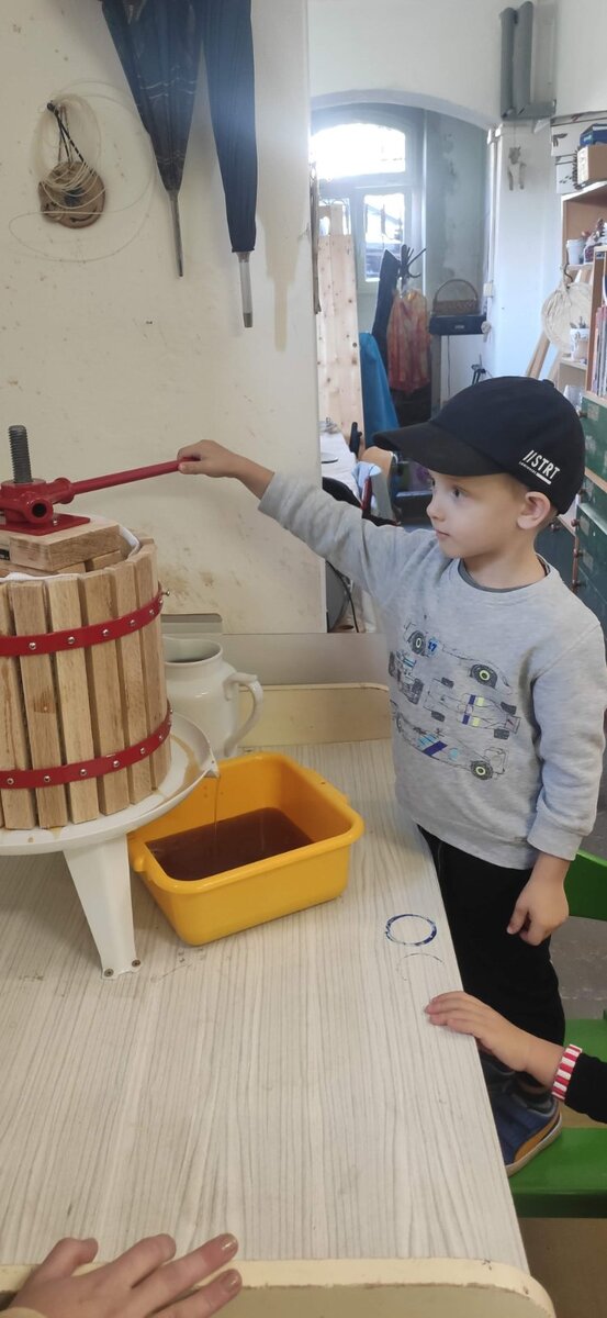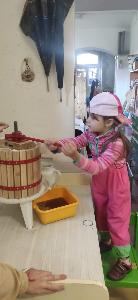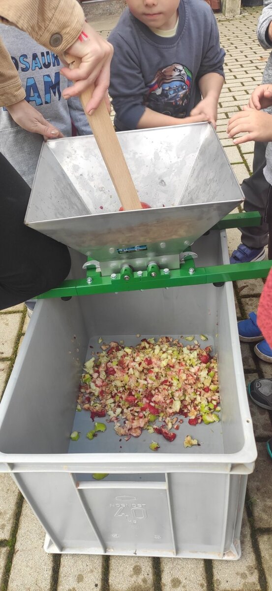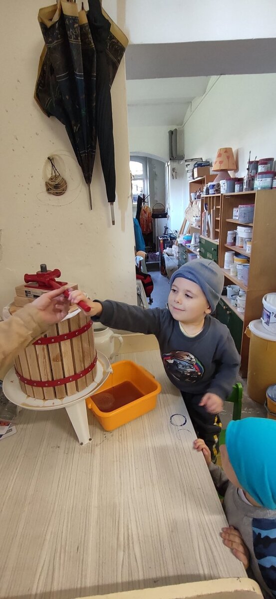 Protože se nemá plýtvat jídlem, rozhodly jsme se společně s dětmi zpracovat všechna zbylá jablíčka a vyrobily jsme si vynikající mošt. Jablíčka jsme umyly, vykrájely a rozdrtily v malé moštárně. Odměnou všem.byl sladký mošt,který zmizel jak mávnutím.kouzelného proutku:-)