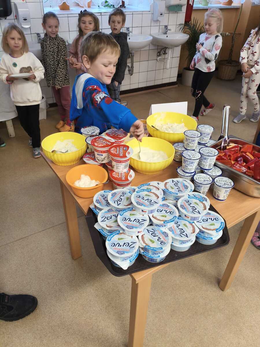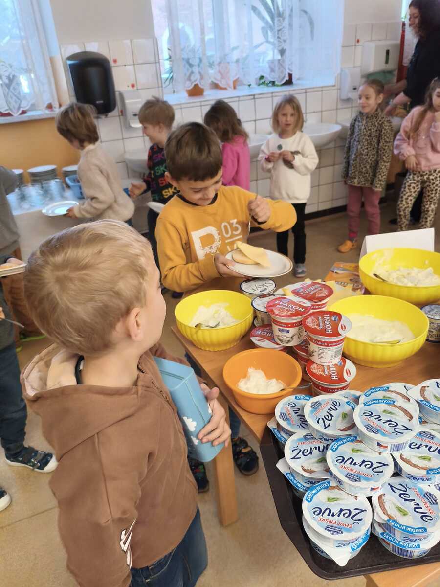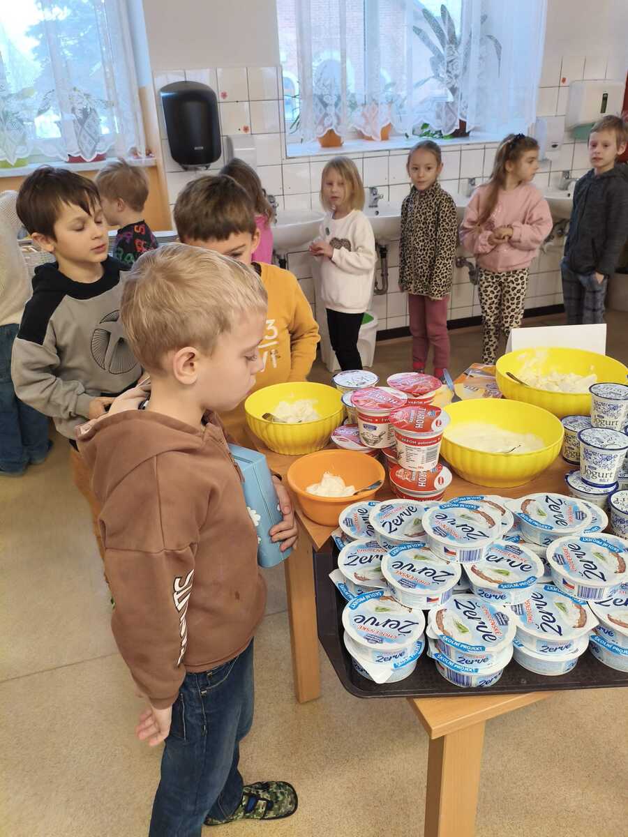 V jedné známé písničce se zpívá ,že výrobky mléčné jsou blahodárné a to víme i my. A proto nám pravidelně do školy chodí zásoba těchto výrobků ,společně se zeleninou. Děti si vždy pochutnají a doplní své potřebné minerály a vitamíny.