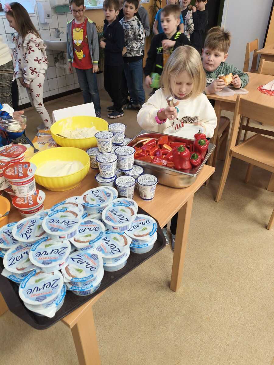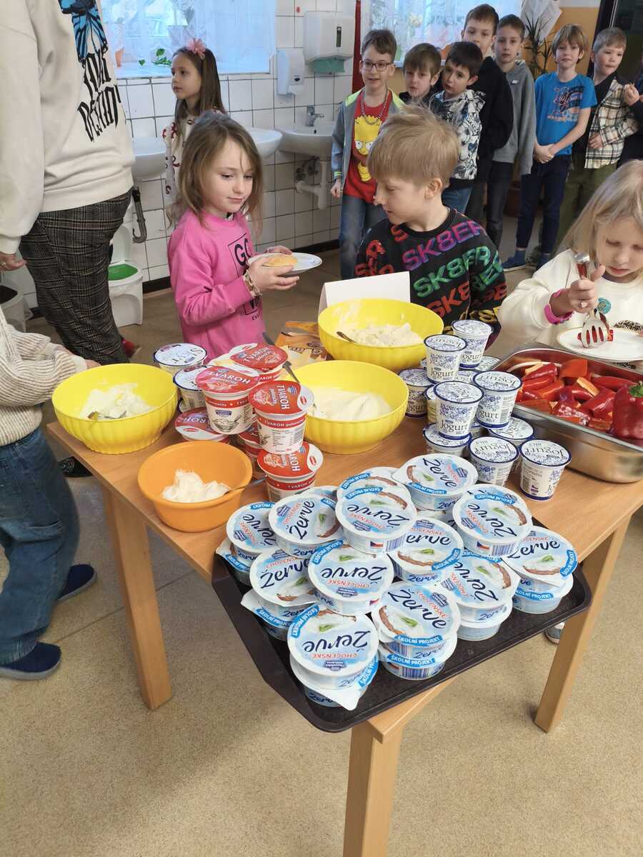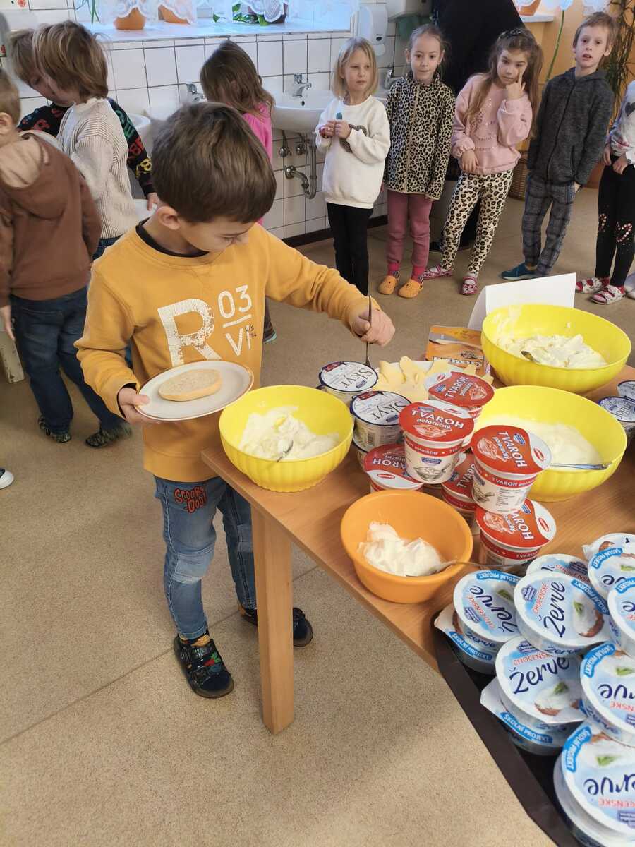 V jedné známé písničce se zpívá ,že výrobky mléčné jsou blahodárné a to víme i my. A proto nám pravidelně do školy chodí zásoba těchto výrobků ,společně se zeleninou. Děti si vždy pochutnají a doplní své potřebné minerály a vitamíny.