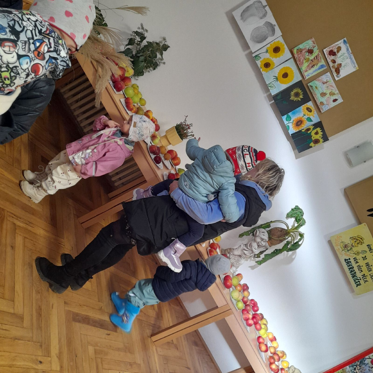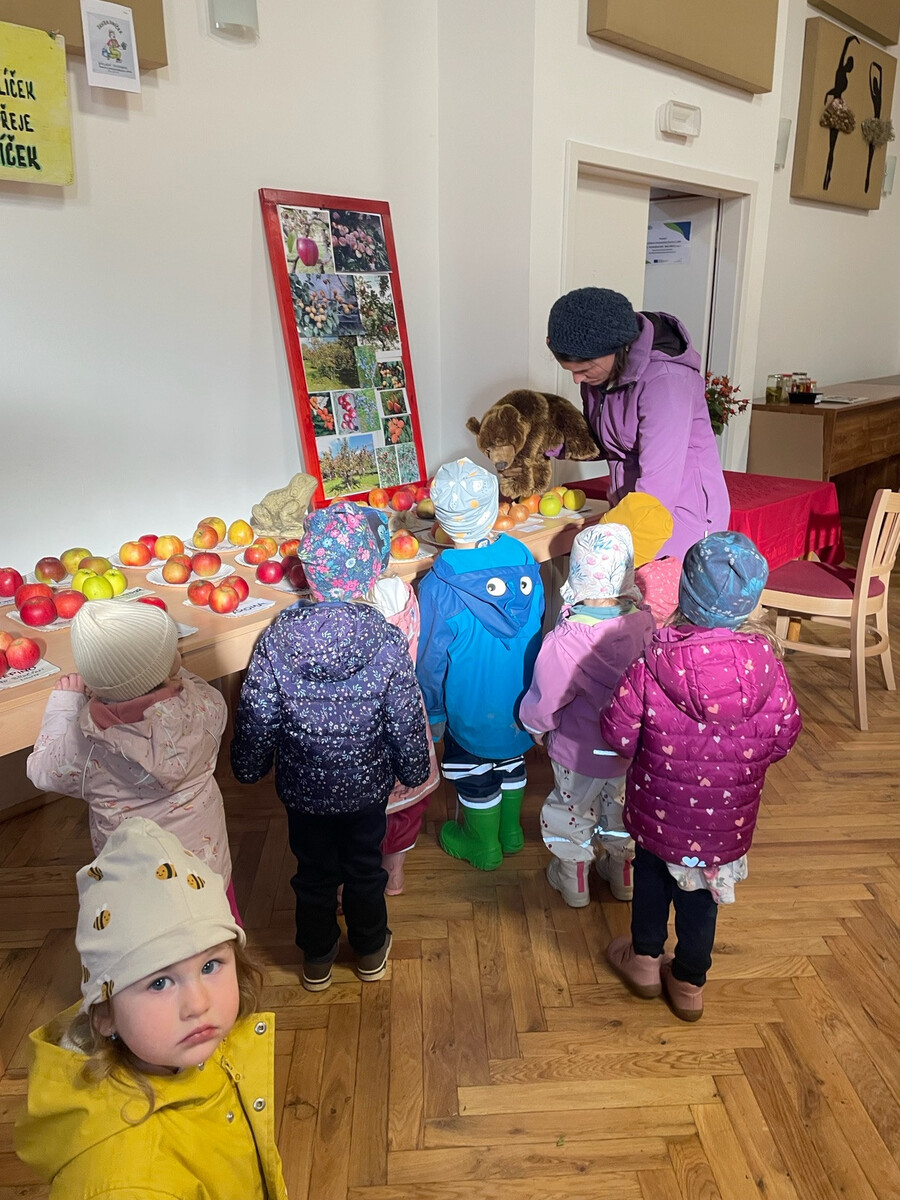 Děti z mateřské školy navštívily zahrádkářskou výstavu v obecní hospodě a prožily podzimní dopoledne plné barev, vůní a zajímavých poznatků. K vidění bylo bohaté zastoupení podzimního ovoce a zeleniny – různé druhy dýní, brambor, kořenové zeleniny i pestrá nabídka jablek a hrušek. Velkou pozornost vzbudily zejména soutěžní odrůdy jablek a hrušek, které se lišily velikostí, tvarem i chutí.