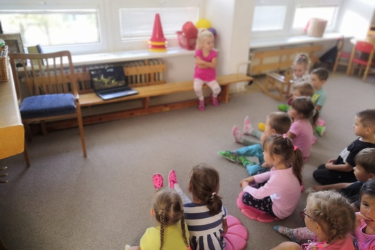 O slepičce a kohoutkovi - dětem dala učitelka otevřený konec a děti zkoušeli pohádku sami dokončit.
