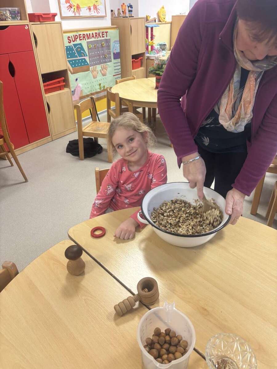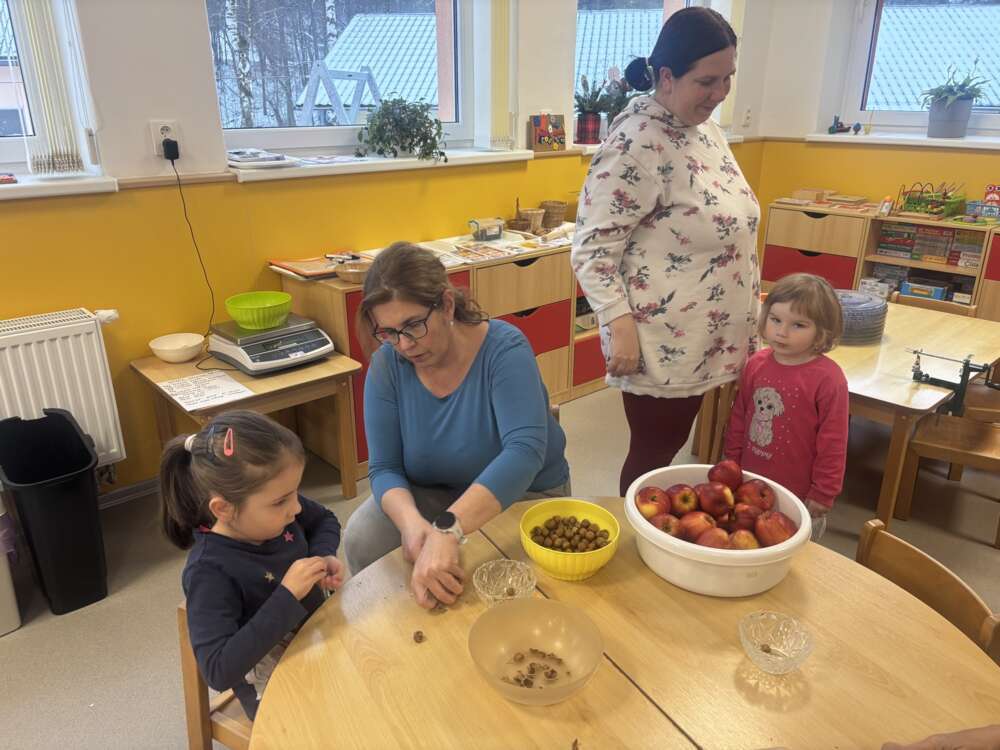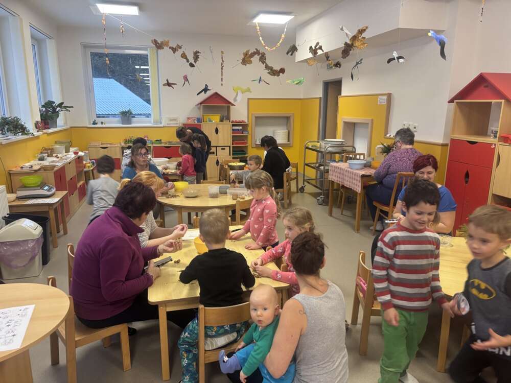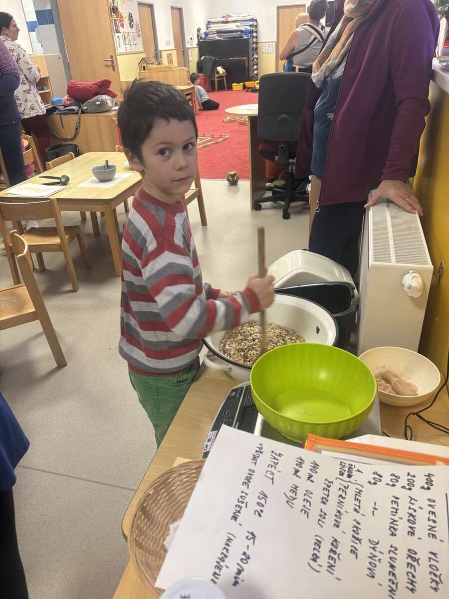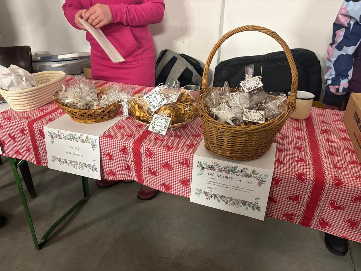 Adventní čas ve školce jsme trávili přípravami na vánoční jarmark. Děti s pomocí maminek a babiček připravily zdravé dobroty - pečenou granolu, jablíčkové křížaly a pečený kváskový chléb se semínky. Velké poděkování patří maminkám, které nám upekly bezlepkové cupcaky, marokánky a medové perníčky. Zdravé dobroty mohli ochutnat všichni, kteří přišli na akci Zpívání pod vánočním stromečkem u hasičské zbrojnice. Předvánoční setkání nám zpříjemnily děti z MŠ i ZŠ svým programem.