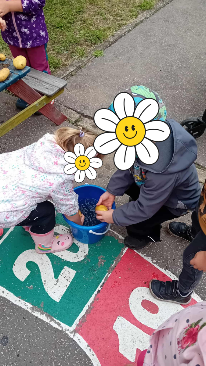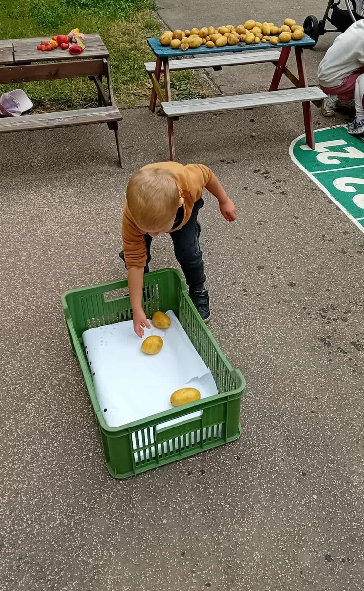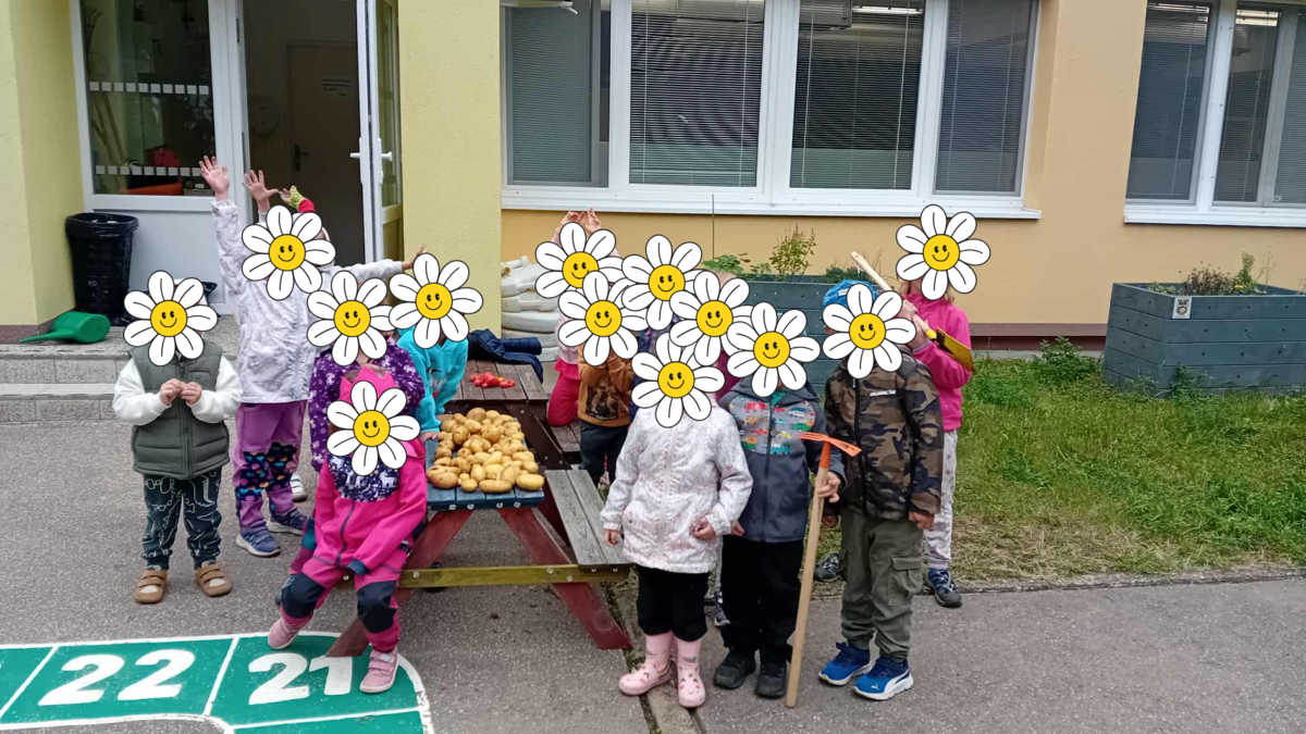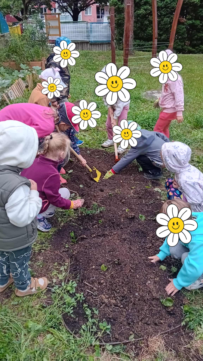 Prázdniny utekly jako voda a nás teď na zahradě čeká spousta práce, budeme sklízet úrodu, hrabat listí, čistit záhonky a připravovat je na zimu. Dnes jsme se pustili do sklizně brambor, které jsme letos pěstovali poprvé. Děti si nachystaly motyčky, rýče a s nadšením se pustily do hledání brambor, kopání co chvíli doprovázely radostné výkřiky při každém objevu nové obří brambory. K našemu překvapení byla sklizeň celkem veliká, z pár zasazených hlíz jsme sklidili celou přepravku velkých brambor. Následovala další - o něco špinavější fáze, odbahňování brambor! Voda stříkala, bláto létalo, čisté a nablýskané brambory putovaly do školní kuchyně a zabahněné děti do umývárny. Naše "panelákové děti" si celý proces moc užily, určitě už si nikdo nemyslí, že jídlo roste v supermarketu, ale je za ním spousta práce a v podání třídy Berušek rozhodně i zábavy!