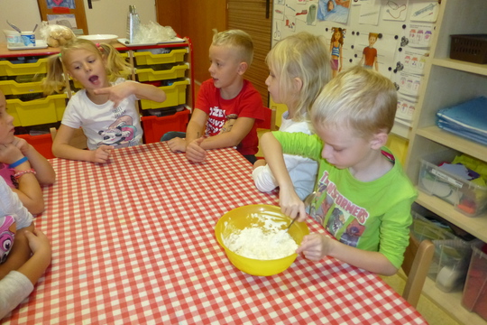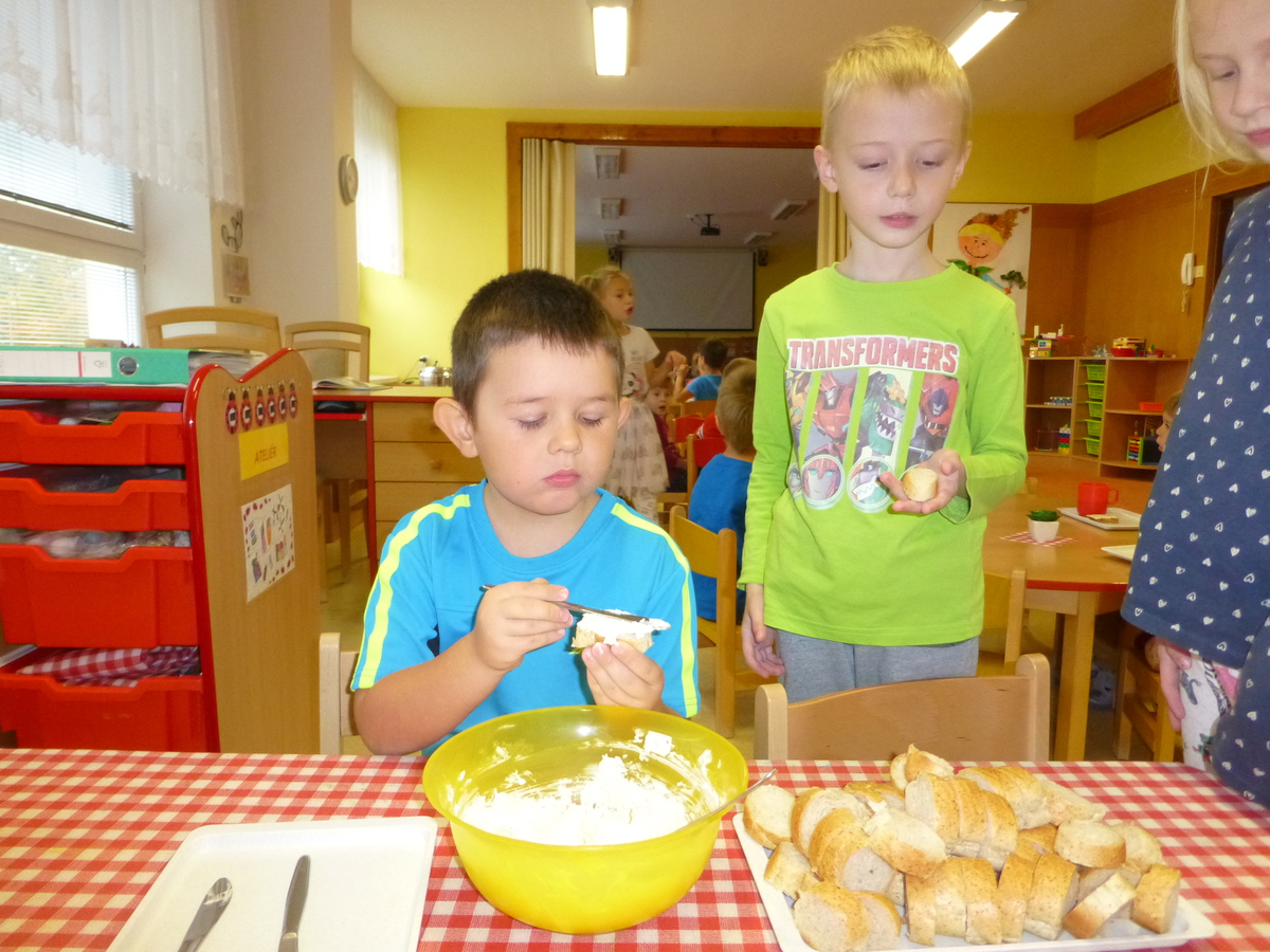 Děti z Berušek si samy připravily česnekovou pomazánku (při dodržování přísných hygienických opatření), kterou si jednotlivě samy mazaly na jednohubky z grahamových rohlíků.