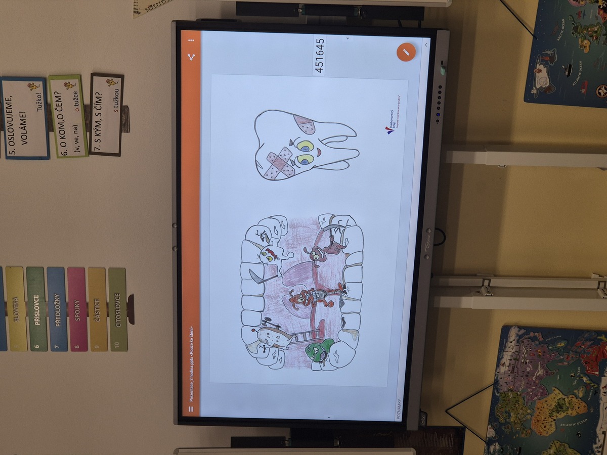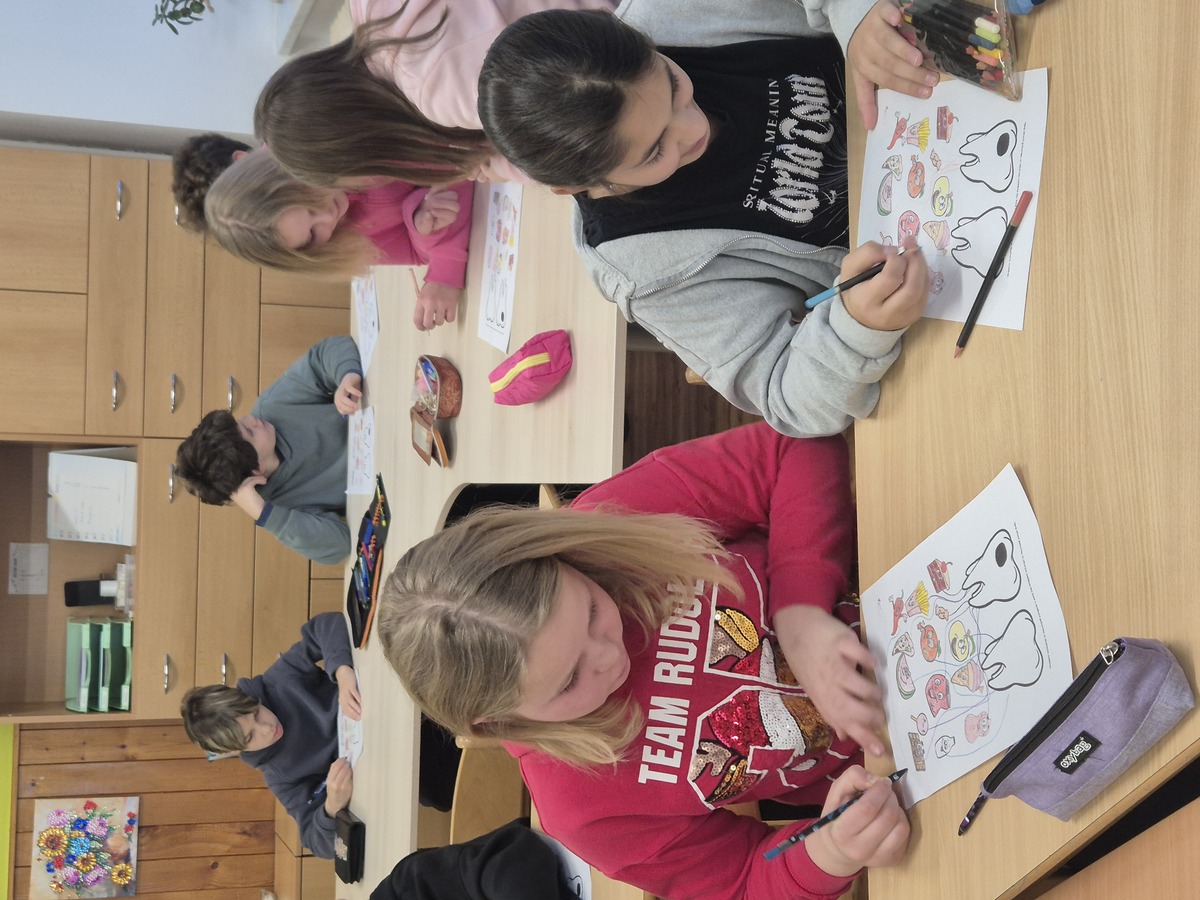 Ke zdravým zubům neodmyslitelně také patří zdravá strava. Proto jsme s dětmi pozvali zubní hygienistku a popovídali si o tom, jaké potraviny našim zubům škodí a které potraviny naopak pomáhají. Zároveň jsme si řekli ,jak správně zoubky čistit.