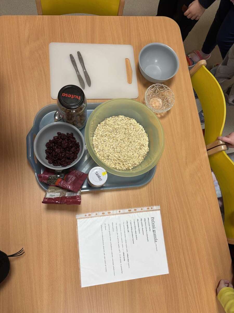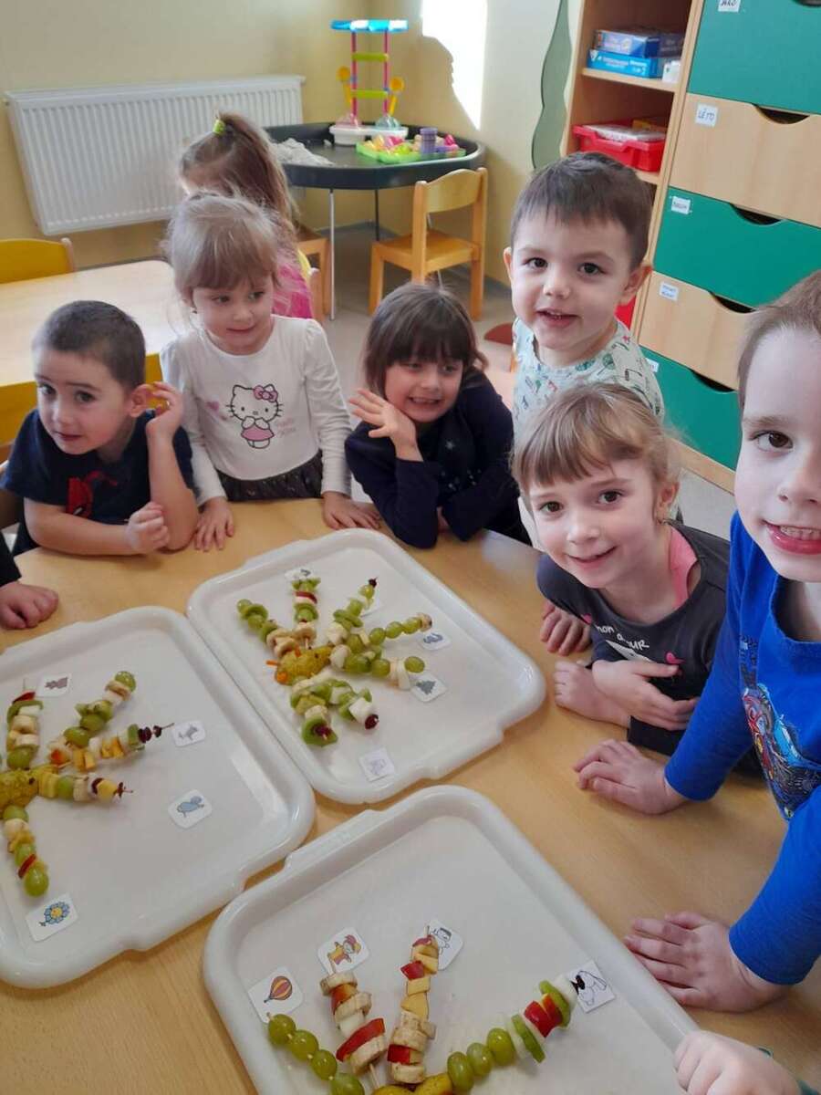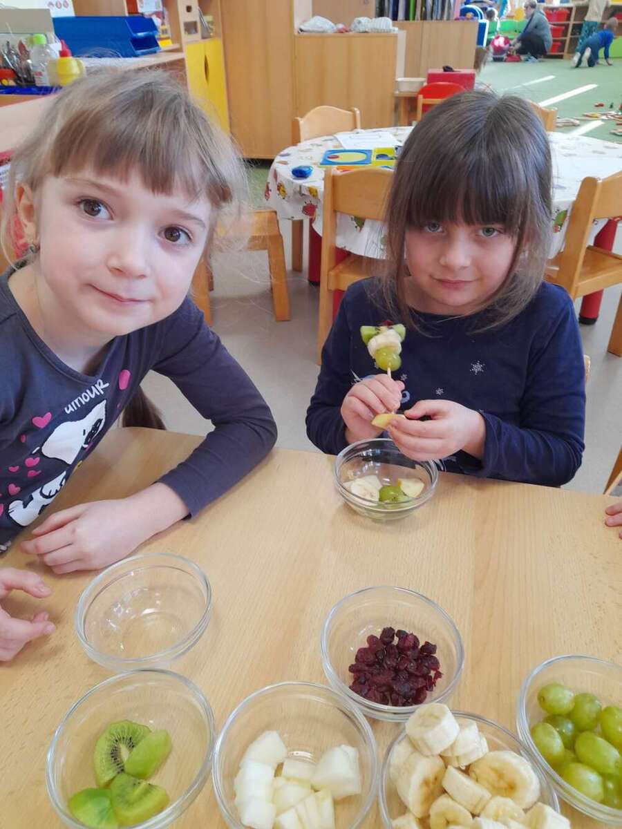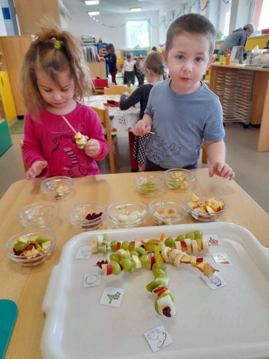 Minulý týden se nesl v duchu zdravé výživy. Třída Kačenek si vyrobila zdravého ovocného páva, kterého si pak s chutí slupla. Třída Žabiček namíchala na pečenou granolu, kterou si děti přisypávají do jogurtu. Další den si k ranní svačince připravily ředkvičkovou pomazánku.