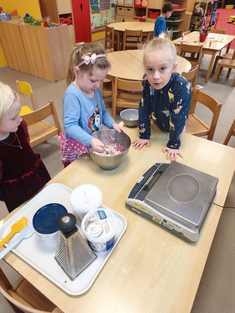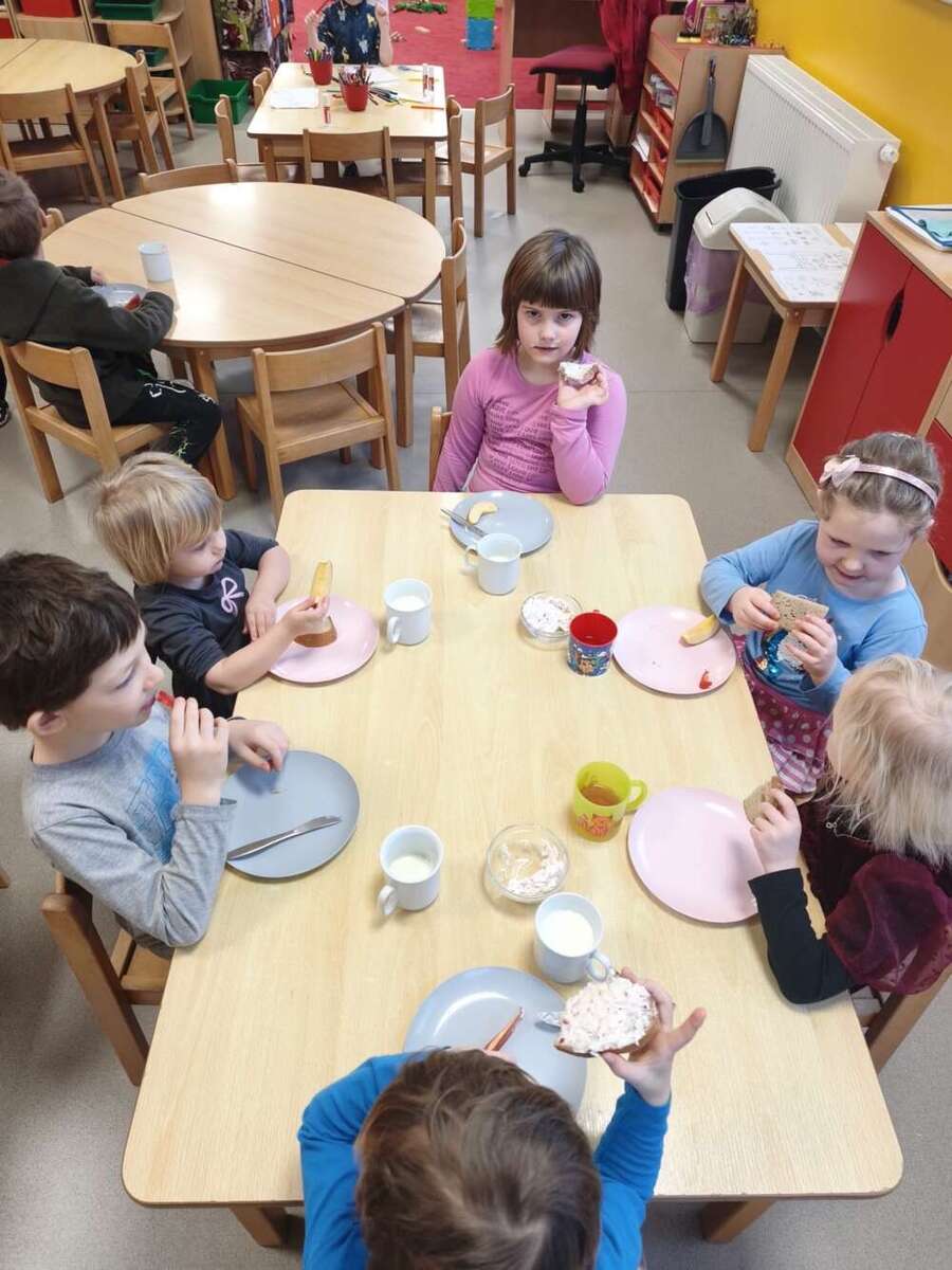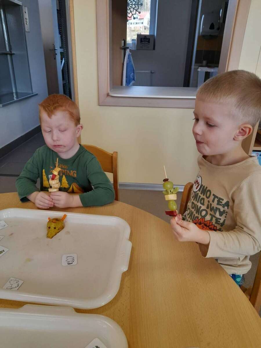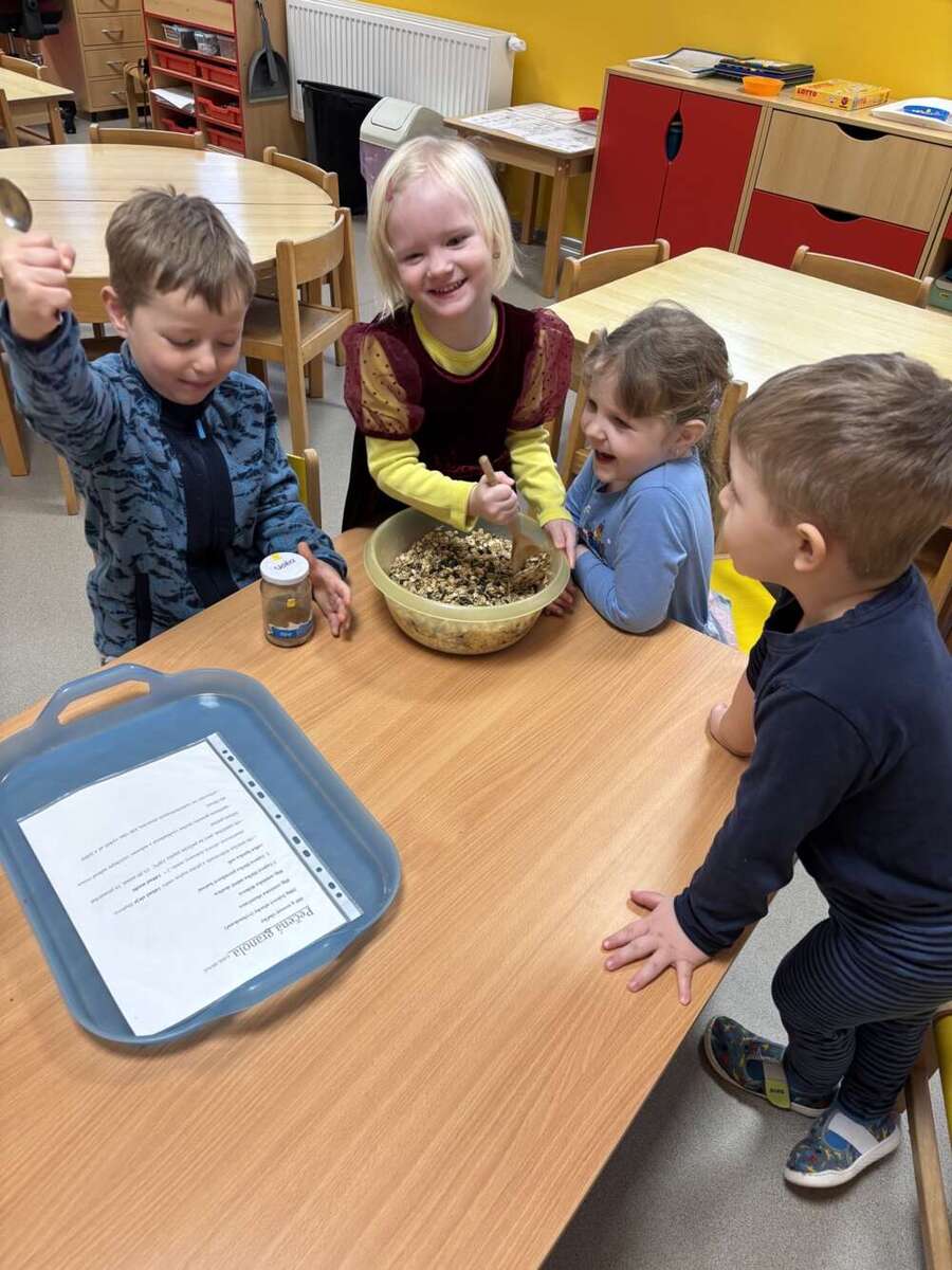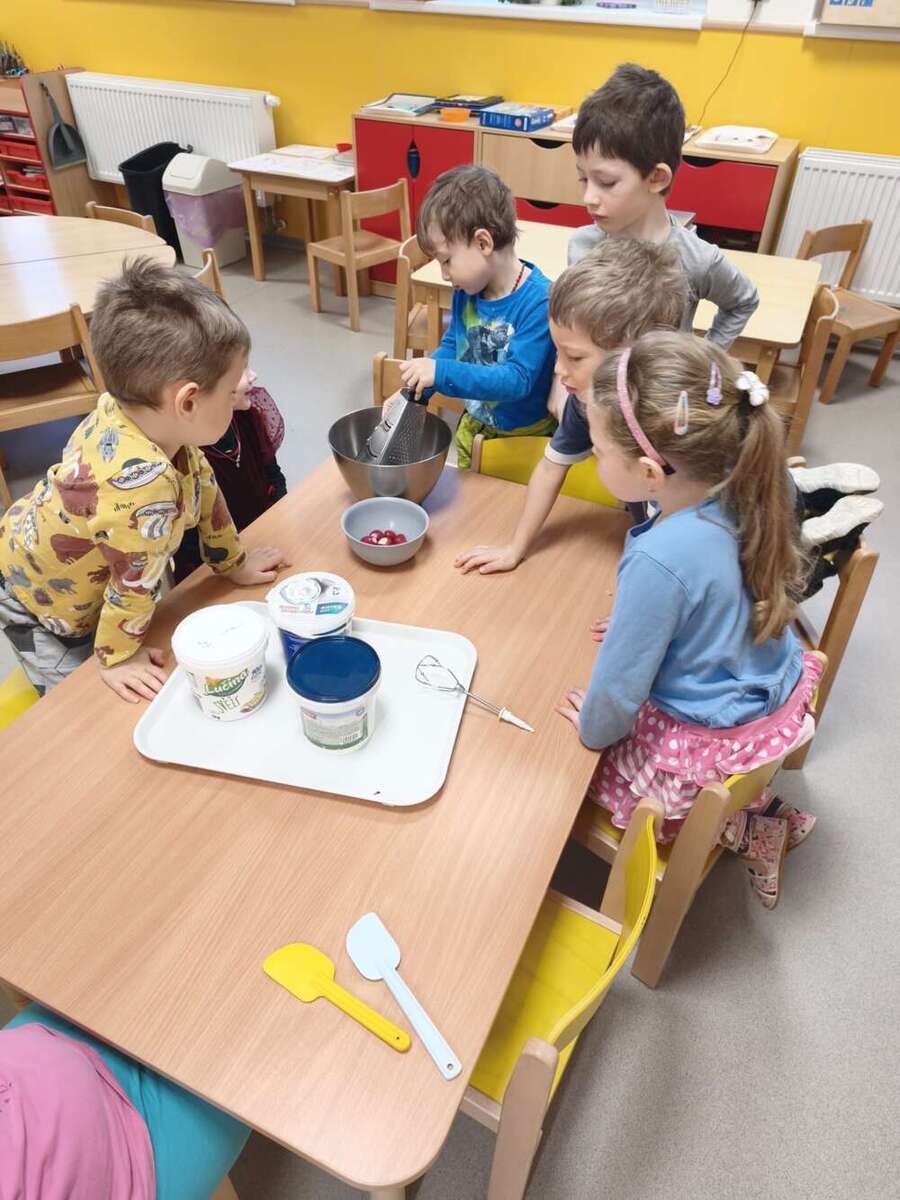Minulý týden se nesl v duchu zdravé výživy. Třída Kačenek si vyrobila zdravého ovocného páva, kterého si pak s chutí slupla. Třída Žabiček namíchala na pečenou granolu, kterou si děti přisypávají do jogurtu. Další den si k ranní svačince připravily ředkvičkovou pomazánku.