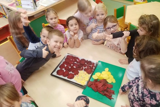V rámci doplňkově aktivity Malý kuchtík jsme si zkusili připravit chipsy z brambor a červené řepy. Oloupali jsme, nakrájeli, lehce pokapali olivovým olejem a malounko osolili a opepřili, dali péct. Bylo to moc dobré. Pochutnali jsme si.